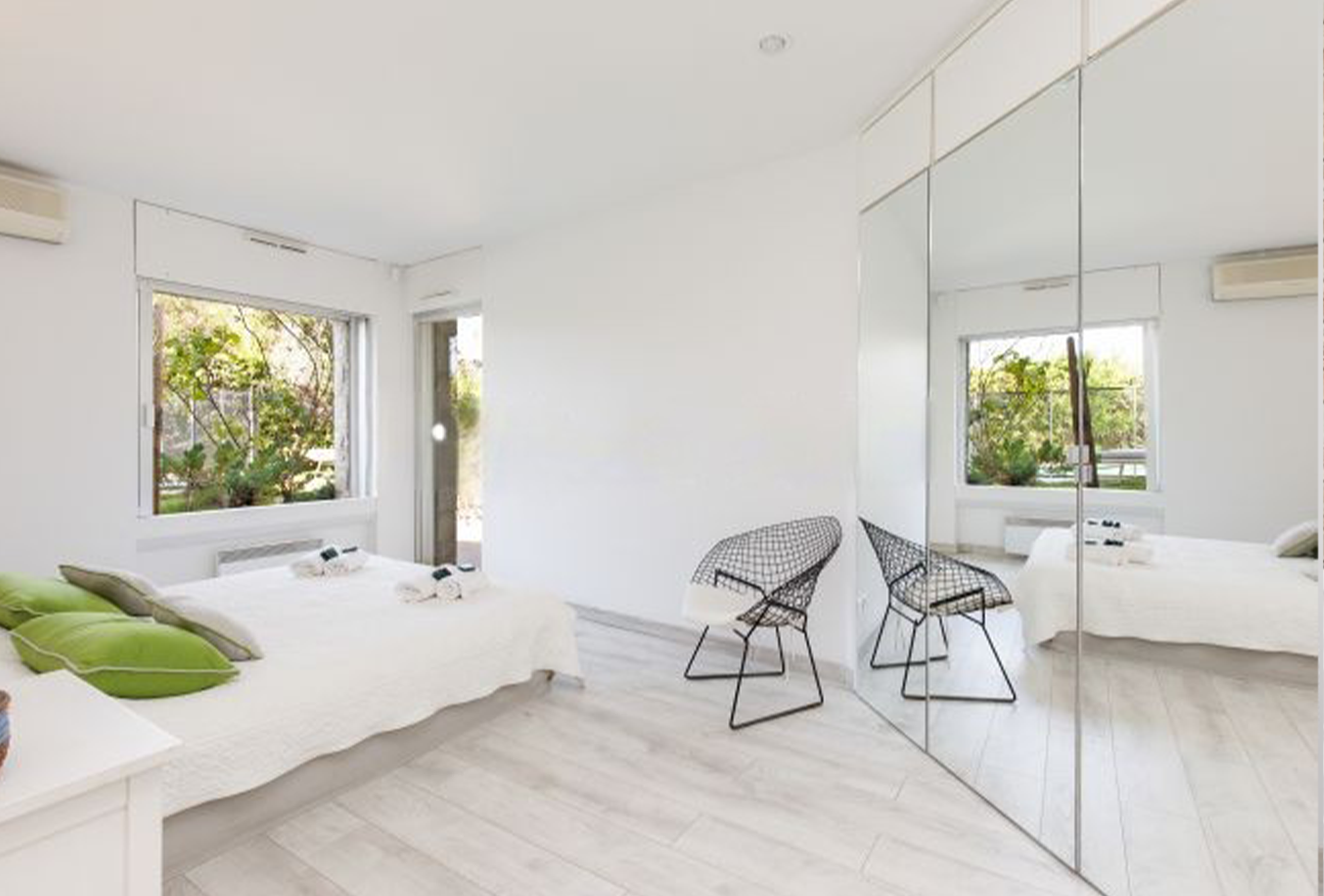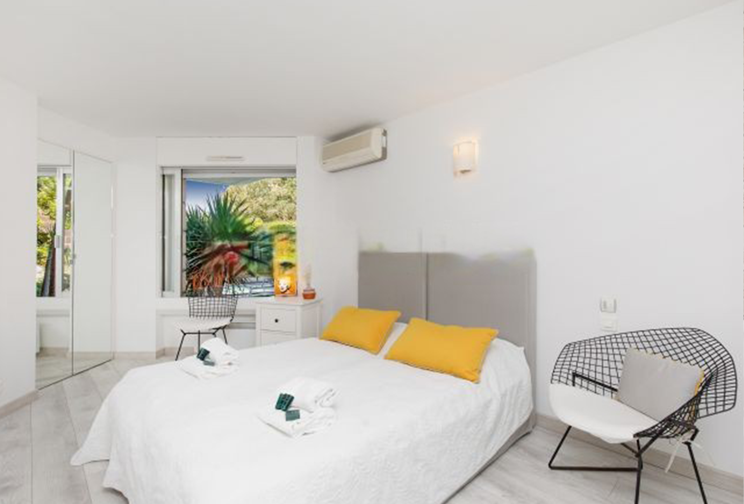 In the heart of Cannes, 1400 m from the Croisette and the beaches, in a small secure residential estate of 12 villas, beautiful character villa with sea view located on a plot of 500m². Private pool with steps (8m x 4m, Depth. 80/220 – Barrier). Terraces with garden furniture and sunbeds. Parking. Bus stop at the foot of the estate. Restaurants and shops 500 m. Palais des Festivals 3 km. Air-conditioned villa of 160m² on 2 levels with: Living/Dining room with TV (TNT), Internet 4G, exit to terrace. Fully equipped open kitchen. Guest toilet. Laundry room with washing machine and dryer. At pool level: Master bedroom with 1 double bed (160). Shower room. 1 Bedroom with 2 single beds (2×80), Shower room. Separate toilet. 1 Bedroom with 1 large bed (140) with exit to pool. Bathroom. Independent bedroom in the pool-house with 1 large bed (140). Shower room. Separate toilet.