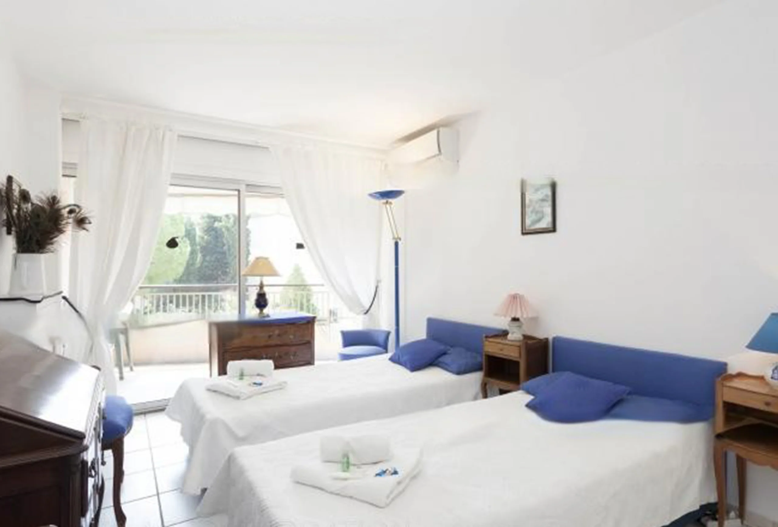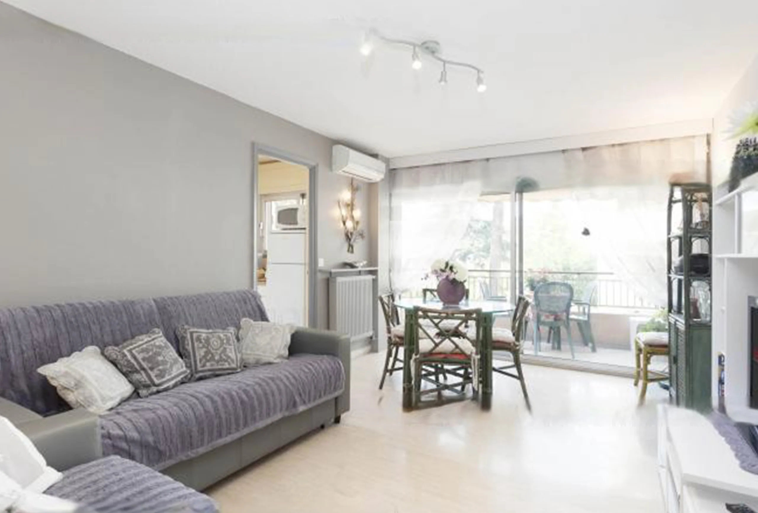 The living room has a sofa bed and opens onto a balcony with a pleasant view of the street and a small park. The roomy bedroom has 2 single beds which combine into a double bed if preferred. The modern bathroom features a shower. The equipped kitchen opens onto the balcony. There is an independent toilet.