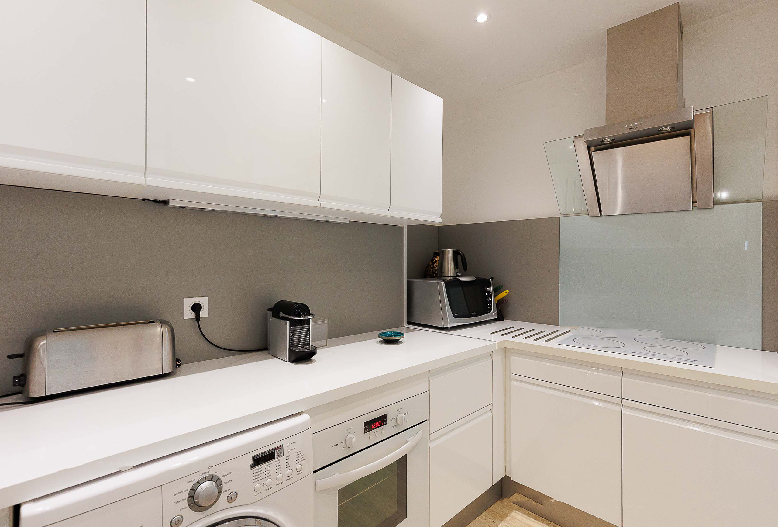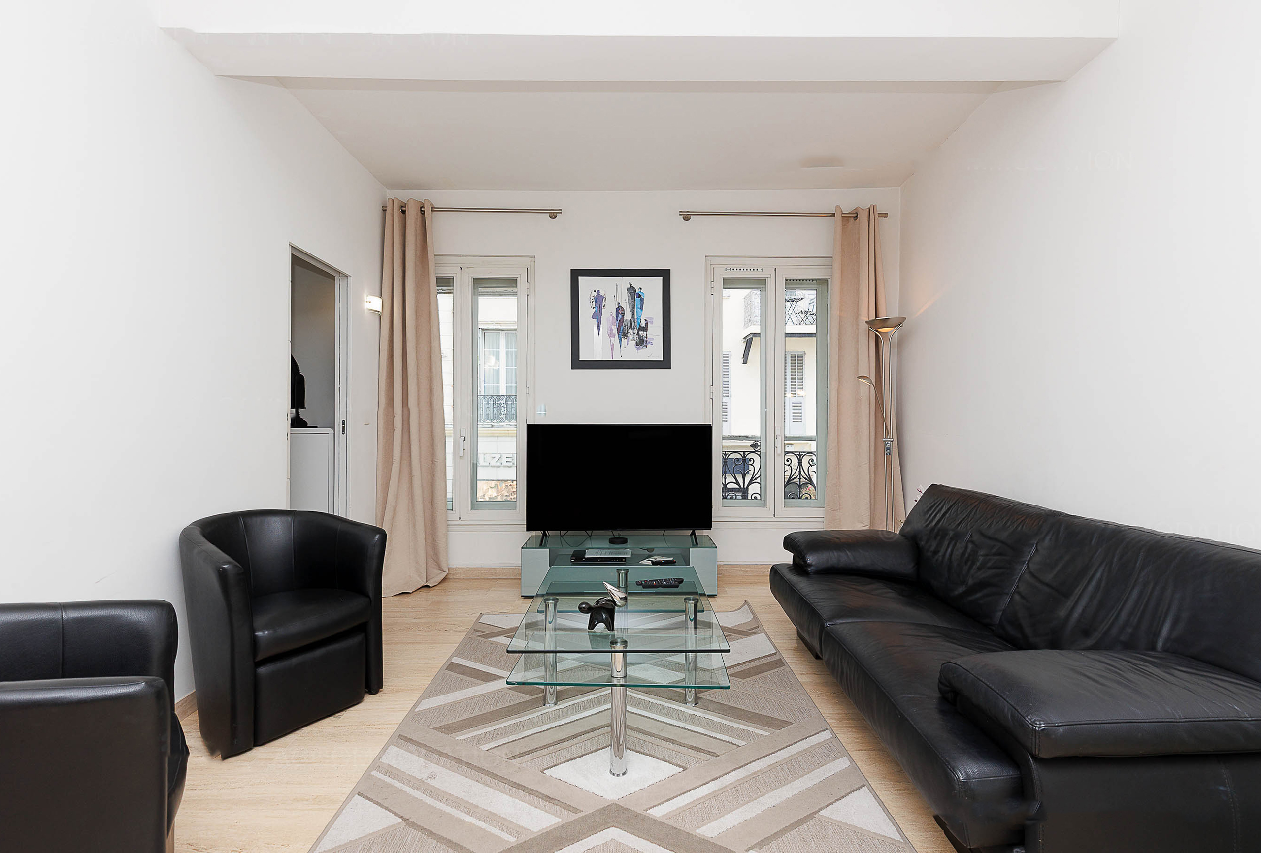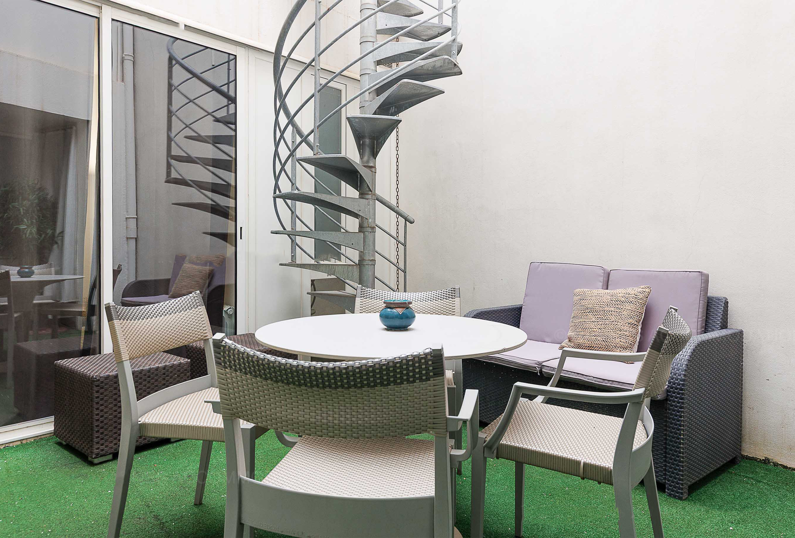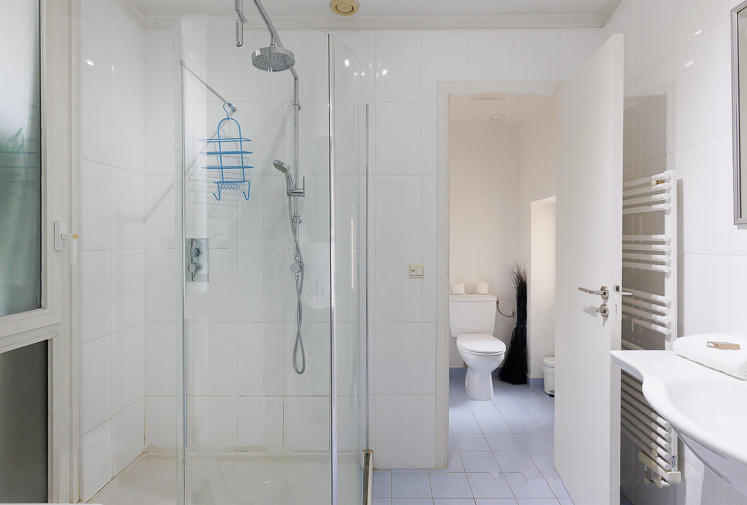 This light filled home benefits from an excellent location a couple of steps away only from the convention center. Nested on the first floor without lift of a small well-maintained residence, the apartment offers 3 bedrooms and 3 bathrooms in a sober modern décor. The vast main room is organized in two areas: the living area with TV and the dining area opening onto a sunny patio. The three bedrooms have each two single beds that we can combine into a double if you wish. Two of the rooms are at the back next to the patio. The third one looks over the rue d’Antibes but it is very well sound insulated thanks to a quadruple glazing. Two of the bedrooms have an en-suite bathroom with shower. One of them also has toilets. The third bathroom is independent. It has a shower cabin and toilets. The sophisticated kitchen, all in white, is fully equipped. You will be seduced by this modern minimalist apartment. You will be able to combine a perfect location with generous living spaces and the possibility to welcome up to 6 guests.