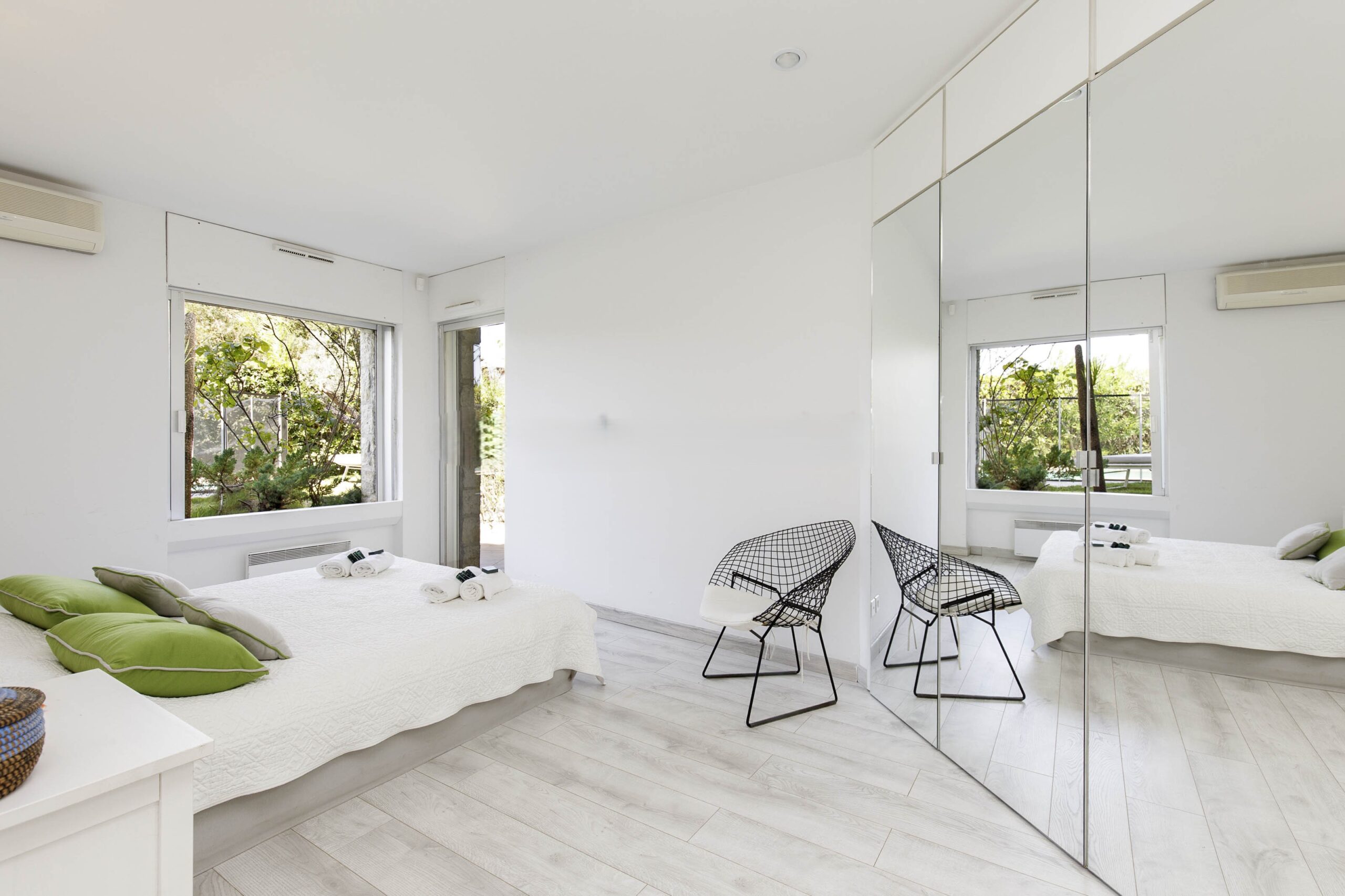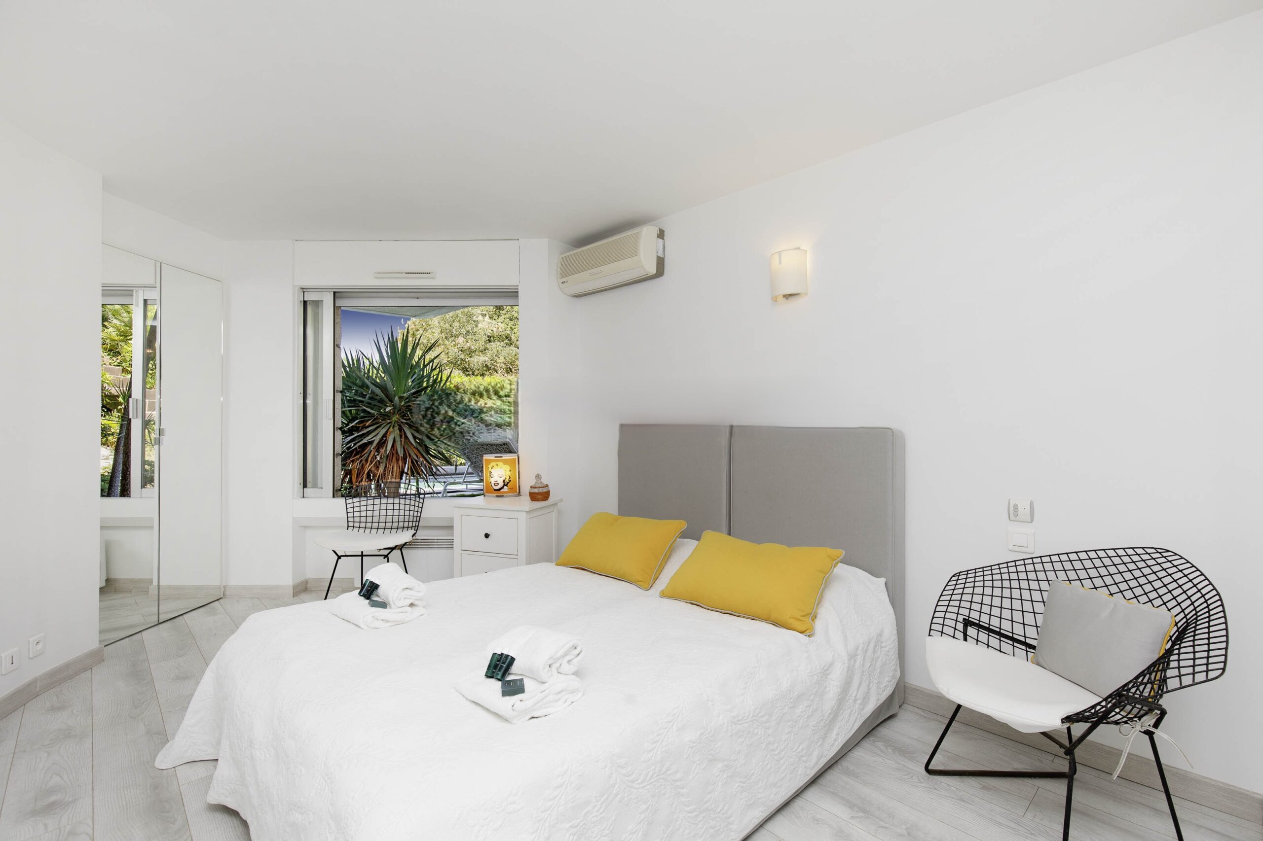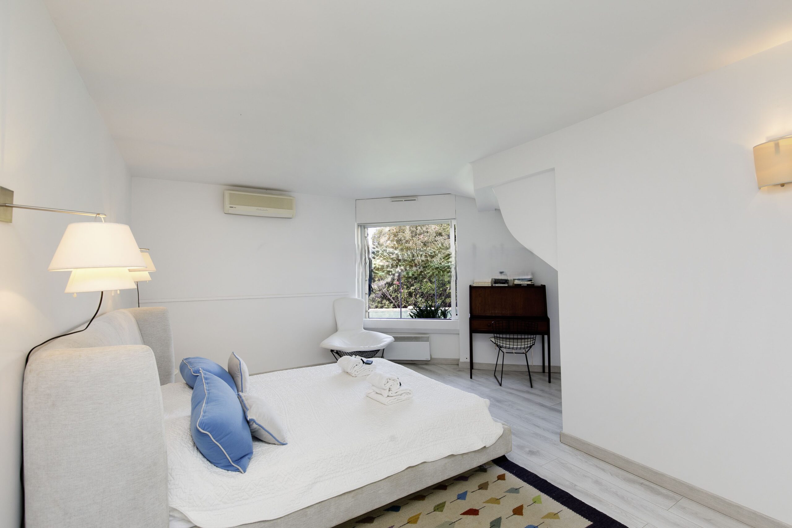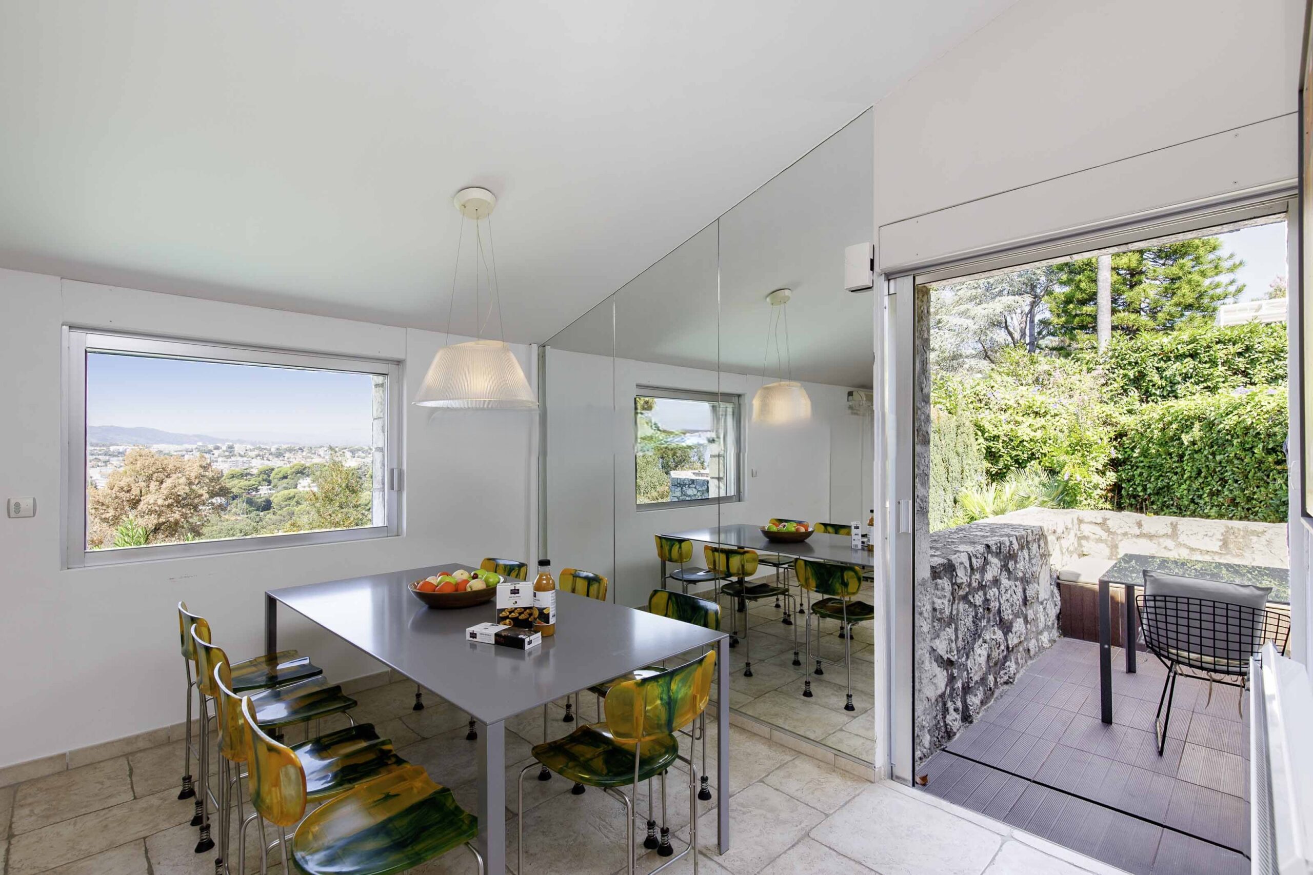 Located in the heart of Cannes, about 1.4 km from the Croisette and the beaches, this charming sea view villa sits in a small, secure residential domain of 12 villas. Set on a 500 sqm plot, it features a private fenced swimming pool with steps (8 m x 4 m, depth 0.80 m to 2.20 m), plus terraces furnished with outdoor seating and sun loungers. There’s also on site parking. A bus stop is right outside the domain, with shops and restaurants around 500 m away. The Palais des Festivals is about 3 km from the villa.