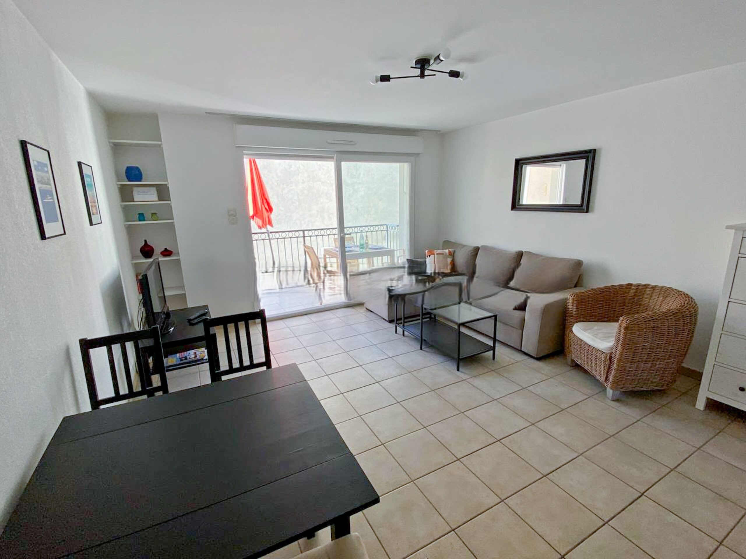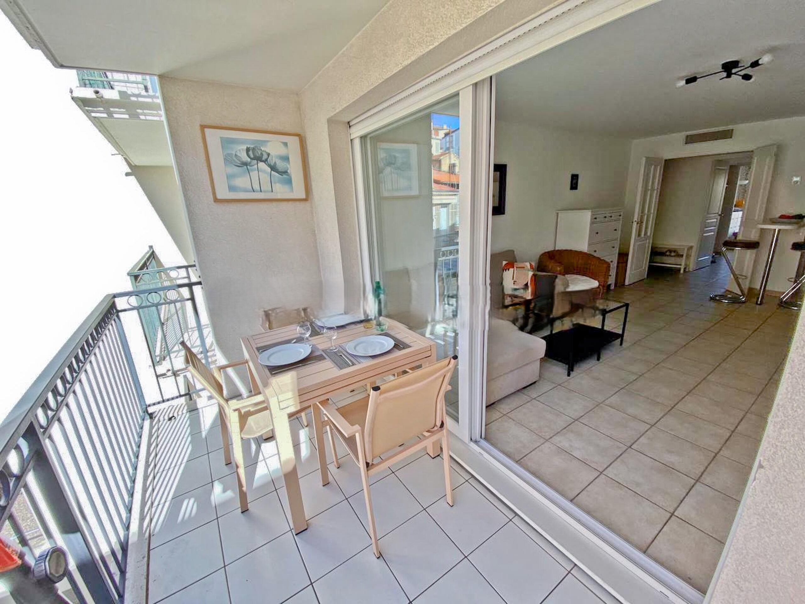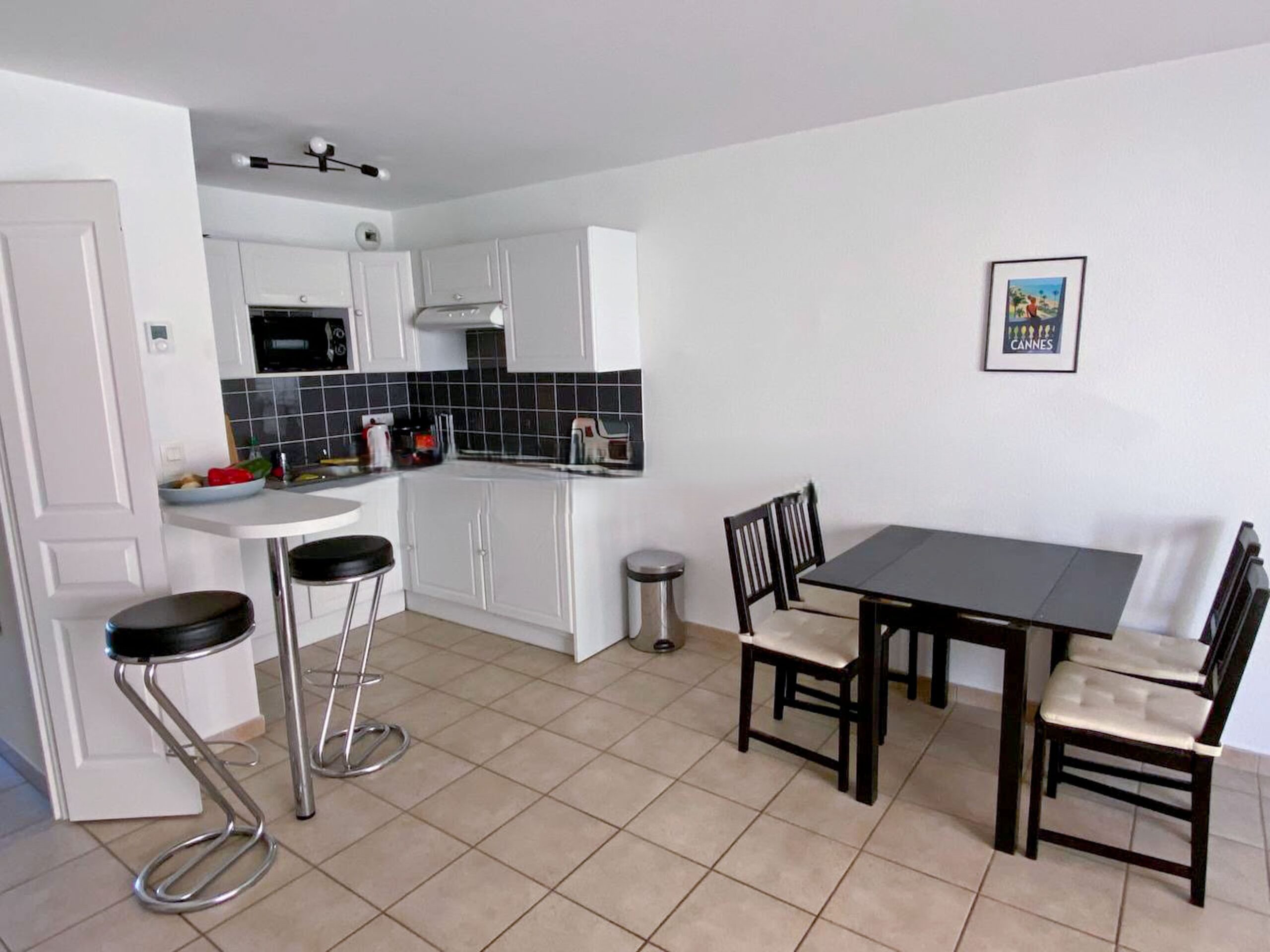 This stylish, modern one bedroom apartment is set in a recent residence on Boulevard Clémenceau, just a few steps from the beach and about a ten minute walk from the Convention Centre. The apartment is on the fourth floor with a lift.