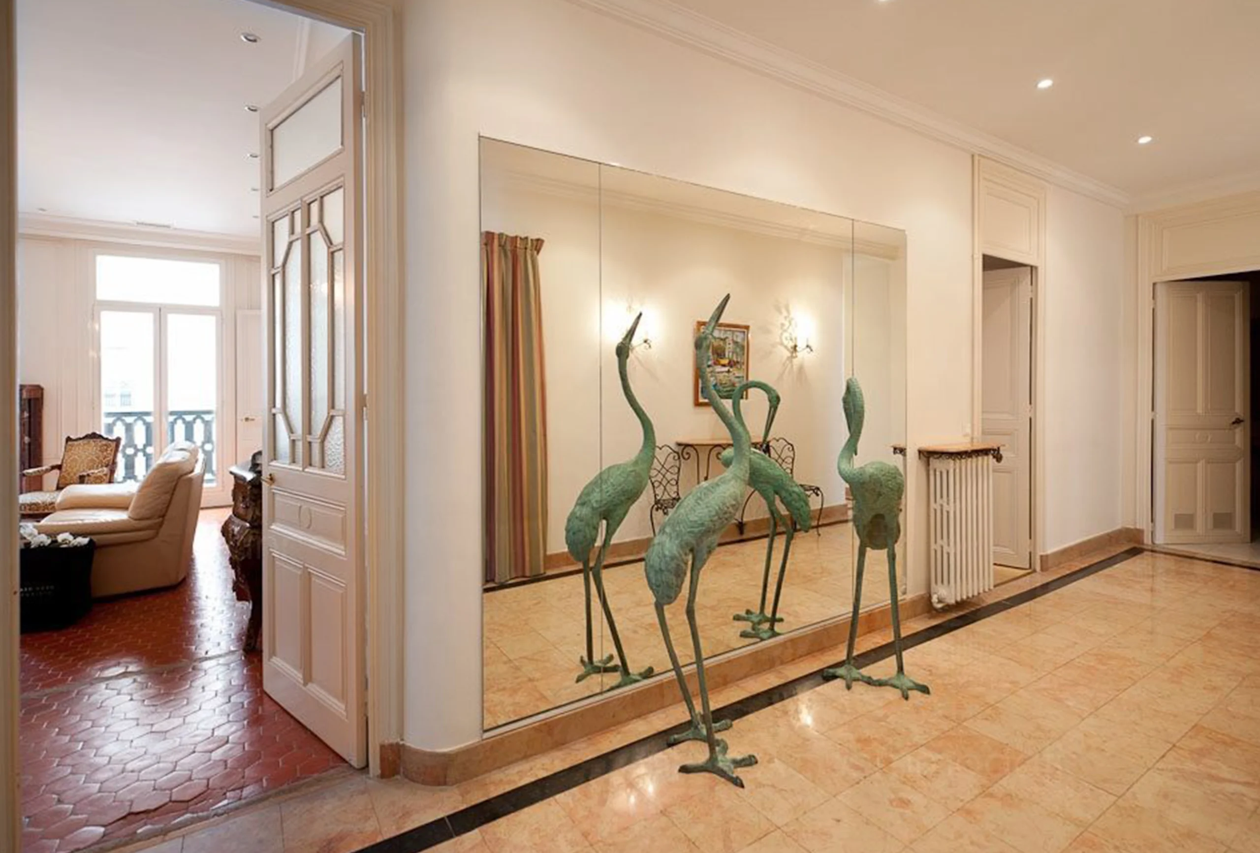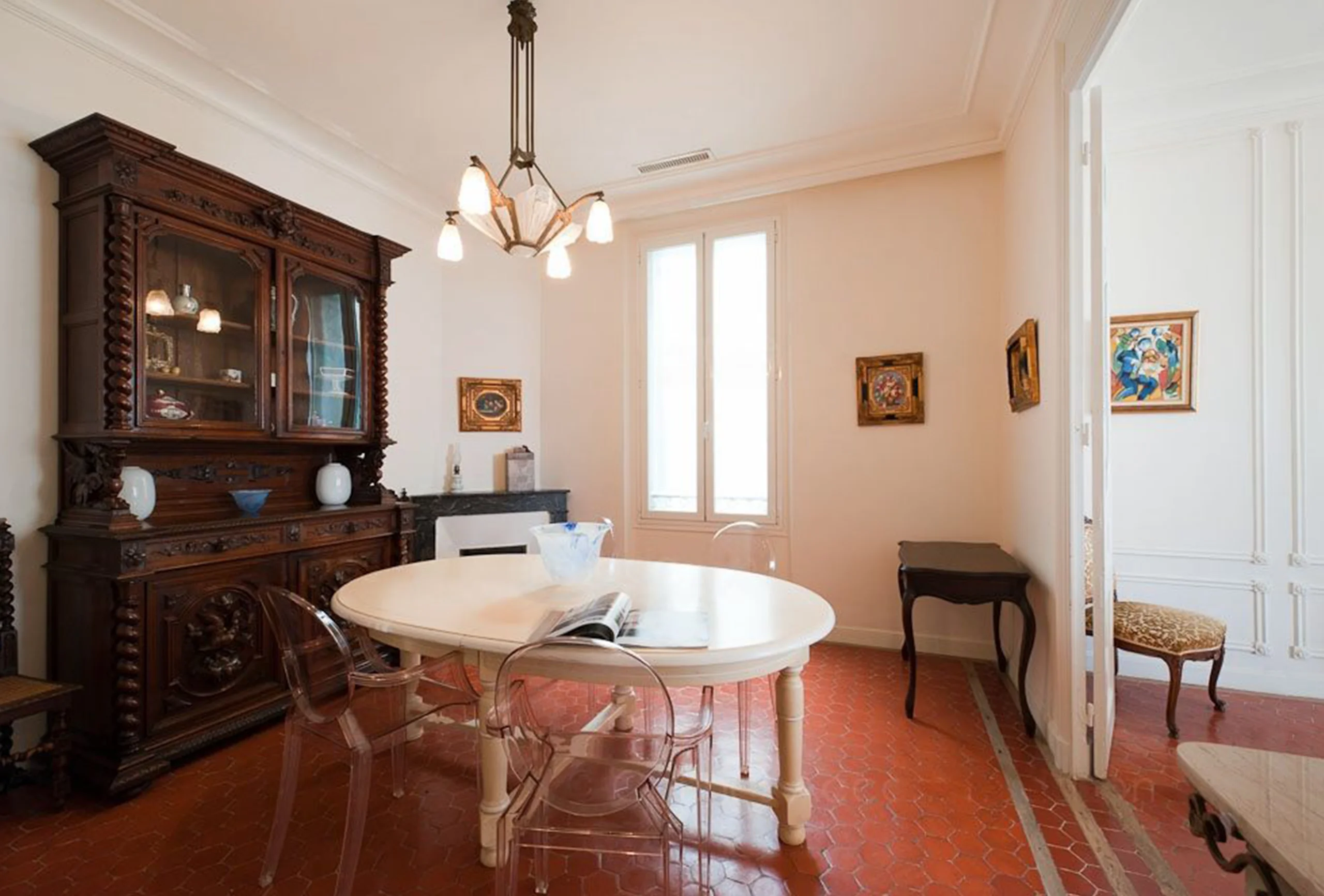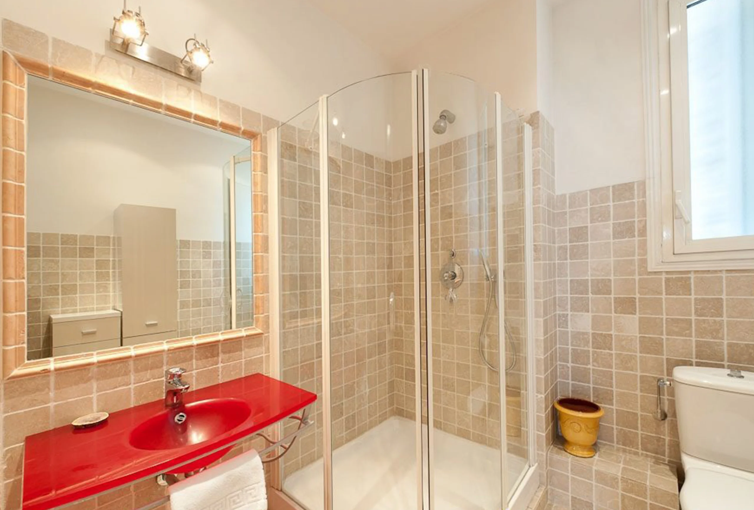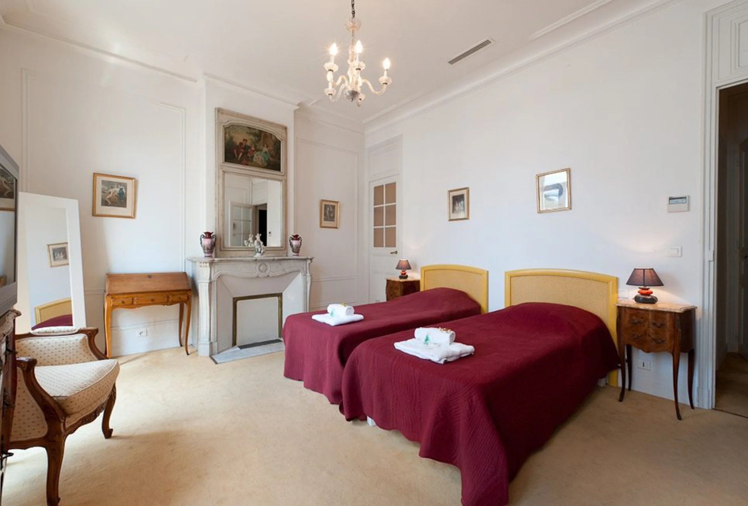 This superb four-bedroom apartment is located on Square Merimée, which takes its name from a famous French writer and archeologist who used to live in Cannes. Partial air-conditionning. You will be just across from the Palais, overlooking the old harbor and close to all amenities. The luxurious high-ceilinged property is on the 3rd floor of an early XIXth century building. You walk in through a large hallway opening onto an elegant saloon overlooking the Palais. The exquisite dining room can seat up to eight guests or can be used as a meeting room. A study room with sofa bed features an antique desk, a quiet spot to work or relax. These three rooms are interconnected offering an attractive ensemble for your cocktail parties, receptions… The first bedroom has a romantic look with its canopy and Italian-style decoration. Very roomy, it is equipped with a comfortable double bed. Just off is a very pleasant shower room with toilet. The second bedroom faces the… Palais. Bright and roomy, it features two single beds that combine into a double if preferred. This bedroom has an en suite bathroom with toilet. The third and fourth bedrooms are at the rear of the apartment. Slightly smaller than the other two, they nevertheless offer the possibility to accommodate four more guests, as each is equipped with two single beds that combine into a double. Next to them is a shower room with toilet. The kitchen is bright, modern and fully-equipped. Double glazing completes the equipment of this exceptional apartment. Two bedrooms only dont feature air-conditionning.