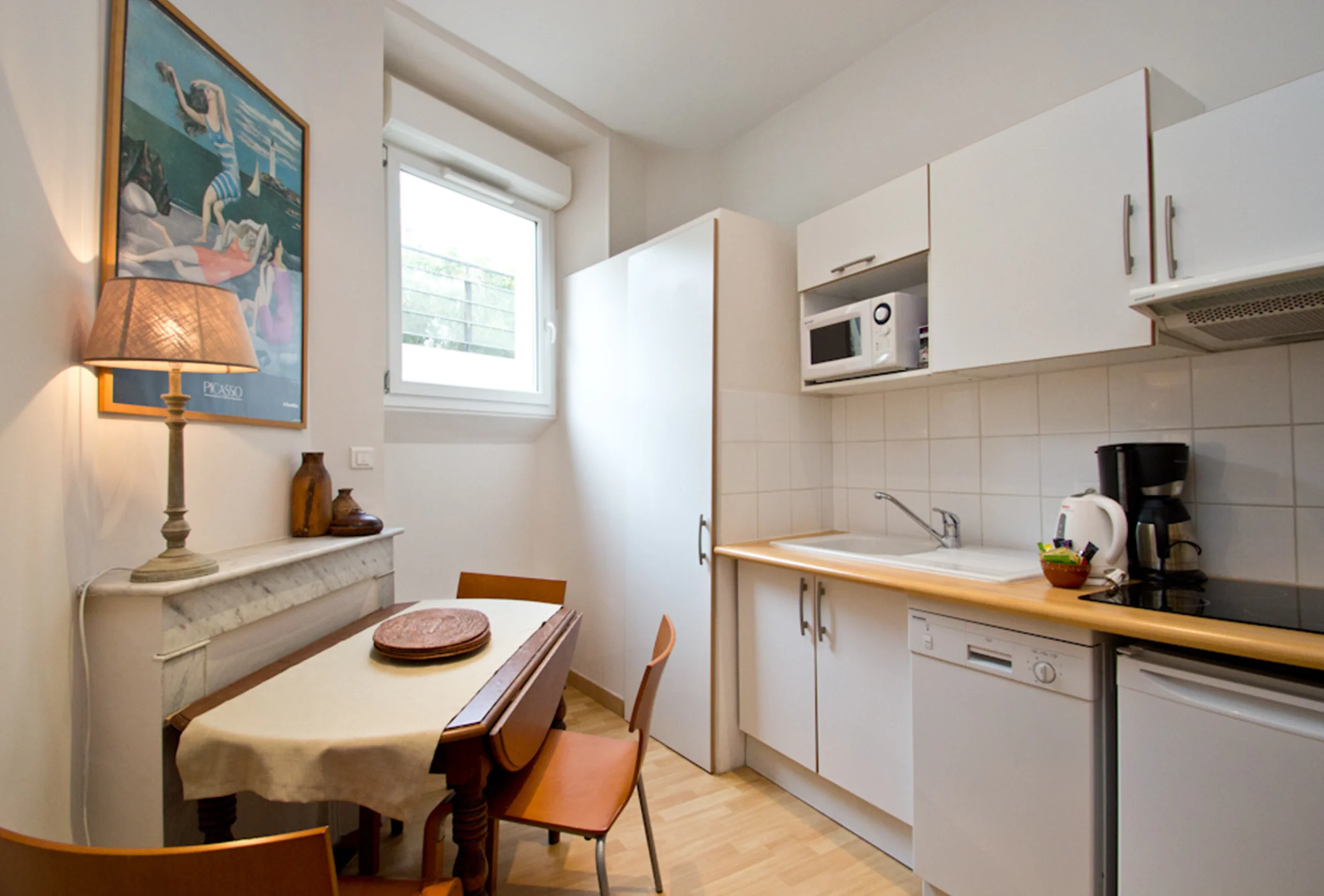The apartment features a small living room. Two bedrooms with two singles bed which can combined into a double bed. The bathroom has a shower and toilets. The kitchenette is equipped. If you choose this apartment you will be in the heart of Cannes.