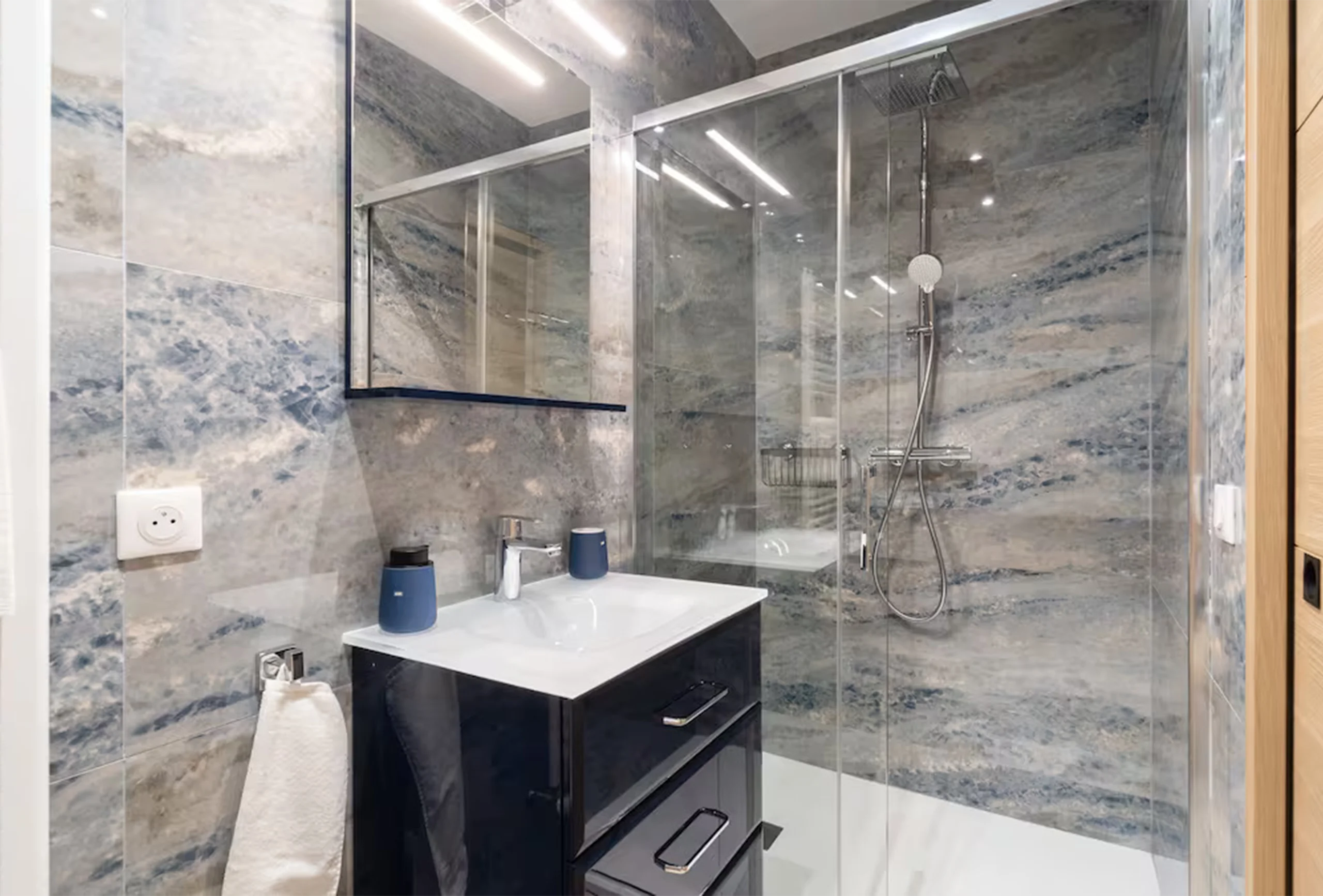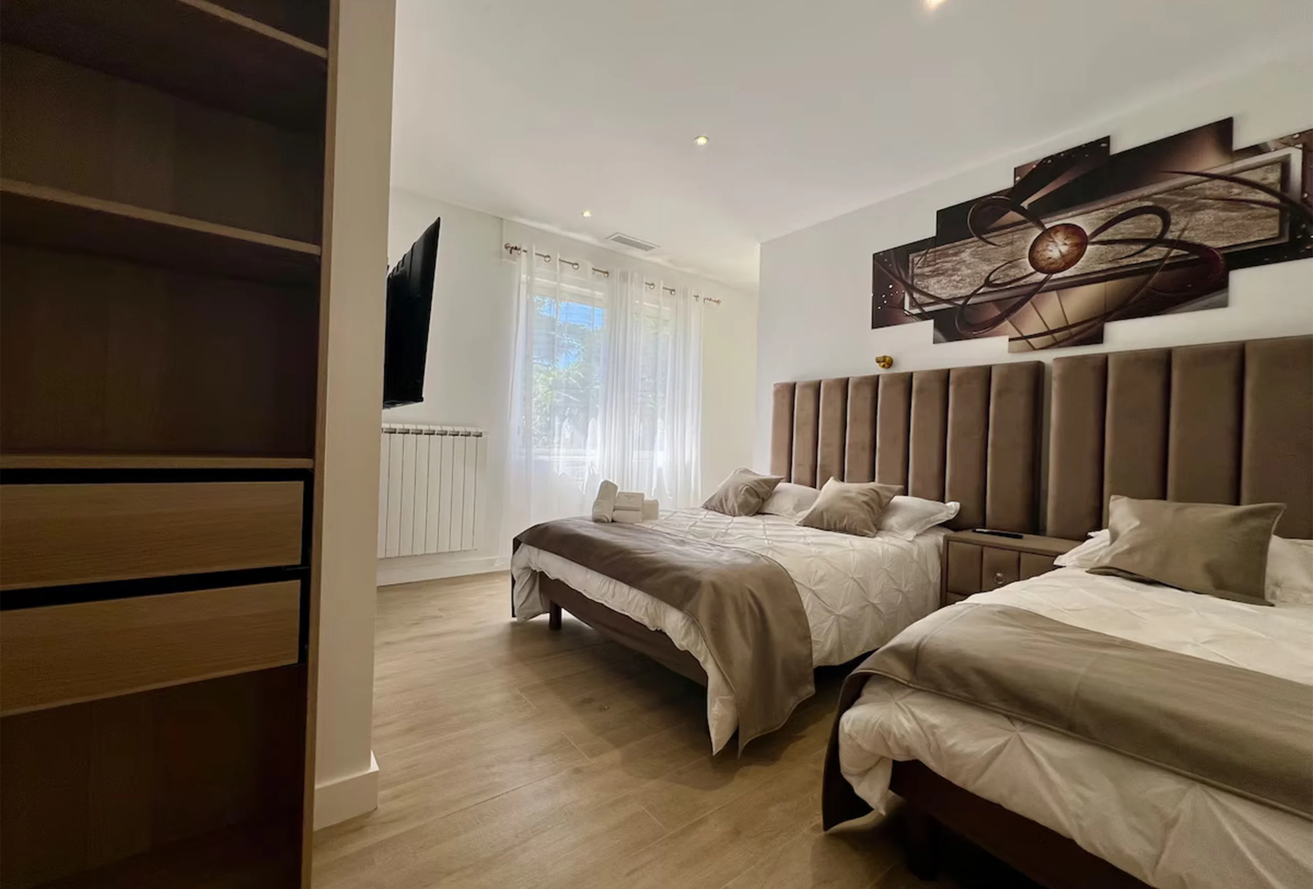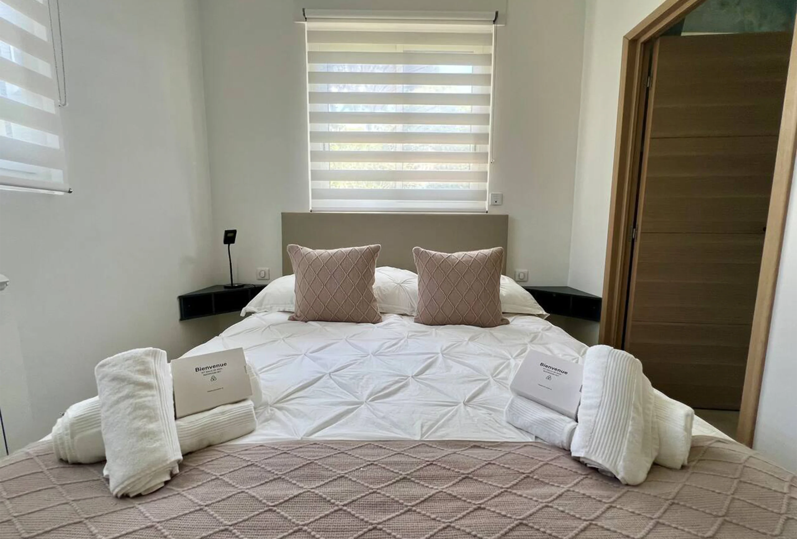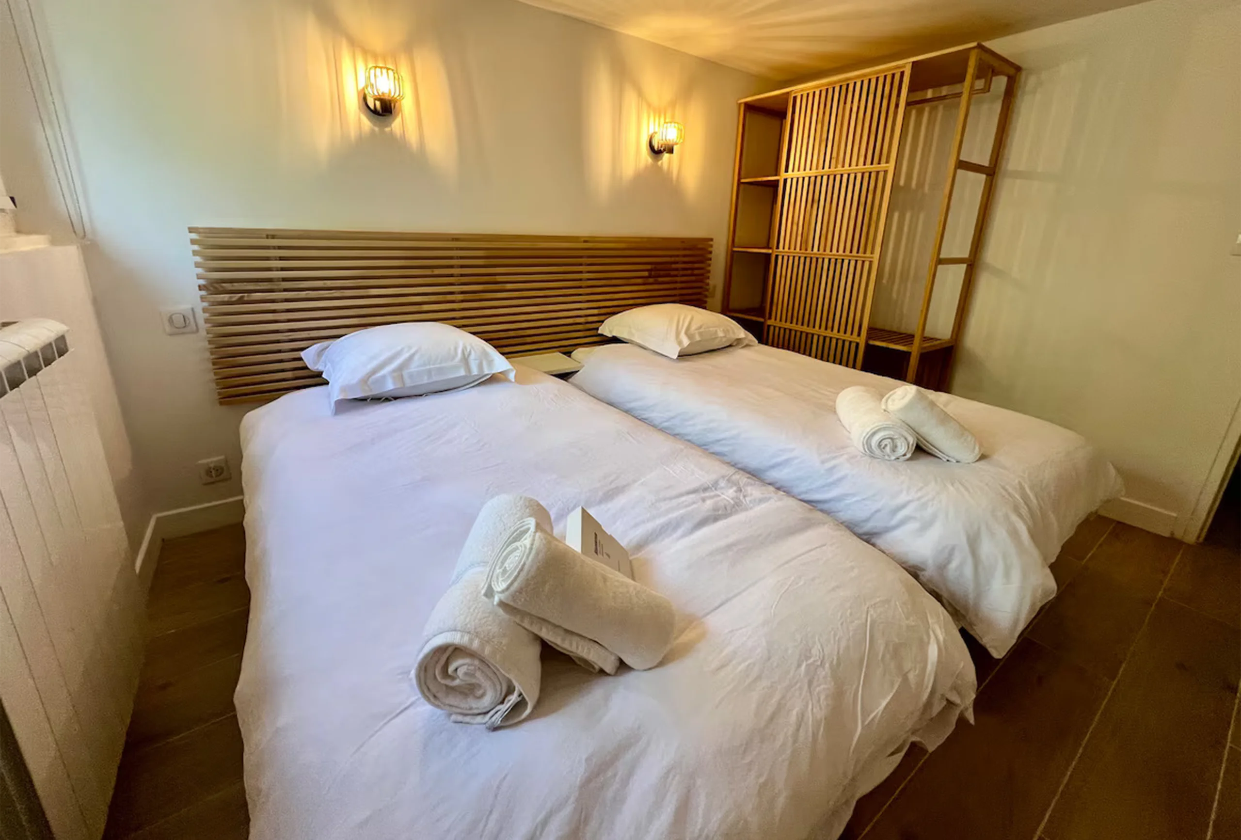 Bedroom 3: Double bed (180, can be separated), bathroom with shower, and access to a terrace.