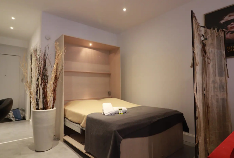 This studio is located in a nice building, right behind the Carlton hotel, 2 mins from the Croisette. On the 5th floor with lift with a large south-facing balcony. one comfort sofa bed, cupboards, TV, dining table. Bathroom with shower and toilet, open kitchen equipped with fridge and electric hot plates. It’s comfortable and very well located. Internet.