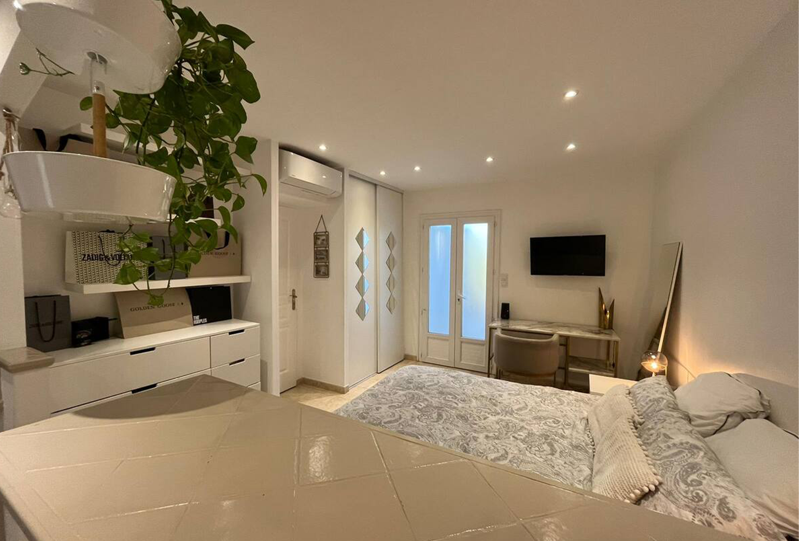 Ideal for Cannes congresses and salons (900m from the Palais des Festival and La Croisette). Very well arranged and geographically located accommodation. All comforts,air-conditioned. Small pleasant terrace. Nice studio with equipped kitchen,large king size double bed,desk,shower room and outdoor terrace. You will have access to the entire apartment independently for unforgettable stays!