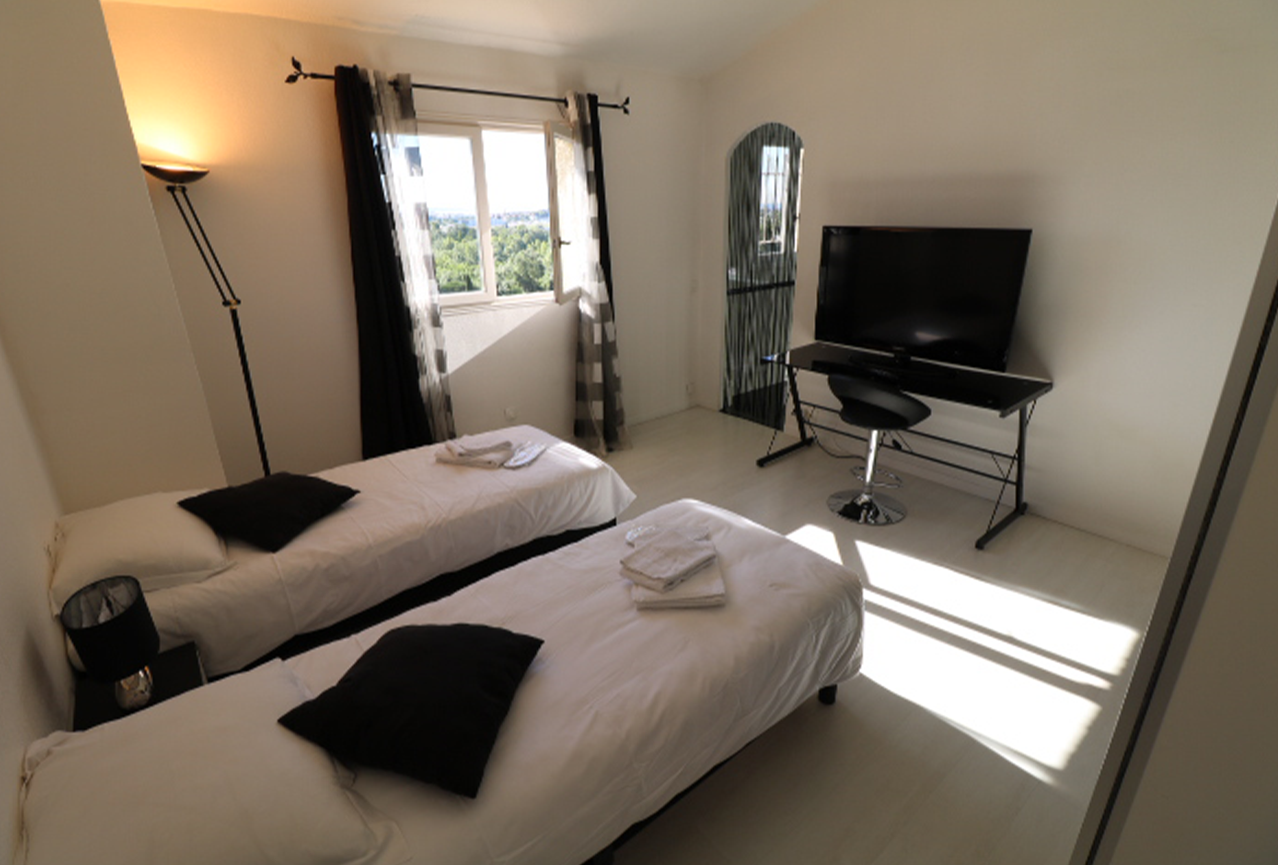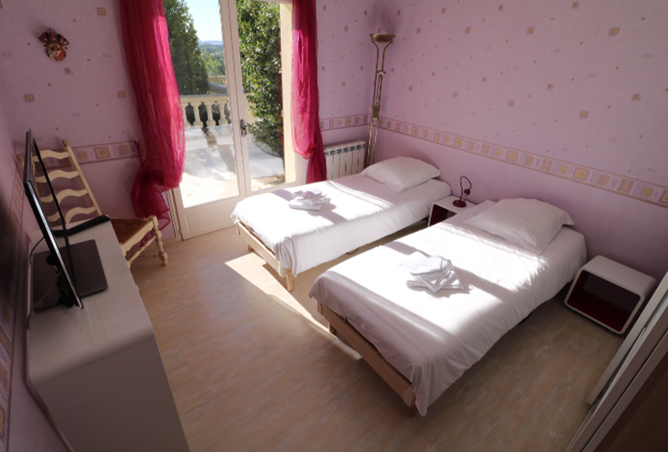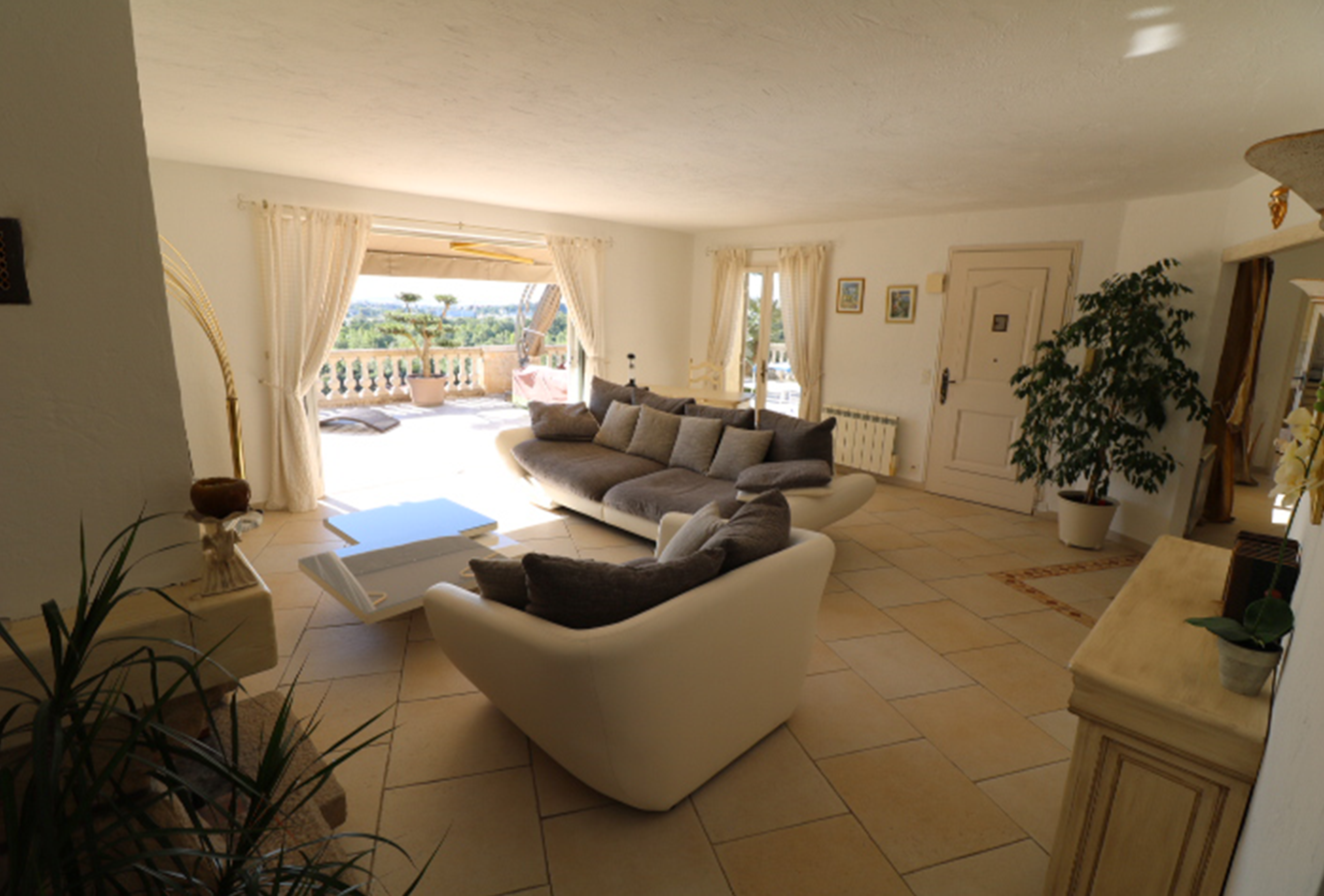 Large provencal style villa, fully refurbished. Located in Mandelieu la Napoule, about 15 min drive from Cannes. Large Terrace with swimming pool,  jacuzzi,  outside kitchen and bbq. Very quiet, little sea view. Spacious living room, dining room. Internet, air conditioning. 1 bedroom with one queen size bed and en suite bathroom with balneo and toilet. 1 bedroom with 2 electric twin beds and en suite bathroom with shower. On second level 1 bedroom with 2 electric twin beds and ensuite bathroom with shower and toilet.