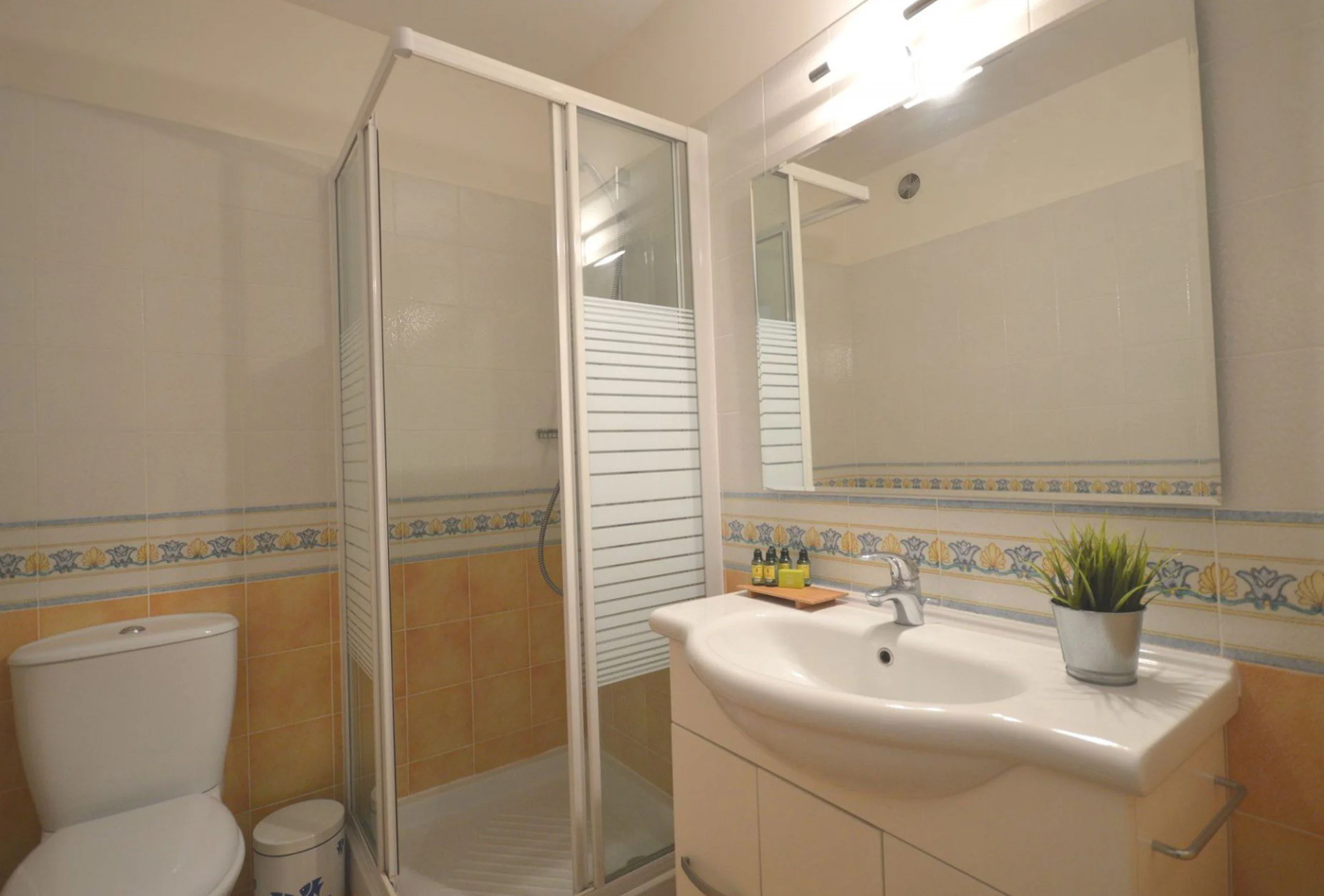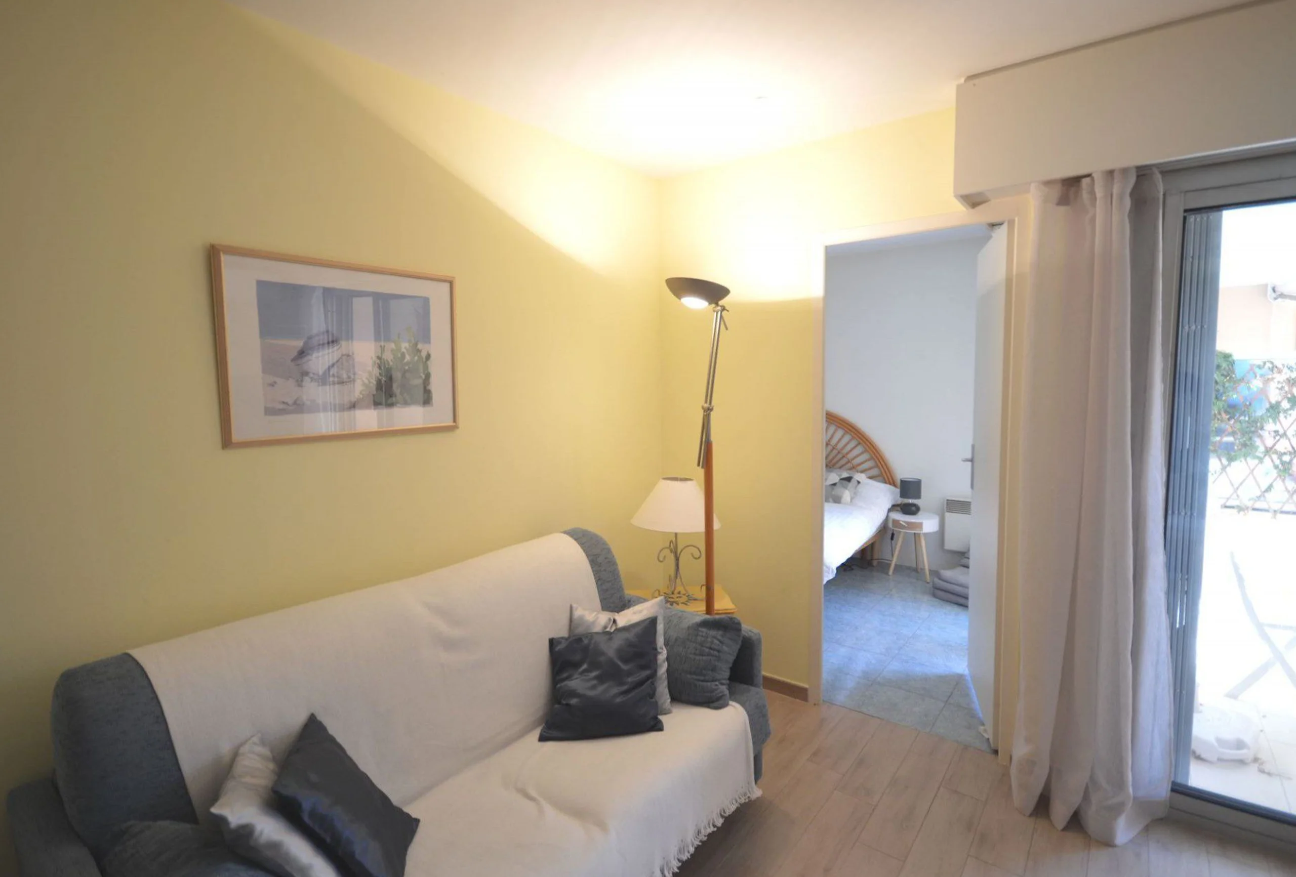 This is a stylishy refurbished apartment in an older building, with great amenities, a sheltered balcony, wonderful view of the beach and easy walk to the Croisette. Really comfortable bed and good shower