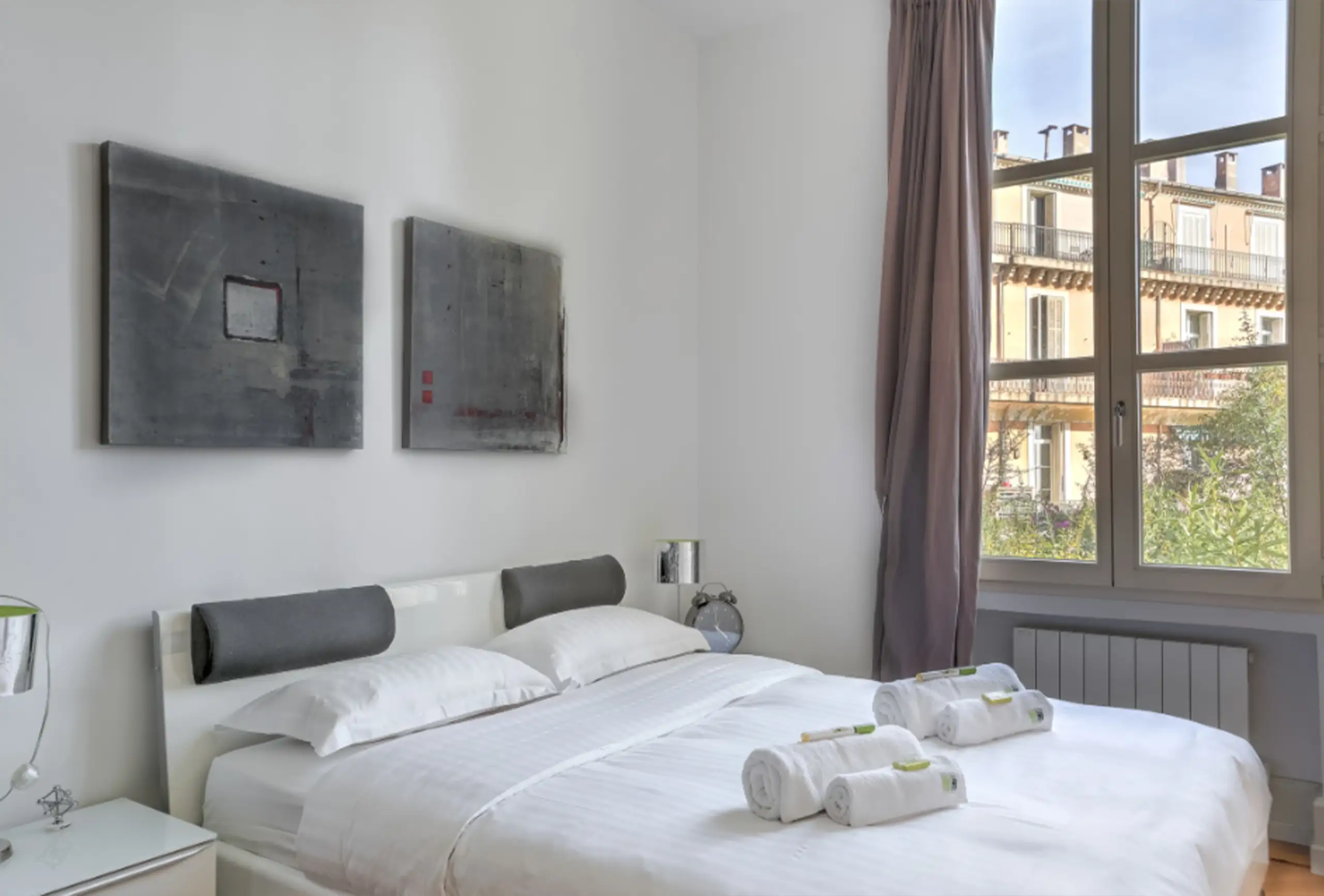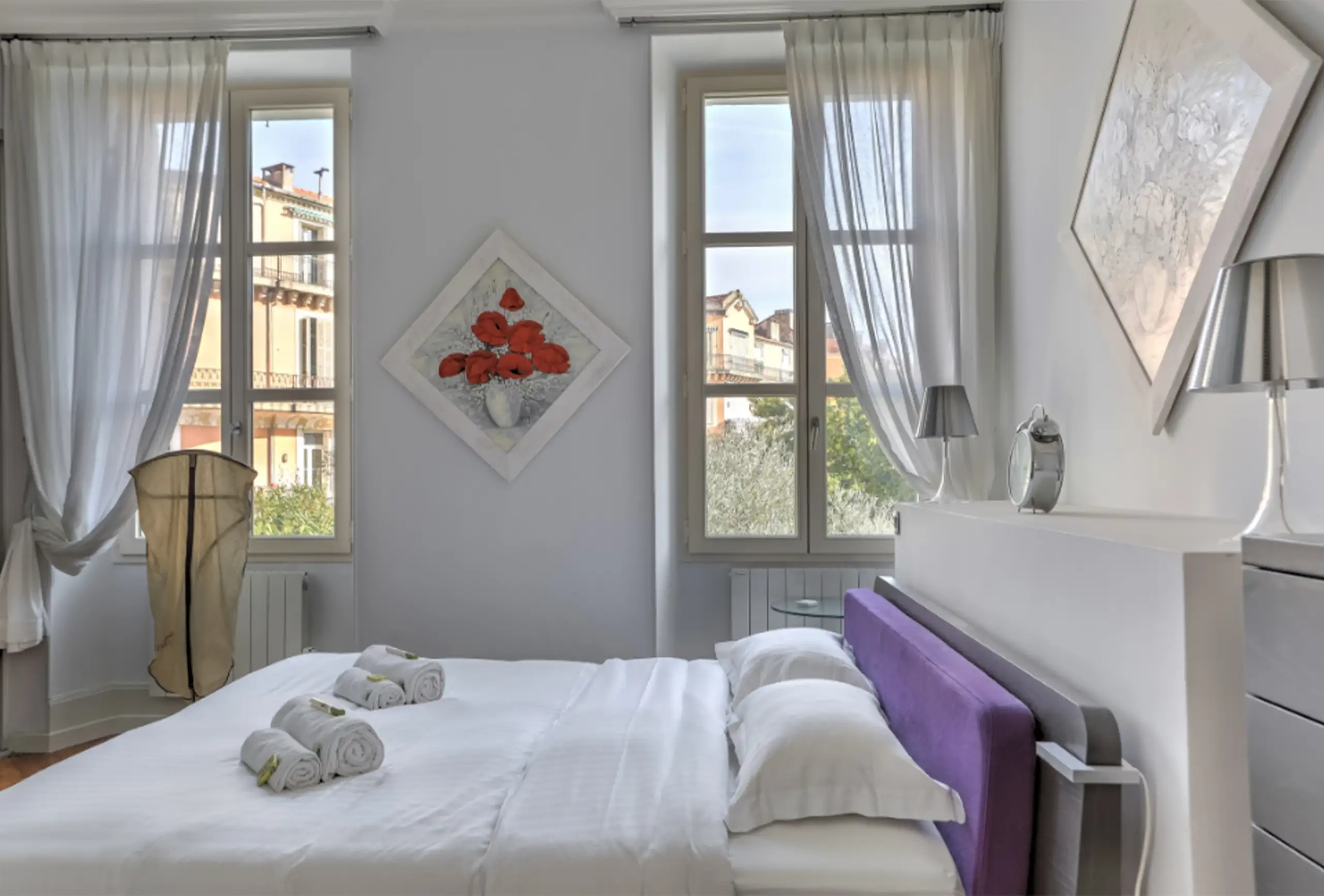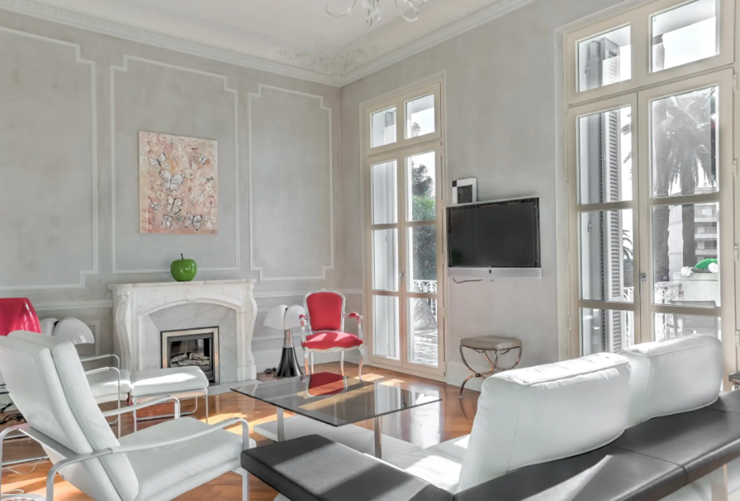 Beautiful fully renovated luxury apartment with terrace and swimming-pool Magnificent 90m ² apartment, located in a secured and closed beautiful residence. It offers all the comfort for an exceptional stay in Cannes. Ideal for delegates (13 minutes walk from the Palais des Festivals) , as well as for tourists (5 minutes walk from the beaches). You have access to the swimming-pool. This 2 bedrooms well decorated apartment, can comfortably accommodate 4 people. The living room / dining room with a flat screen has a direct access on south exposed terrace and equipped with a table and chairs. The first bedroom has a queen size bed (180X200) and a nice dressing. The second bedroom has double bed (140X200). and a nice dressing. There is a sofa bed in the leaving room. There is 2 bathrooms with showers and wc. A huge kitchen fully equipped with everything you need to prepare your favorite dishes : oven, microwave, fridge, coffee machine, kettle, toaster, dishwasher.
