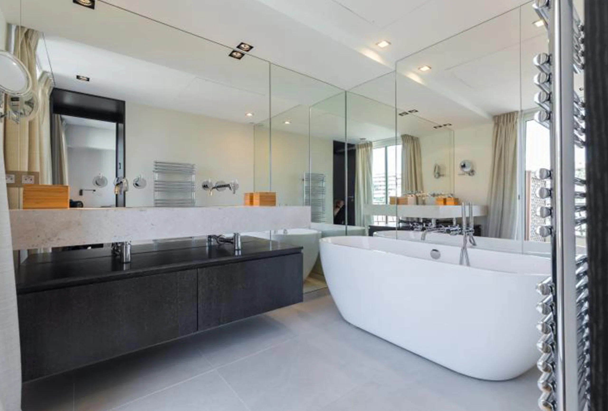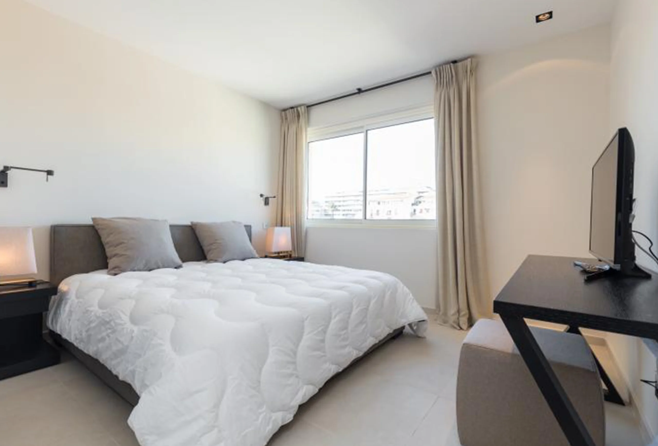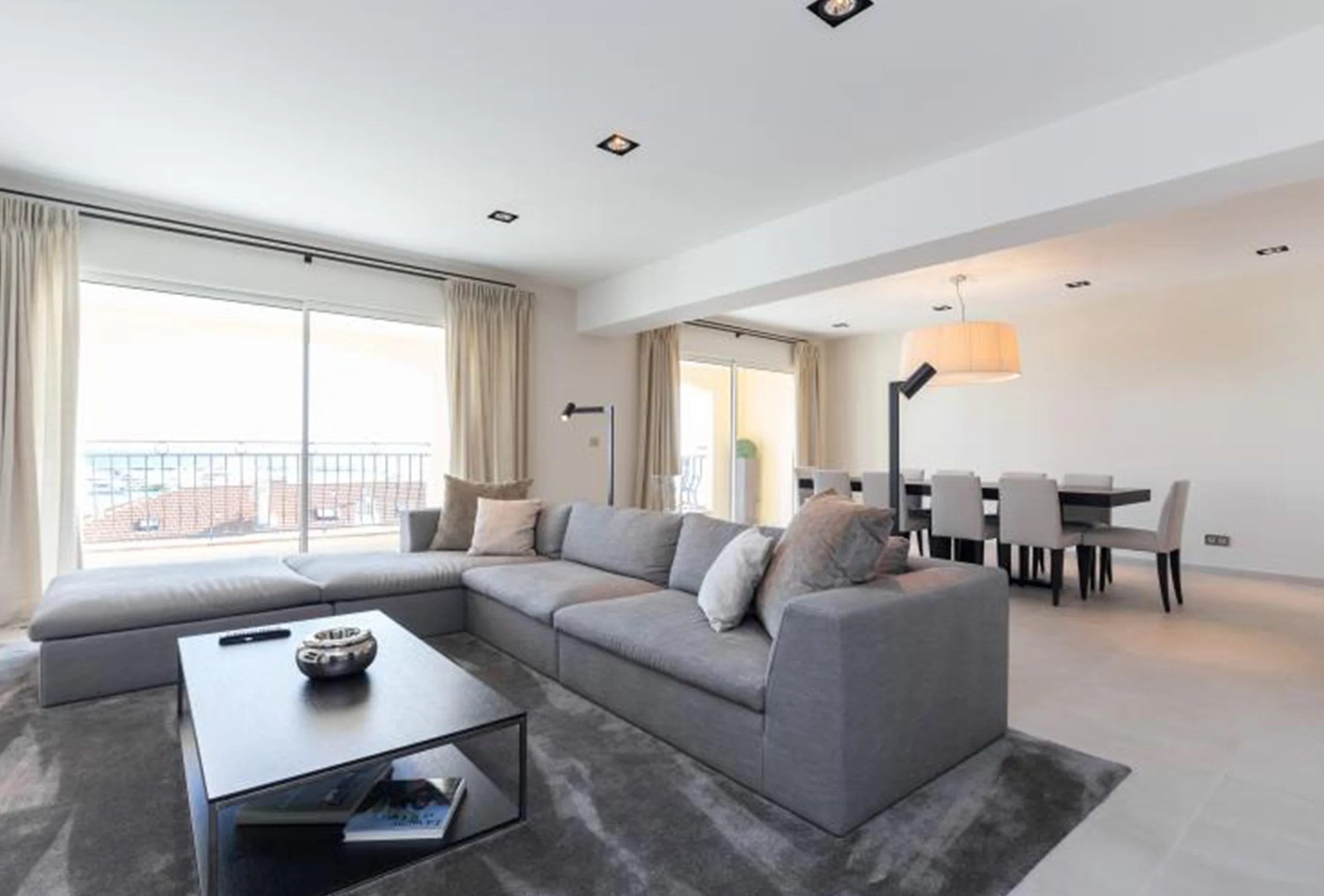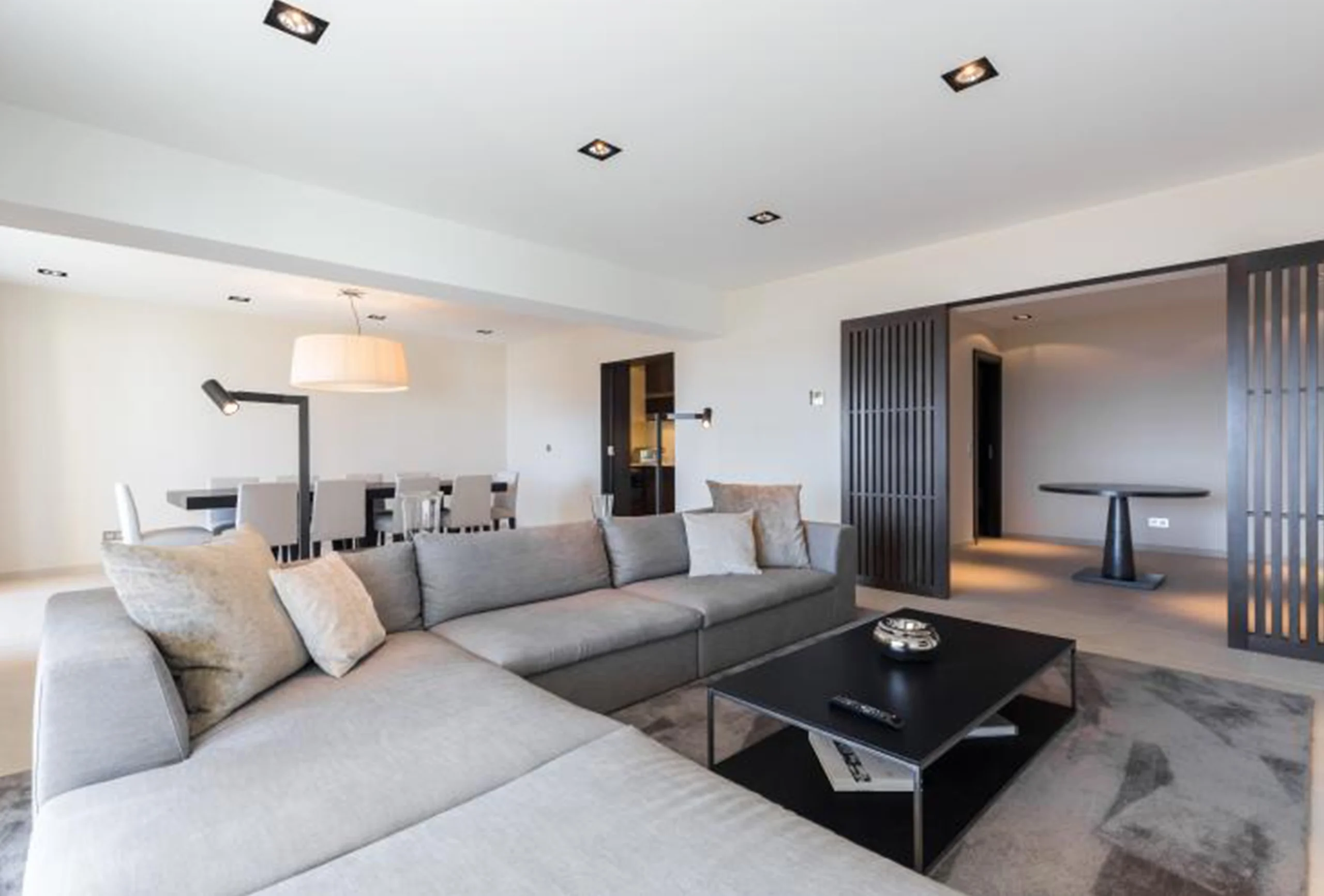 High quality 3 bedrooms and 3 bathrooms apartment right by the Palais des Festivals of which it has views. This apartment which is on the 5th floor with an elevator has been renovated and entirely redecorated in 2016, to a very high standard of finishing and equipment. In a secure and well kept building, it is just 4 minutes to walk to the Palais des Festivals and the beginning of the Croisette, the location is just perfect. You enter the apartment into a spacious lobby, to your right you have a corridor with 2 bedrooms, both have en-suite bathrooms, one with a bath tub and shower attachment, a toilet in each bathroom and a washbasin, towel heater. Two bedrooms have double beds of 180cm/200cms, and one of 160/200cm. To your left of the lobby is the living area, of which you have the third bedroom which also be used as an office. This one has a high quality double sofa bed and also an en-suite shower room with a toilet. The living room is spacious, comfortable and very well equipped with a lovely in glass, gas fireplace. A lovely large sofa and a dining table for 10. Just off the living room you have a fully equipped kitchen with all the latest technology and mod cons. Off the living room, facing south is a lovely terrace, with views of the Palais des Festivals, the old Port, the sea and the old town. You can use this space for advertising during the congresses as it is visible from the main Palais area.