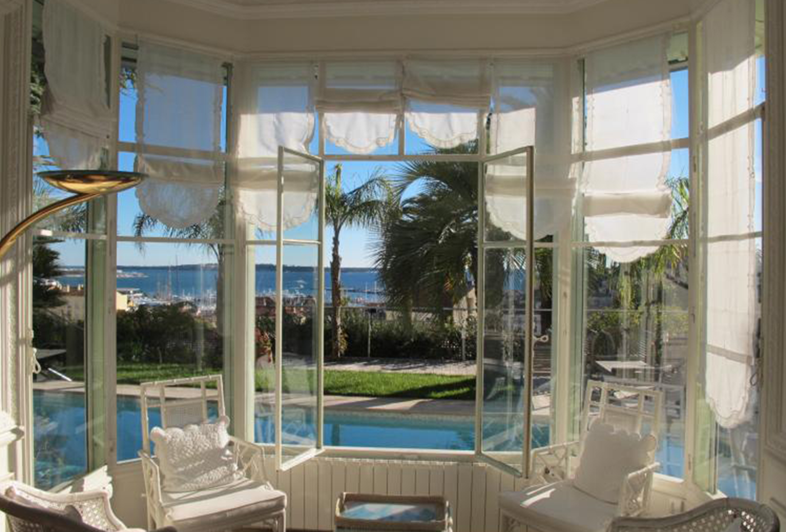 Stunning 5 bedroom town house hidden in the heart of Cannes, with amazing views and a very convenient location. Just above the old town of Cannes, this house is set in a quite area, but still only a 10 min walk from the Palais des Festival. Belle Epoque style and beautifully kept, it has a beautiful garden, terraces and a heated pool, all over looking the bay of Cannes, with views of the old town, the islands, the port and the sea. On the ground floor, entrance level, you will find a spacious entrance hall with a guest toilet, a lovely, light living area, a fully equipped kitchen, a dining room set in a veranda style and an office. From the living room you can walk out onto the terrace/garden, enjoy the views and there is a heated pool. On the first floor there are 3 bedrooms: #1 : Double bed with an en-suite bathroom which has a walk in shower, bath tub and a toilet. This bedroom enjoys the sea views and has it’s own terrace. #2 : double bed, en-suite shower room, sea views and it’s own balcony. #3 : Two single beds and an en-suite shower room. There is a guest toilet also on this level. On the second floor there are two more bedrooms: #4 : Twin beds with a sea view #5 : Twin beds. It also has a single bed in the study so could be 6 bedrooms
