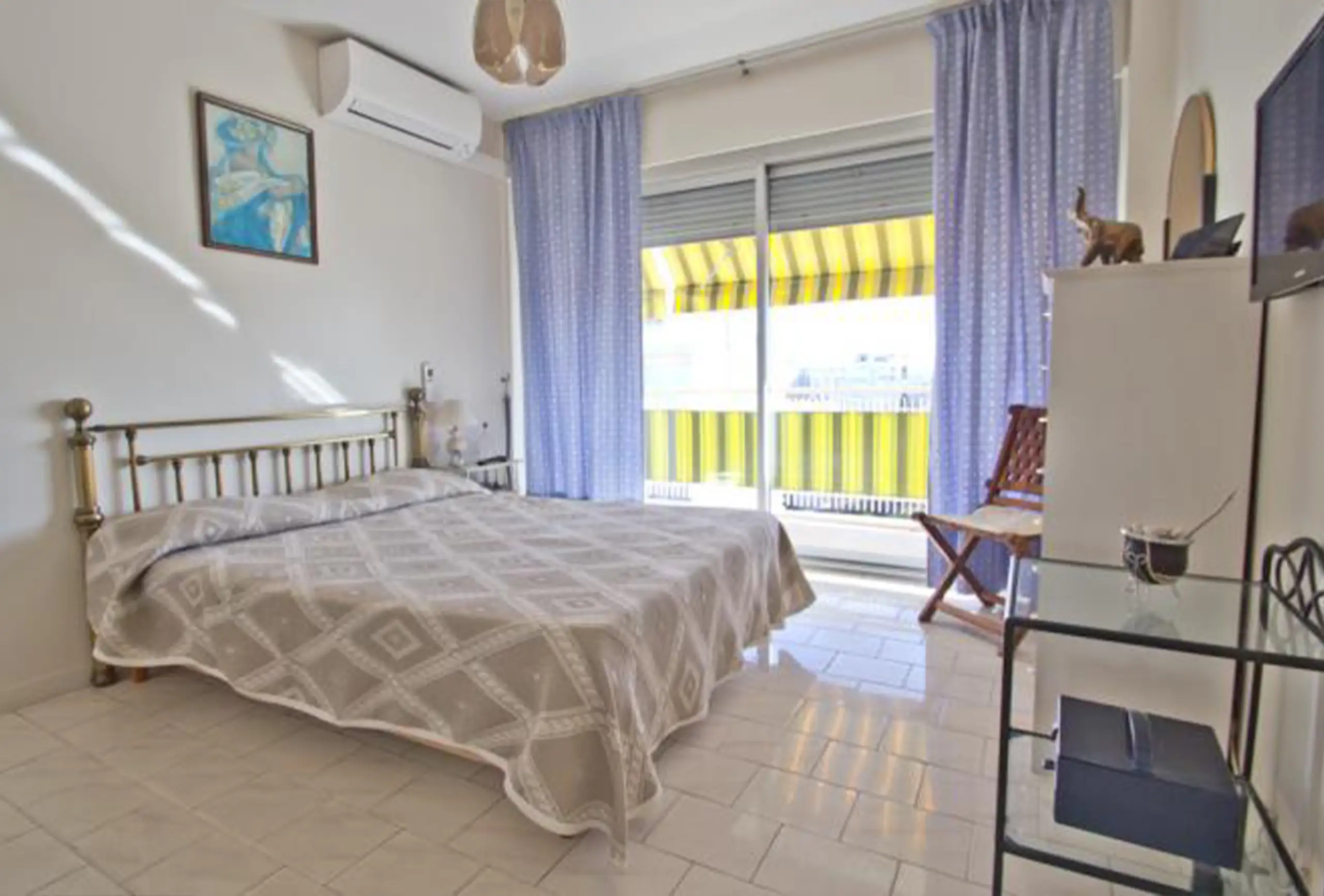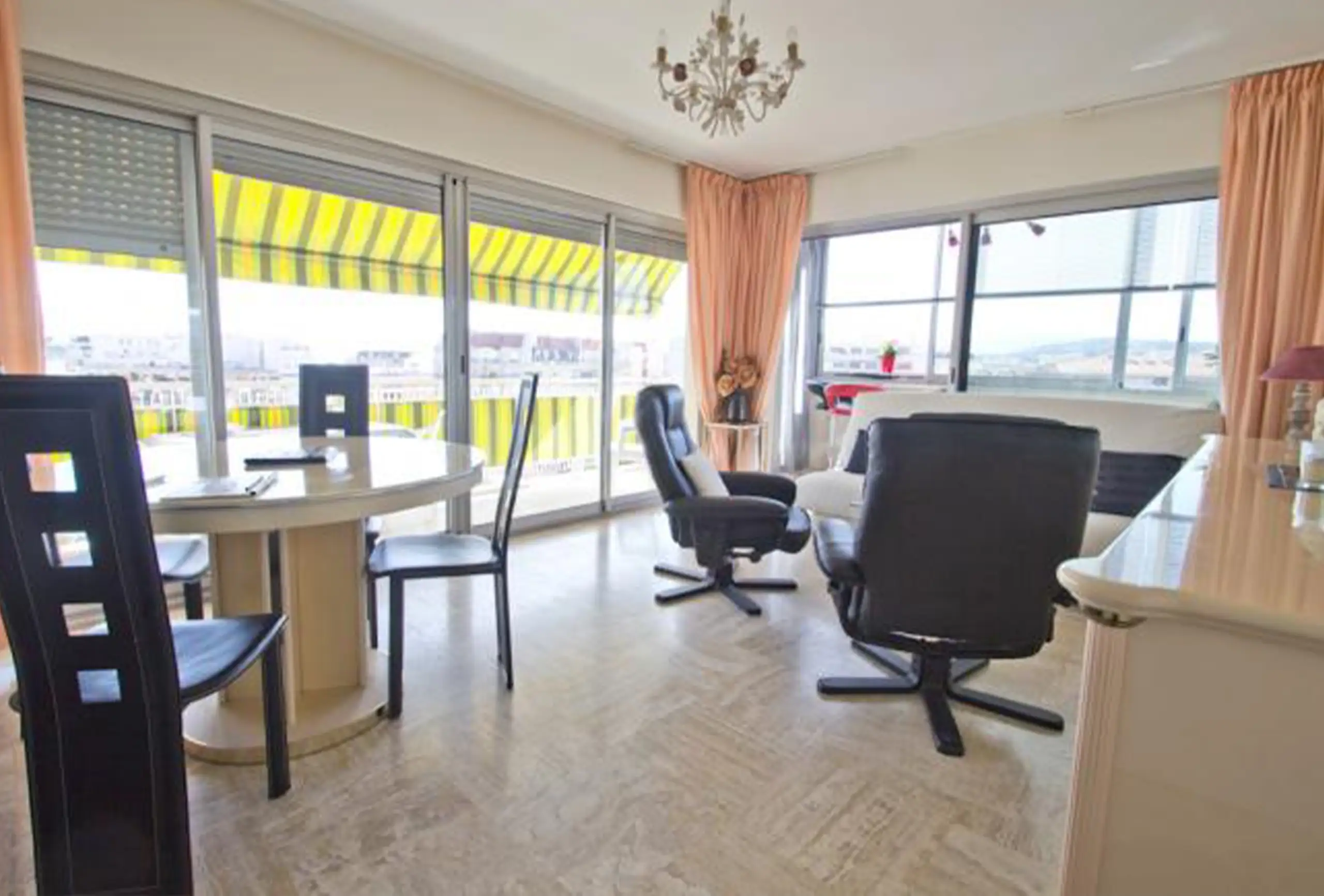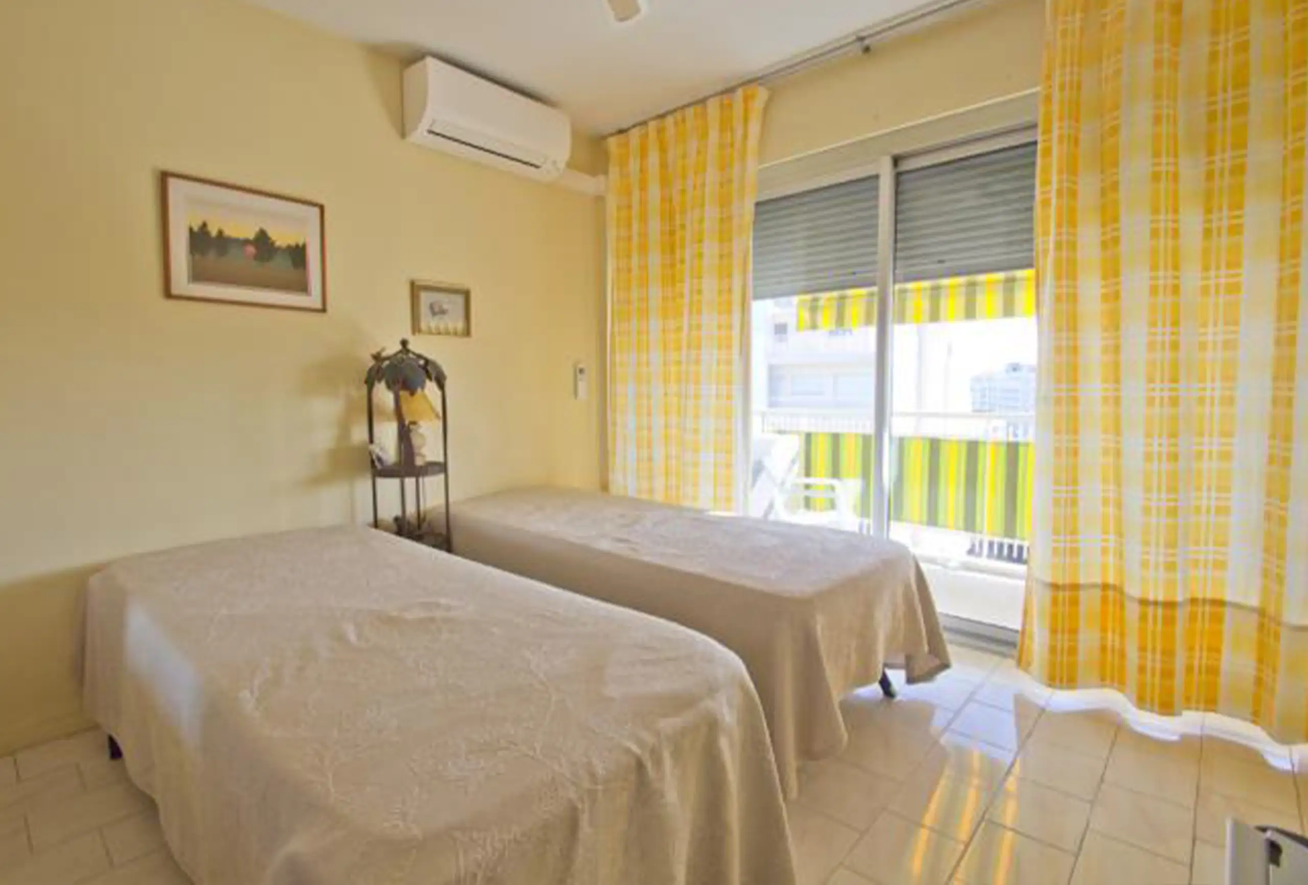 On a high floor of a good standard apartment block behind the Carlton hotel, this property boasts bright sun-lit rooms. The living room has a sofa, and a dining area. It looks out onto a vast terrace with a splendid view of Cannes. The first bedroom has a double bed. The second bedroom features two single beds which can be converted into a double bed if preferred. The bathroom has a shower. WC are independent. The kitchen is simple but well equipped. You will love the view of this apartment!