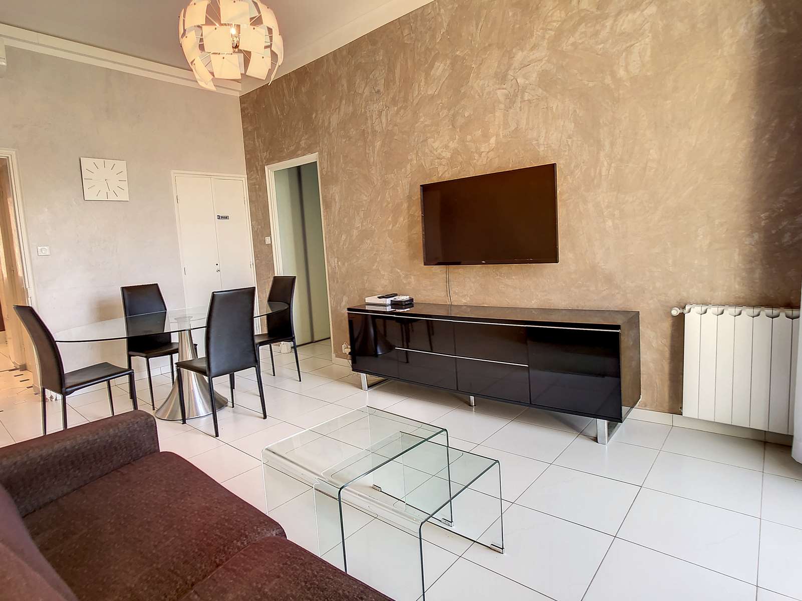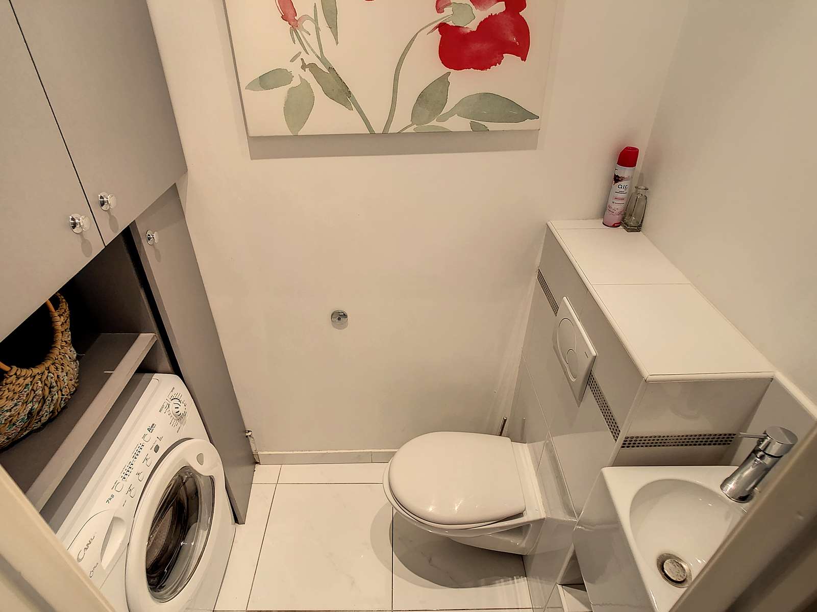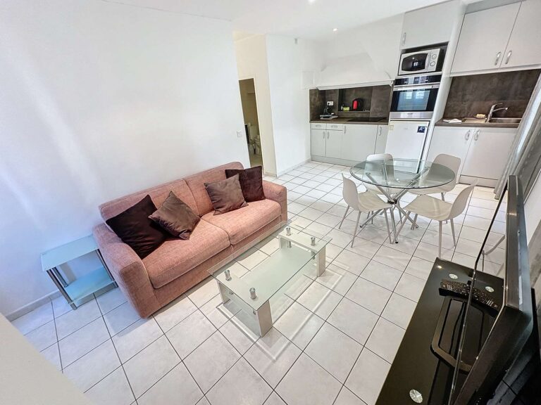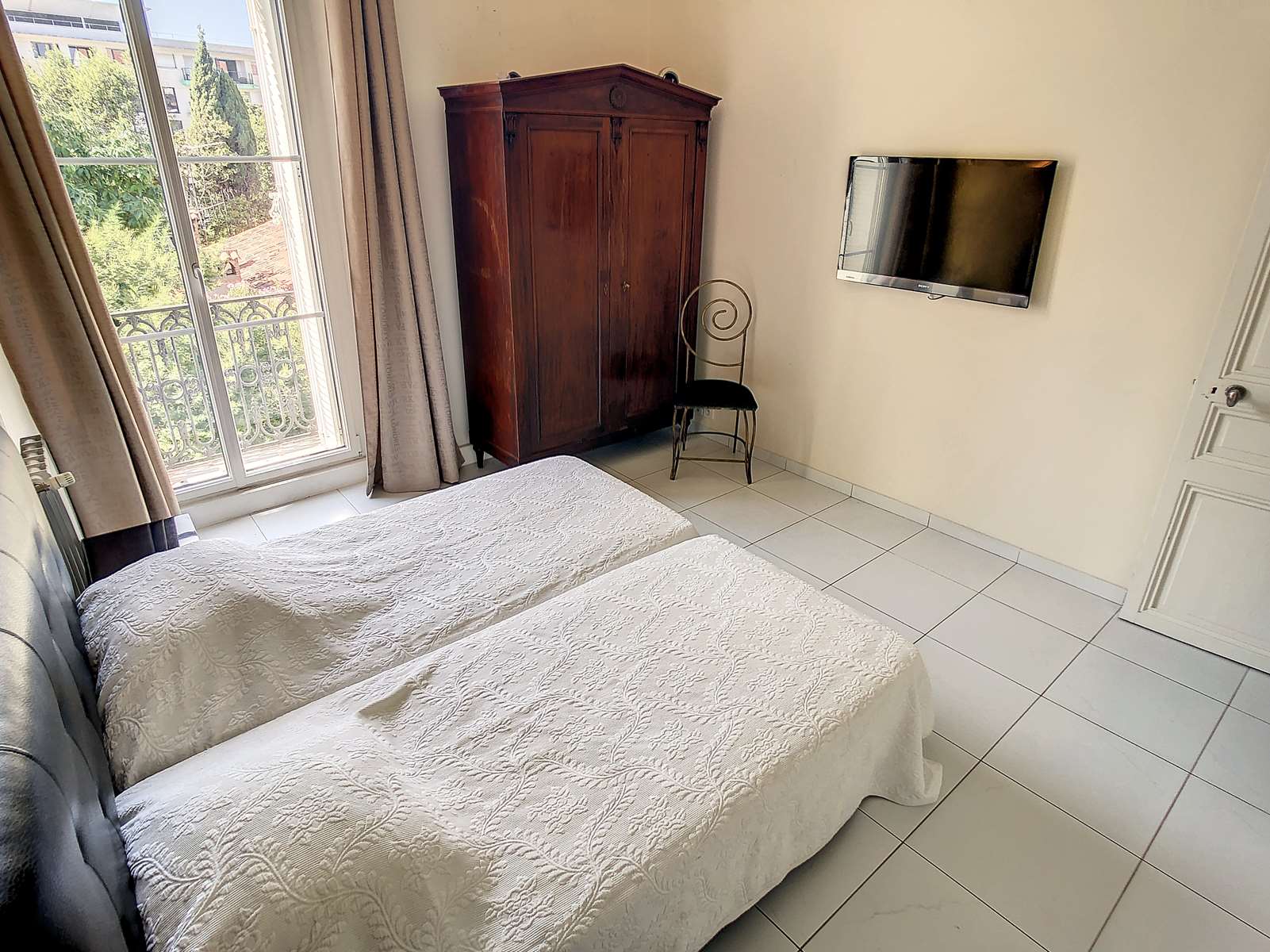 The cozy bedroom comes with twin beds, while the bathroom features a modern shower and an additional guest toilet for extra convenience. With air conditioning and a prime central location, this apartment provides an ideal stay for both leisure and business travelers in Cannes.