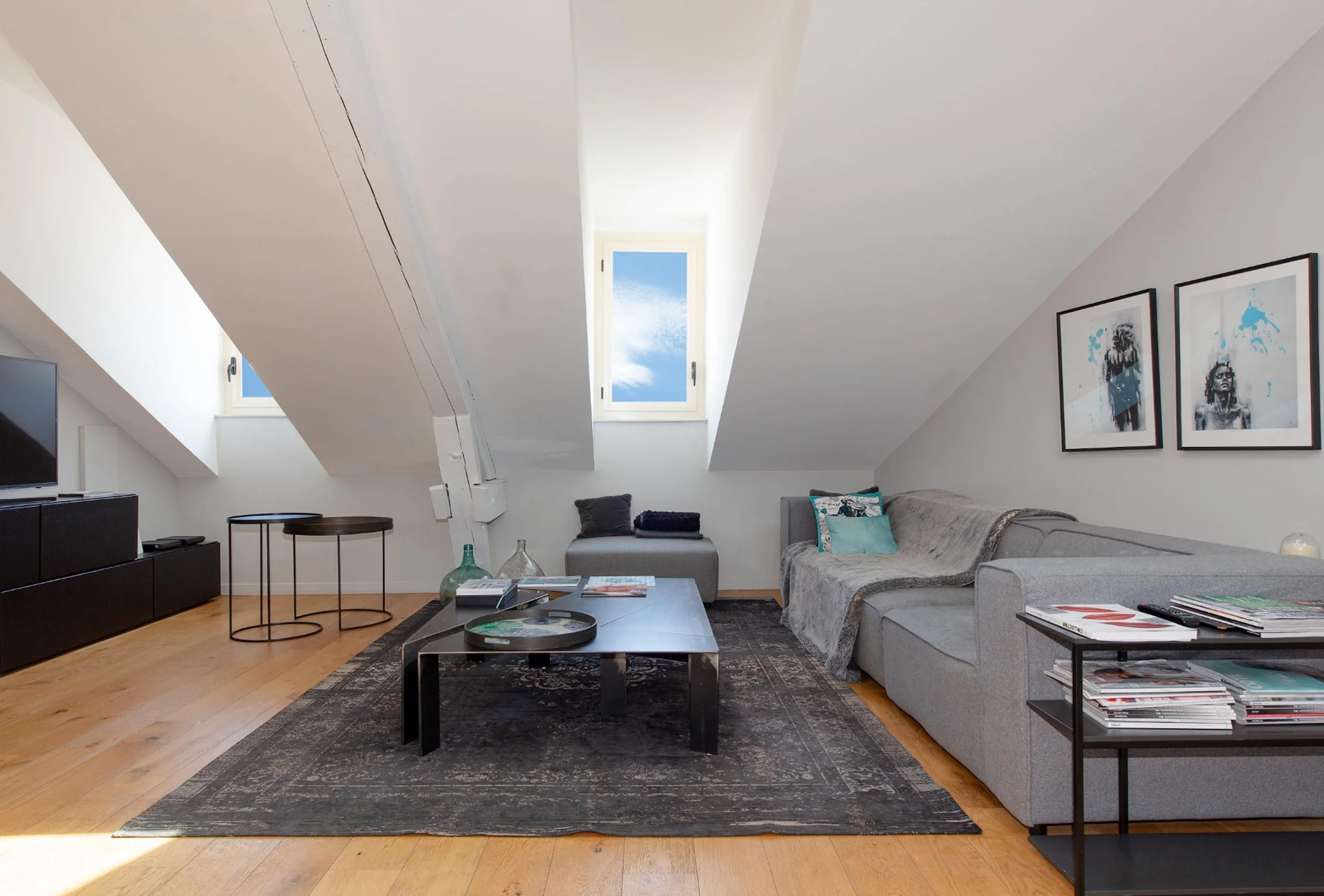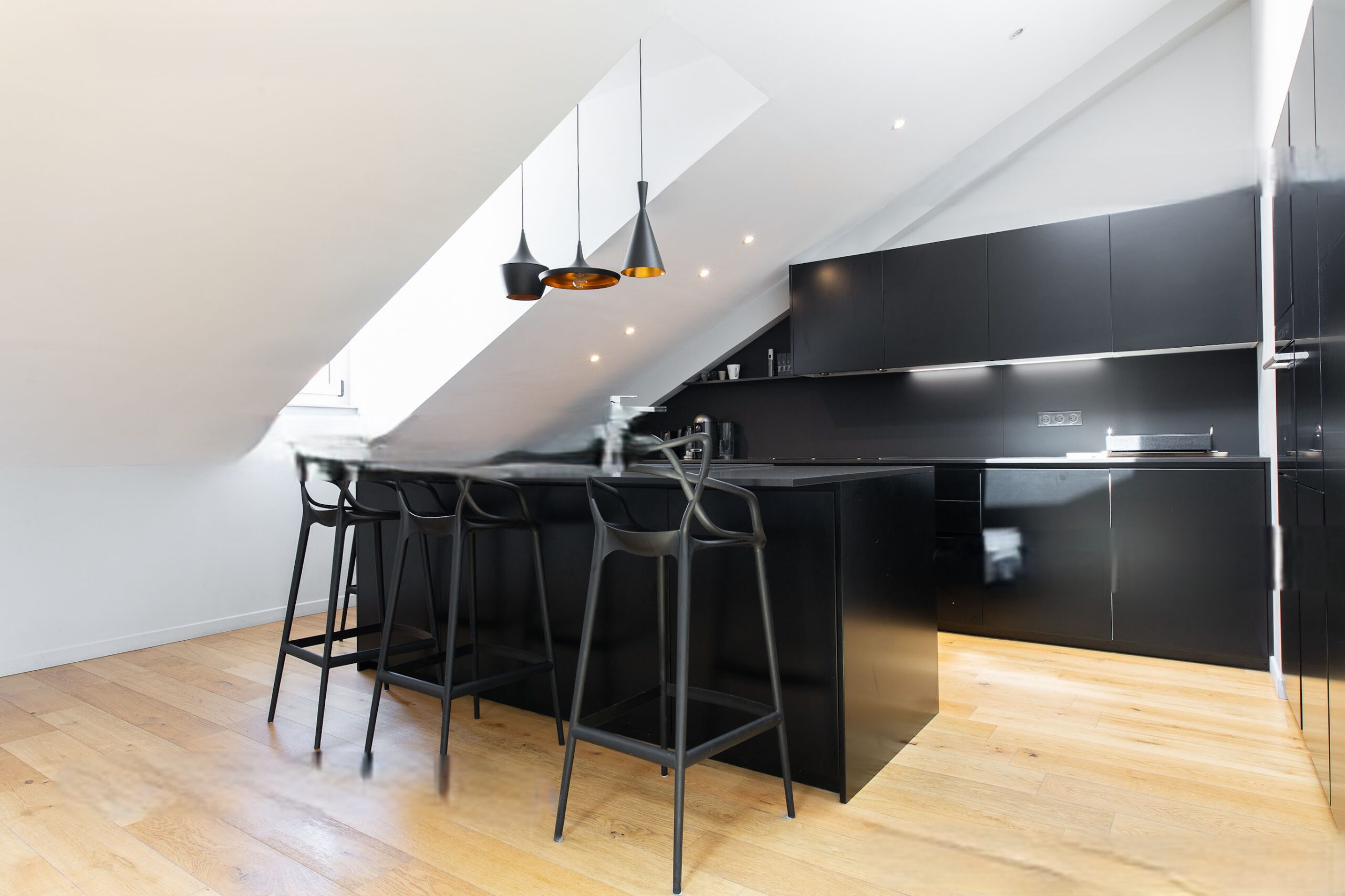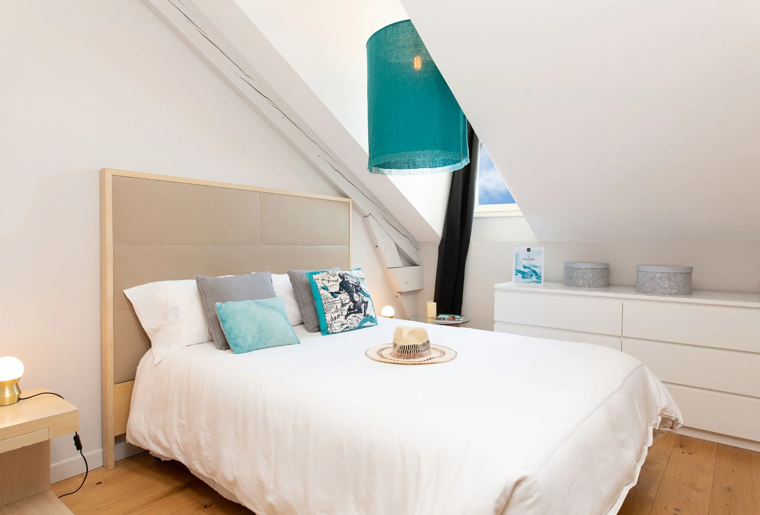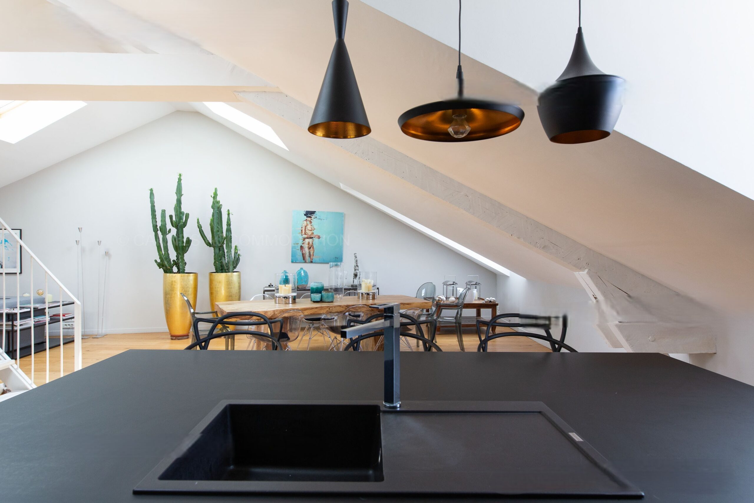 Set on the fourth and top floor of a classic bourgeois style building, this spacious 180 sqm home has been architect renovated. Tucked under the eaves, it still feels wonderfully open thanks to its high ceilings.