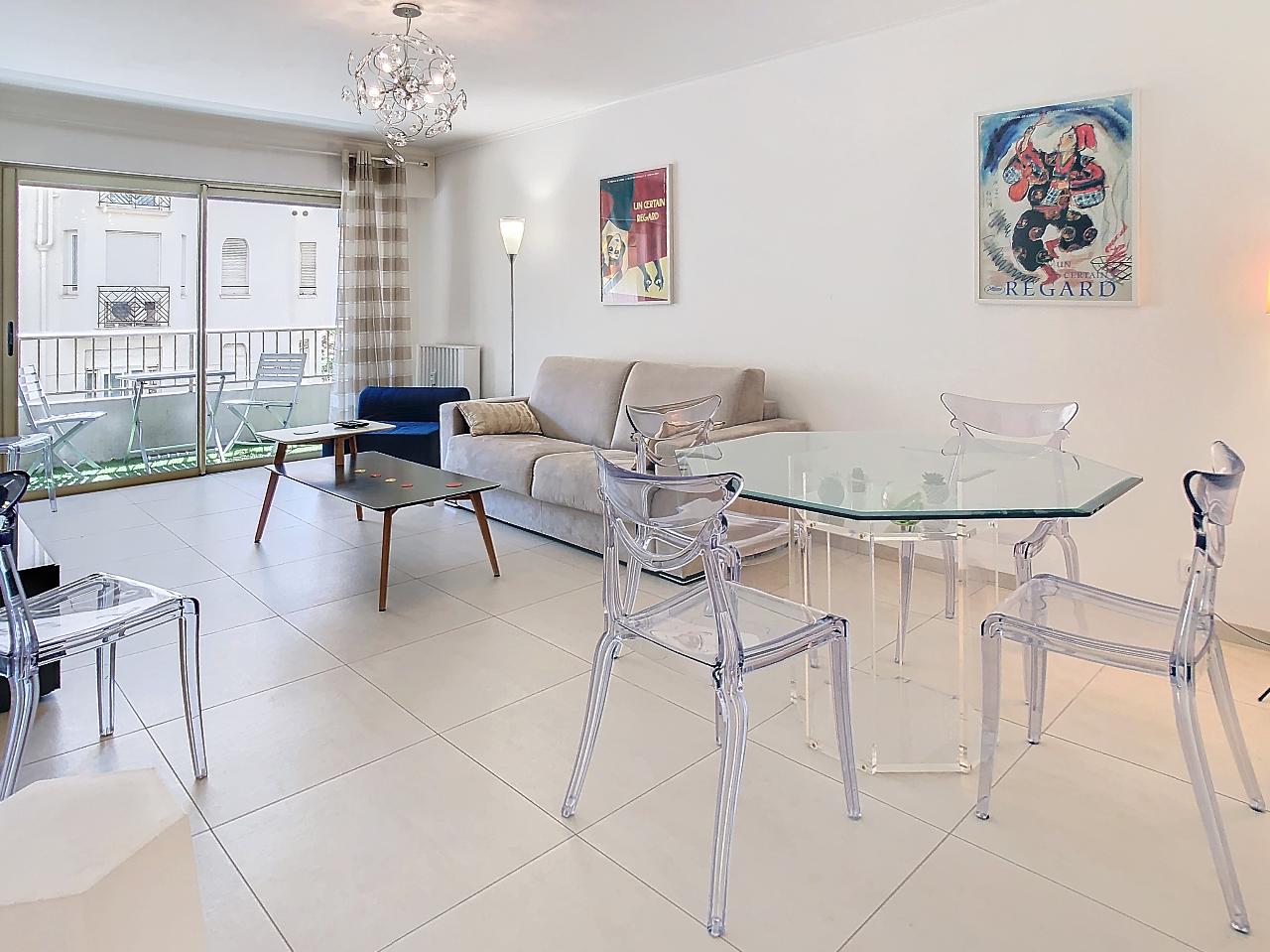 This lovely one-bedroom apartment is perfectly located in the center of Cannes, just two blocks from La Croisette and near the Miramar building. The Palais des Festivals is an 8-minute walk away. Situated on the 1st floor of a modern building with a lift, it combines comfort and convenience.