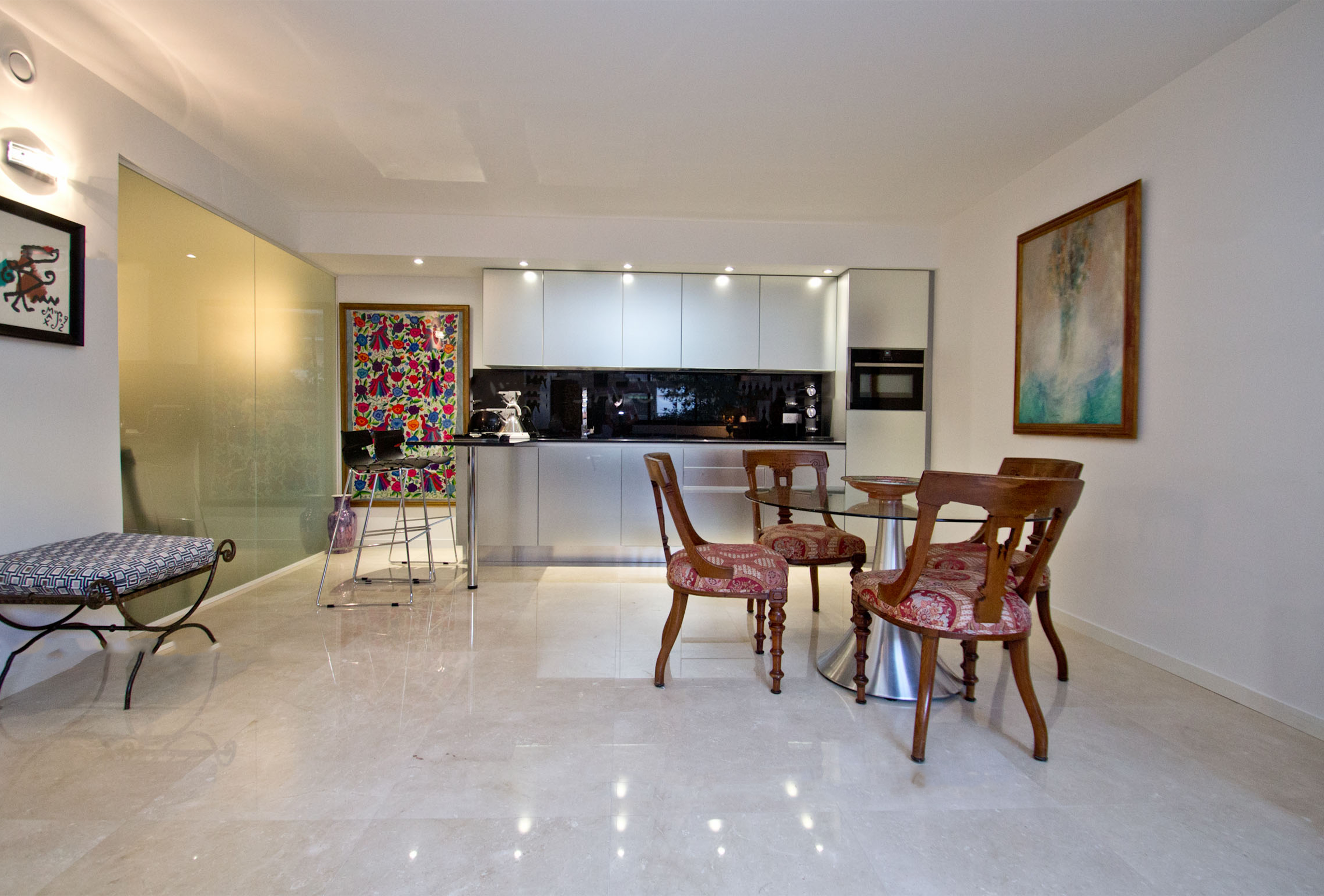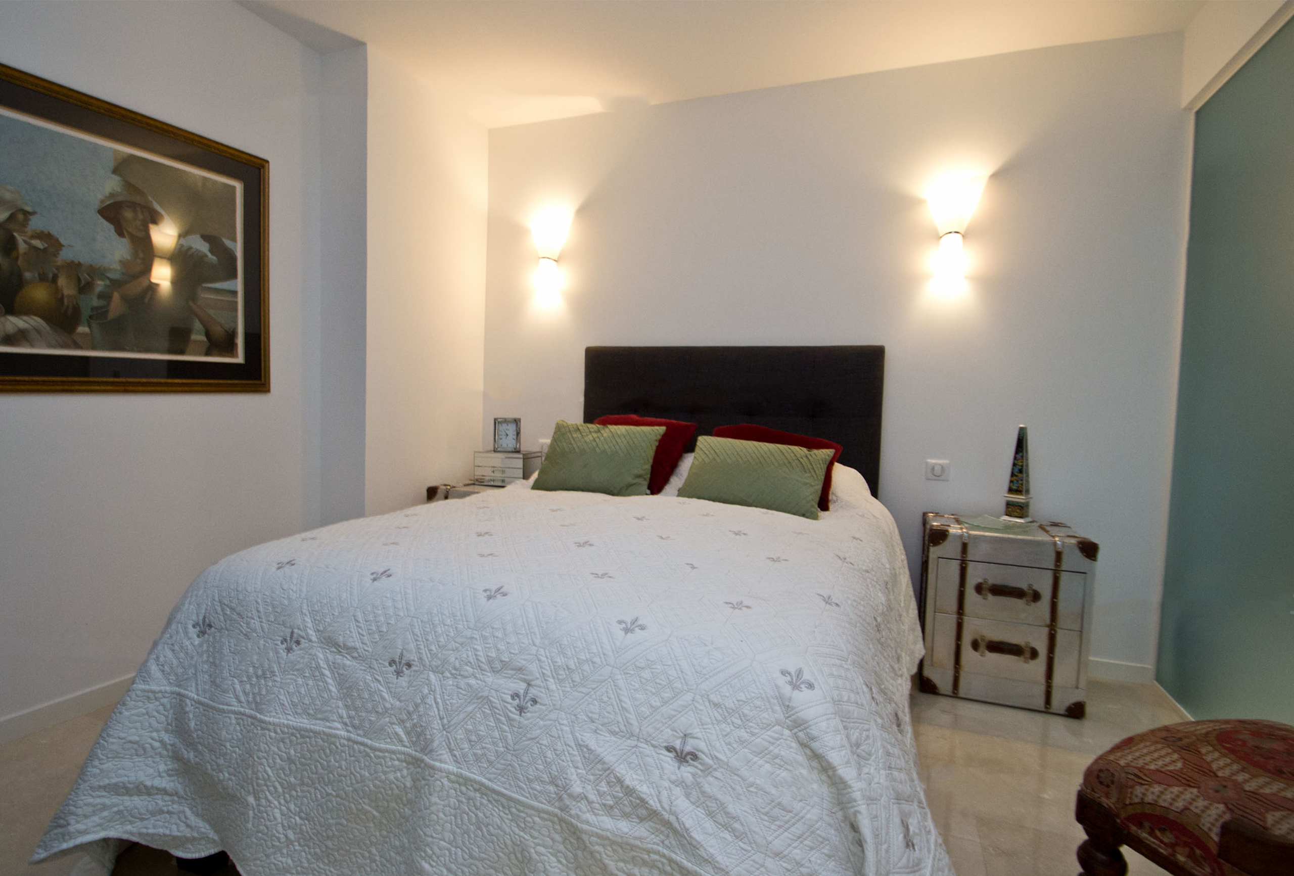 Should you be looking for a charming and comfortable apartment in a prestigious residence, this is all you need! Nestled on the 2nd floor of the famous residence “Les Jardins de la Croisette”, this splendid one bedroom apartment has totally been renovated by an interior designer. You will be seduced by the very contemporary renovation mixed with some charming furniture purchased in the best Antic stores of Paris. The living room has a sofa bed. The open kitchen is very design and well equipped. The bedroom is blind but very cosy. It has a double bed. The bathroom is superb! It offers a large shower. Toilets are independent. You will certainly have an easy-going stay in this beautiful apartment.