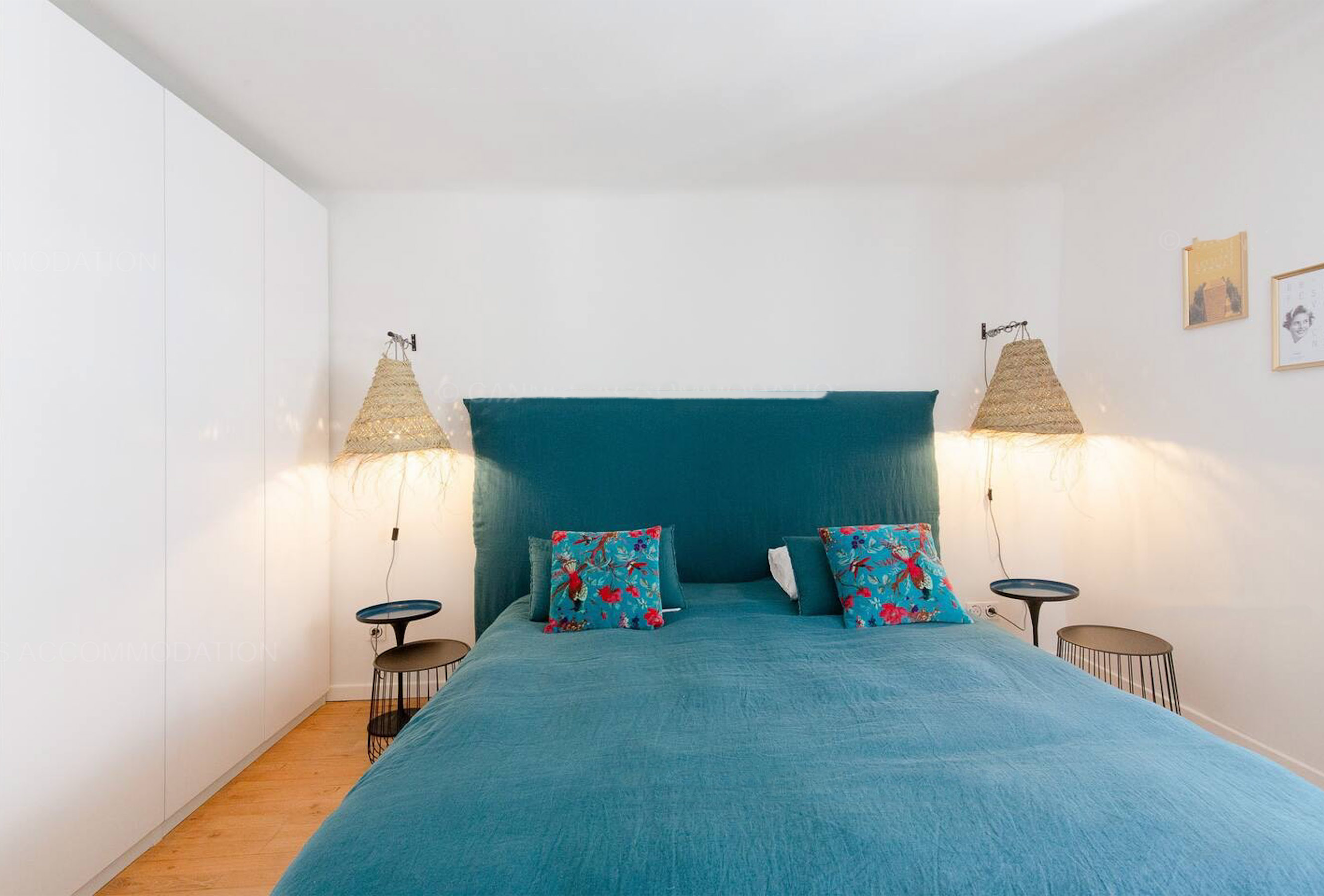 You are on a lovely pedestrian street only a couple of steps away from a large choice of nice boutiques and cafés. The bourgeois style building is well- maintained.You will find this pretty one bedroom apartment on the third floor and welcomes you in a warm modern atmosphere. The living-room, bright and roomy, is very pleasant lo live in. You can enjoy nice meals around the round table or relax in the comfortable sofa bed. The bedroom is cosy and something exotic is coveyed thanks to its raffia lamps. In the bedroom, the raffia lamps and the emerald green linen fabric used for the curtains and the bed create a cosy and cocooning atmosphere. It features two single beds that we can put together according to your needs. The bathroom is resolutely modern. It has a nice Italian style shower and toilets. The small kitchen all in white is simply equipped. It is functional but it does not have an oven or a freezer.