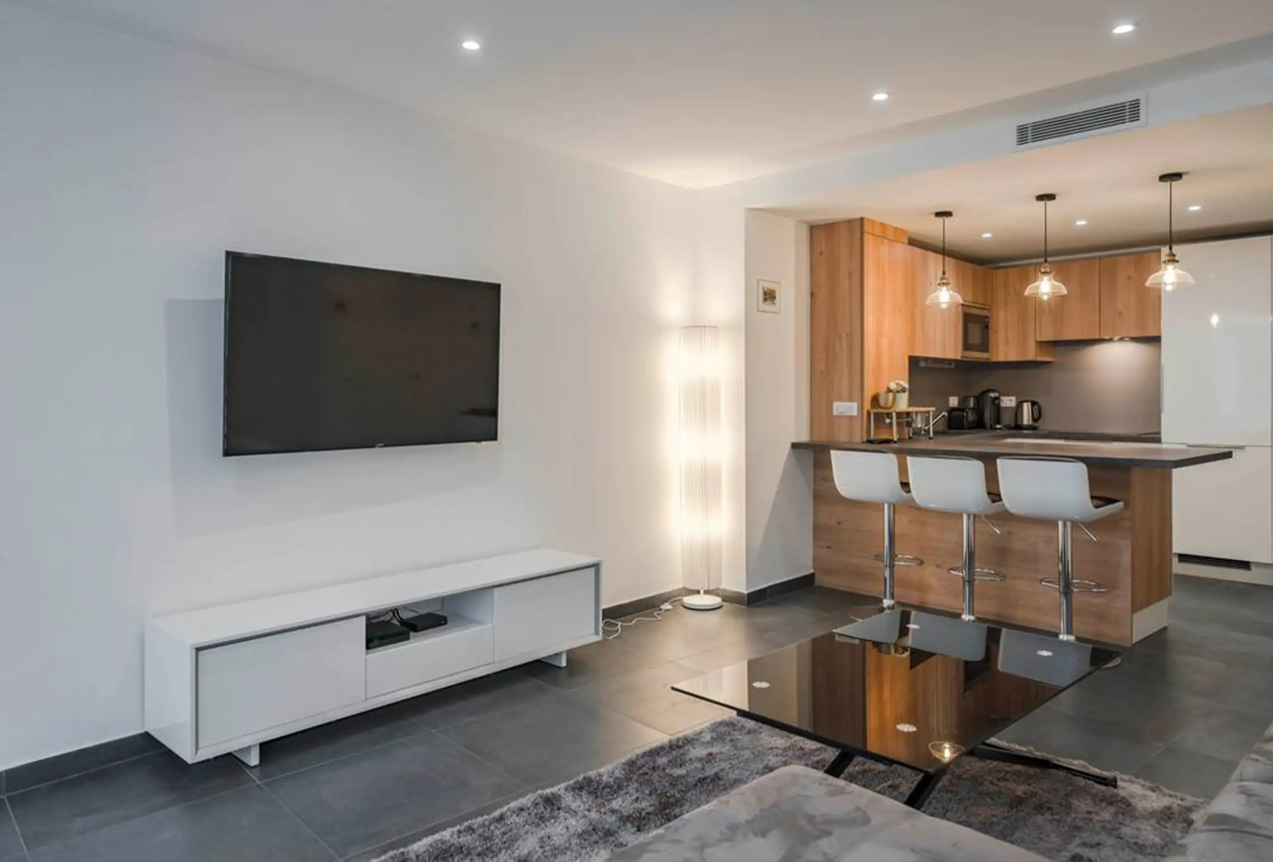This brand new one bedroom can welcome up to 4 guests in 3 different beds. It is ideally located 15 seconds walk to the Croisette, 2min walk to the Carlton and 13min walk to the Palais. Enjoy the central location and the nice terrace!