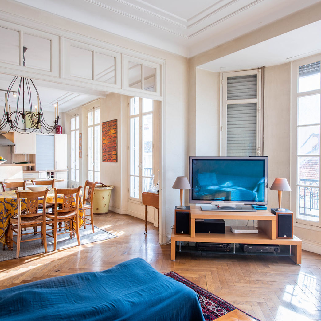 Charming and spacious 3 bedrooms apartment with 2 bathrooms located in a building at the fourth floor . There is 4 single beds and 1 double bed. Mobile A/C in the living room.
