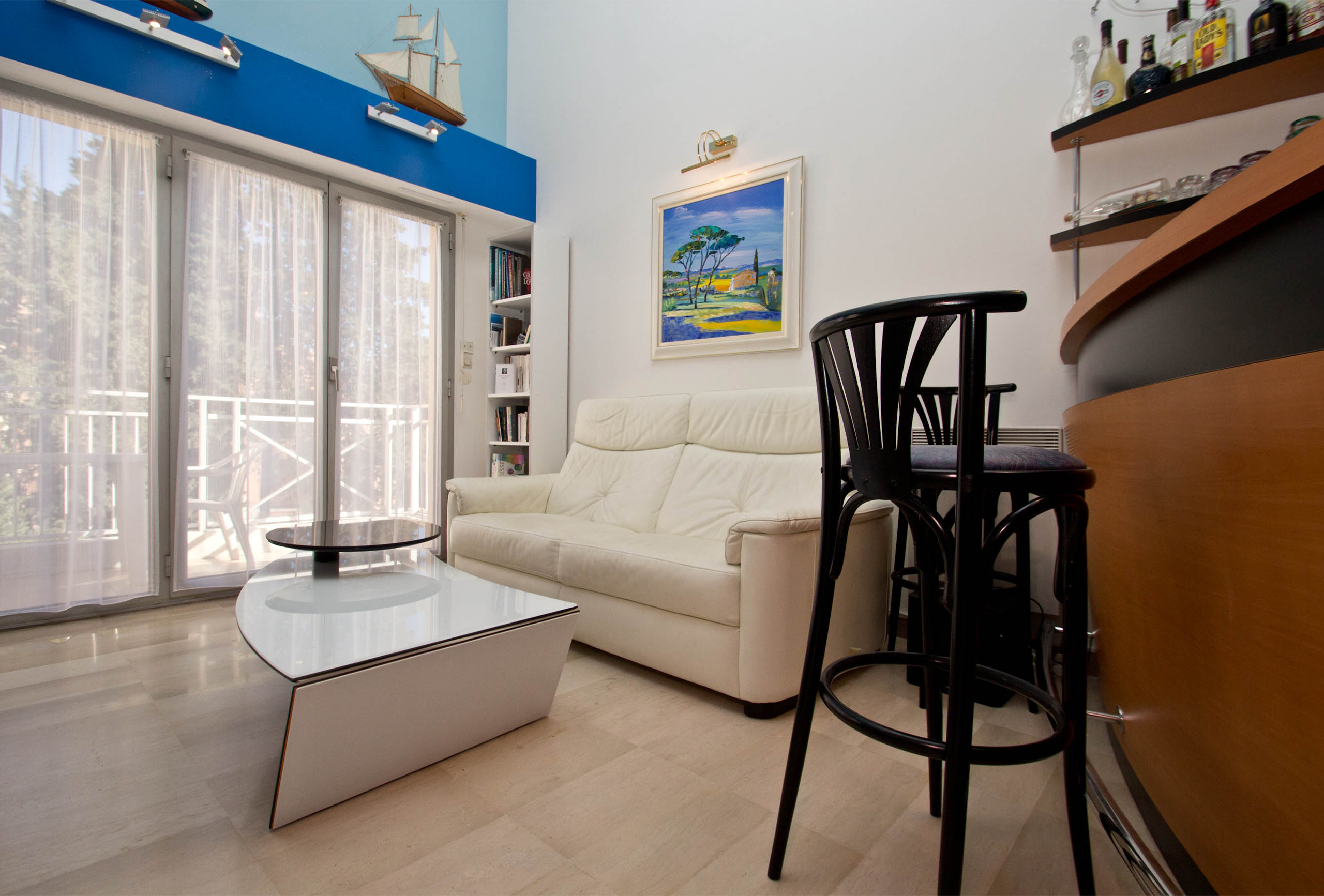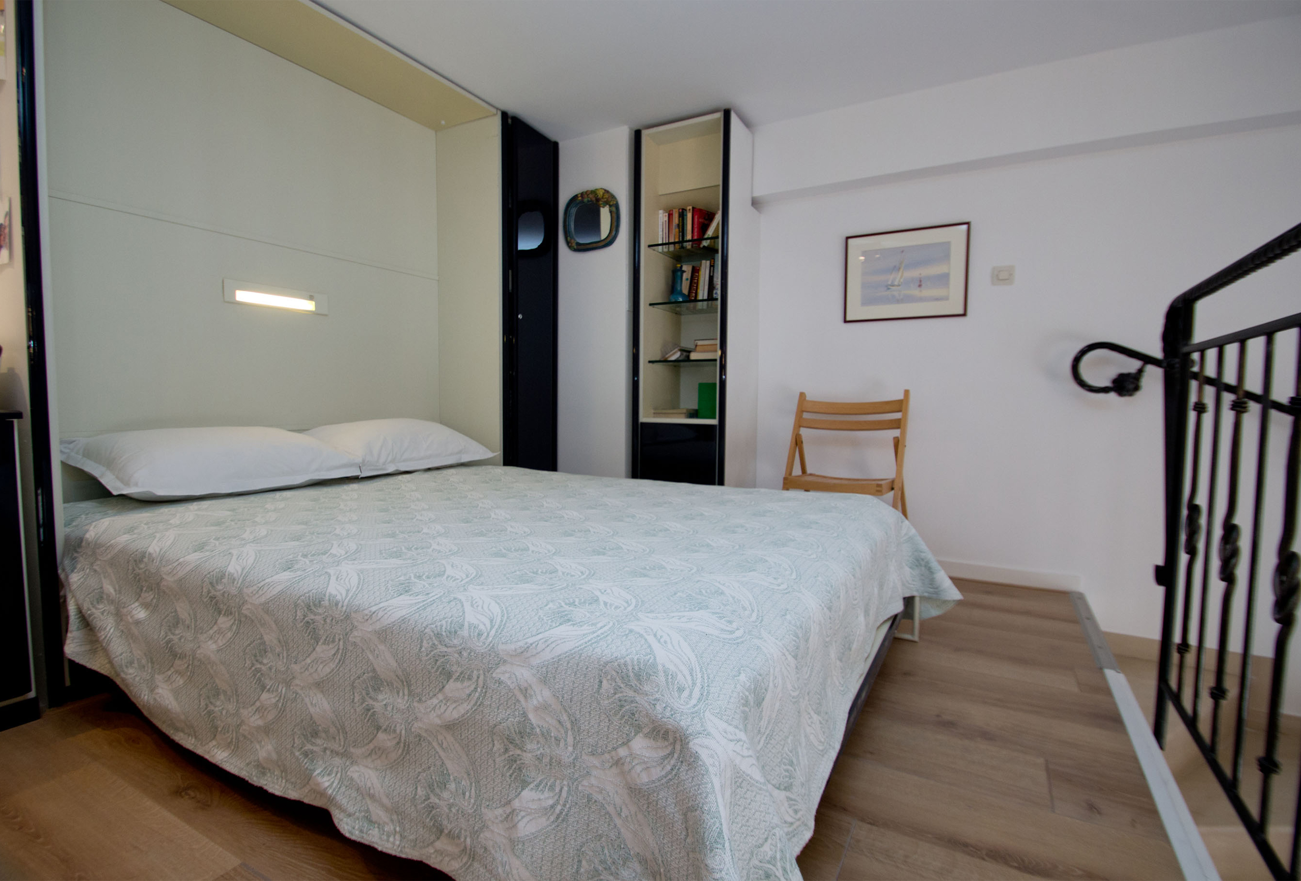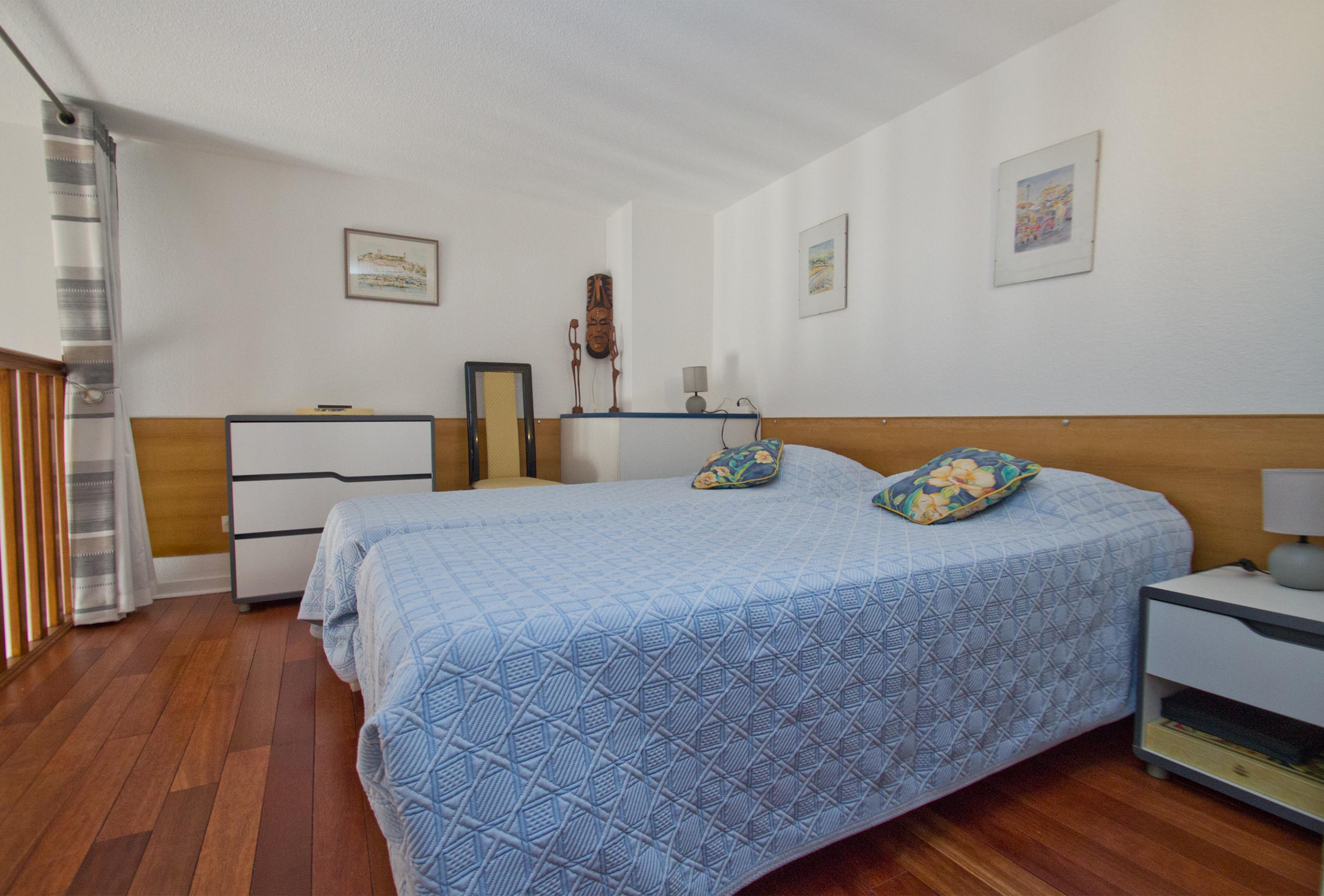 A first bedroom with two single beds that we can assemble into a double if you wish. A second bedroom with mezzanine. The lower level features a double bed. The upper level features two single beds that we can assemble as a double. The mezzanine opens onto the bedroom. You will also find a large mezzanine with a double bed in the living-room. The mezzanine is open. For your comfort, two bathrooms are available. The first one has a shower. The second one offer a bath tub and toilets. Some independent toilets are also available. You will enjoy your stay in Cannes in this modern and well equipped apartment.