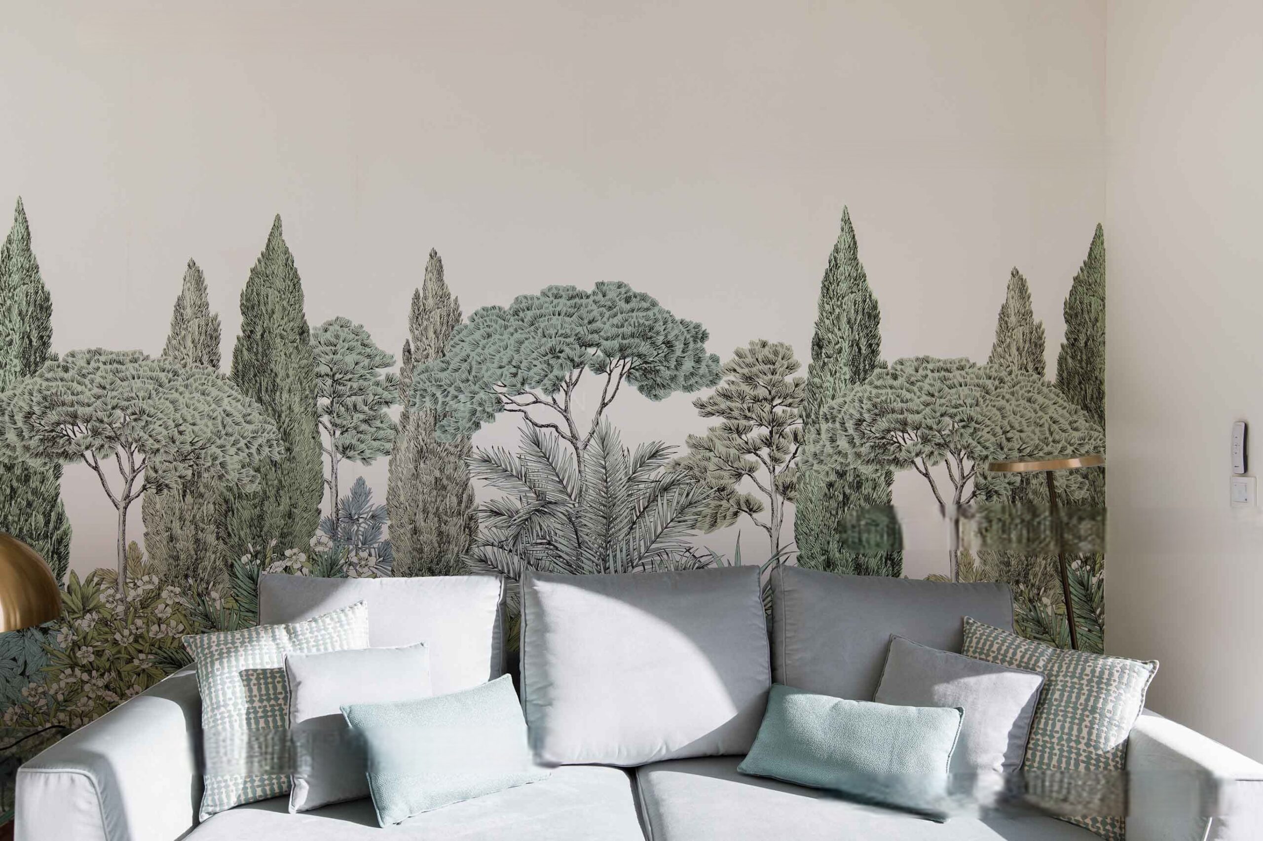 The bright and airy living room is filled with natural light and opens onto a terrace offering breathtaking sea views. From here, you can admire the Esterel Mountains to one side and the Lérins Islands to the other.