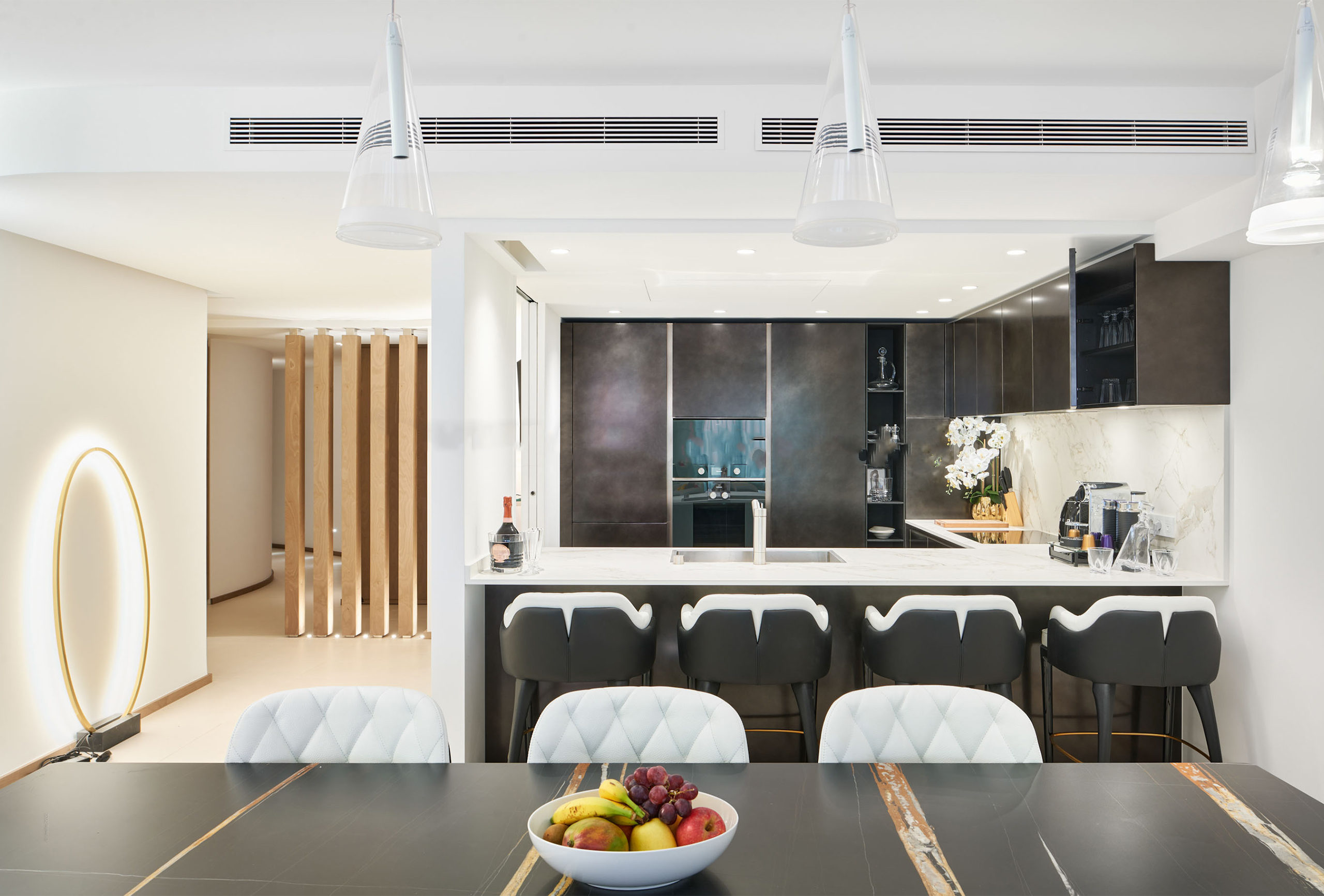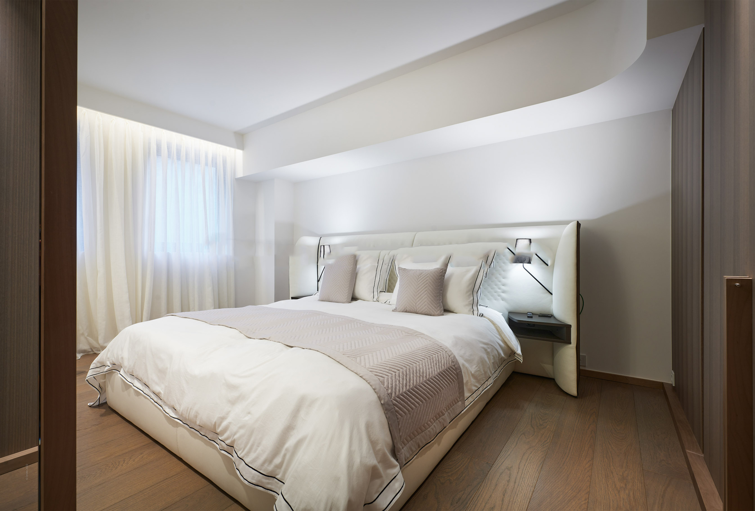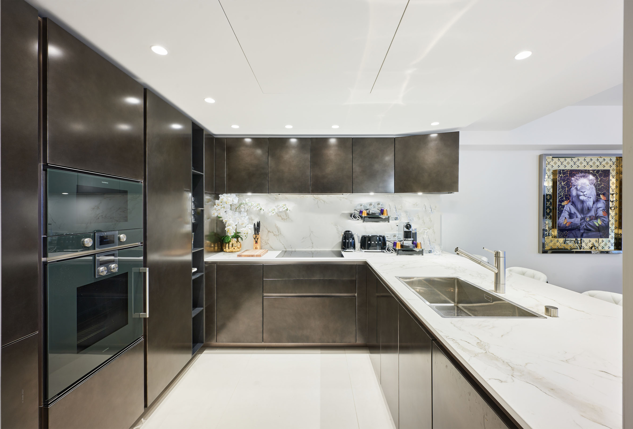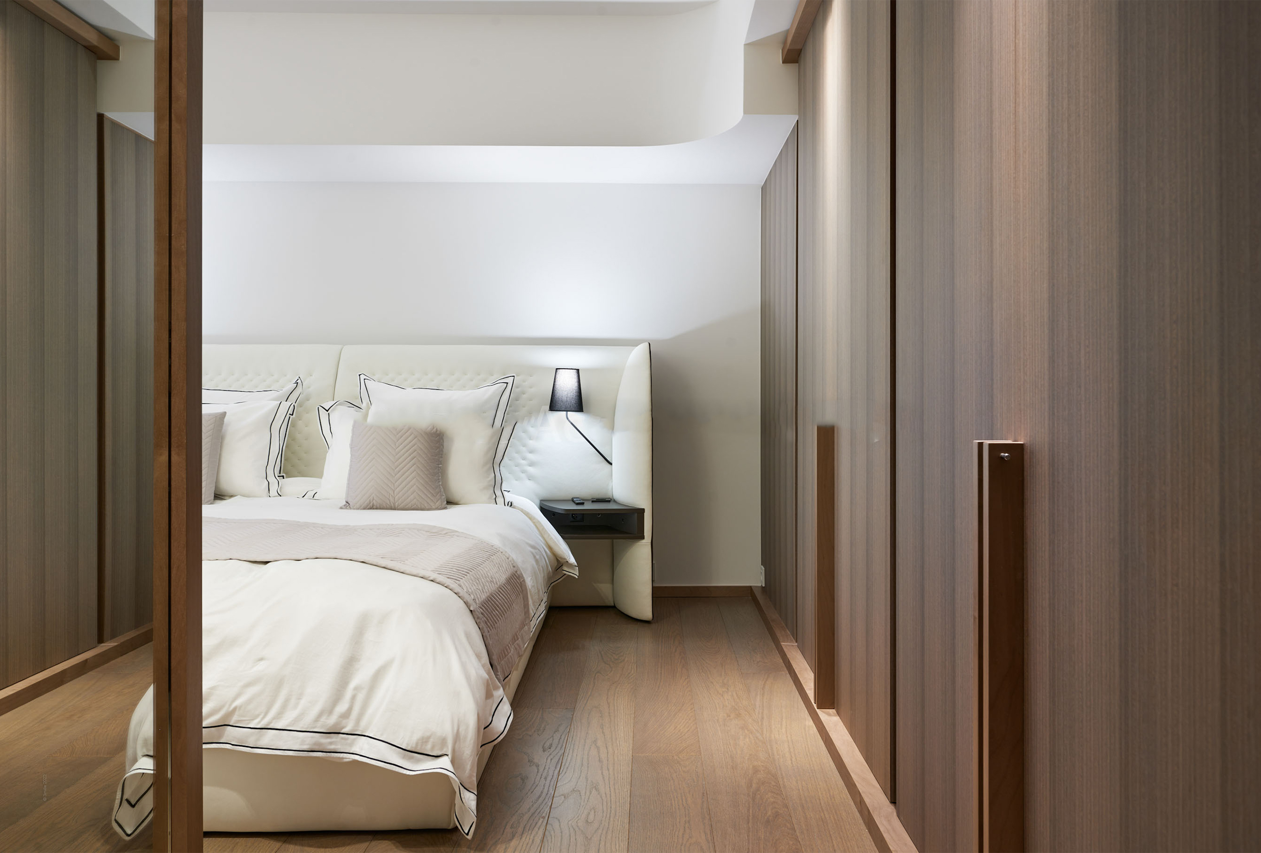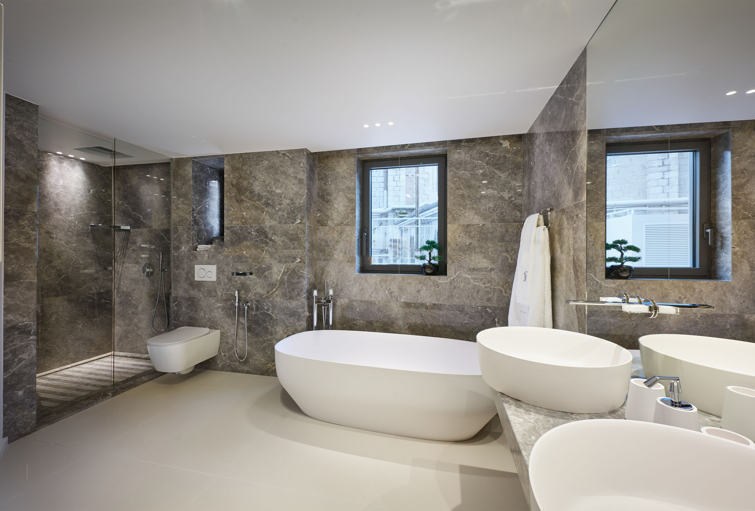 You will find yourself facing the Palais des Festivals, on the 2nd floor of the brand new First Croisette residence, with its sleek and contemporary design, above the impressive Dolce Gabbana boutique. The living room offers a relaxing space with a large sofa and a large table that can be used for meals and meetings. Its bay window opens onto a terrace with a direct view of the Croisette and the Palais des Festivals. The american kitchen, fully equipped and carefully designed, opens onto the living room and benefits from its brightness. The first bedroom, quiet and uncluttered, has a double bed and a very private bathroom with bath, shower and toilet. The second bedroom, equally refined, has a double bed and also has its adjoining bathroom with shower and toilet.