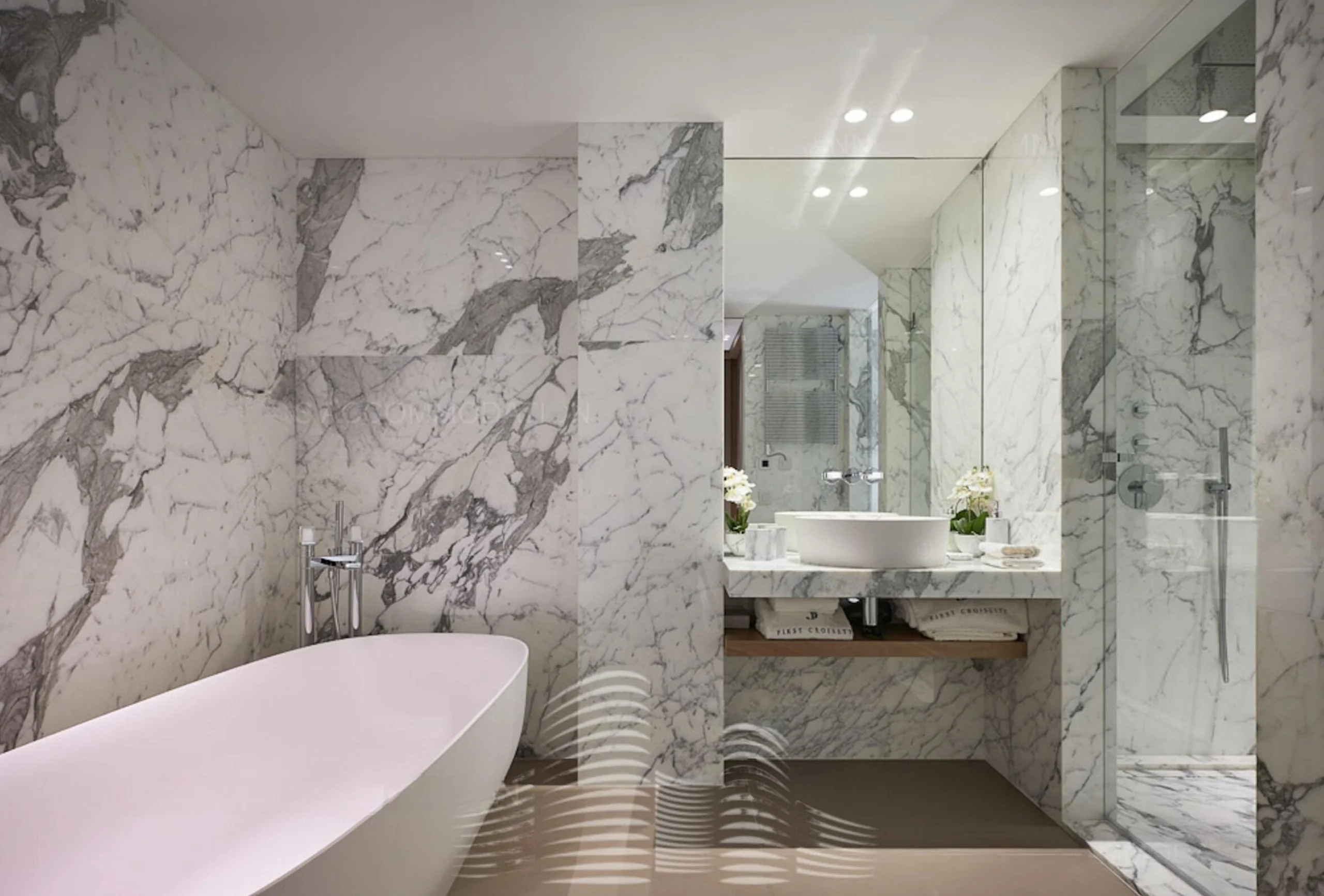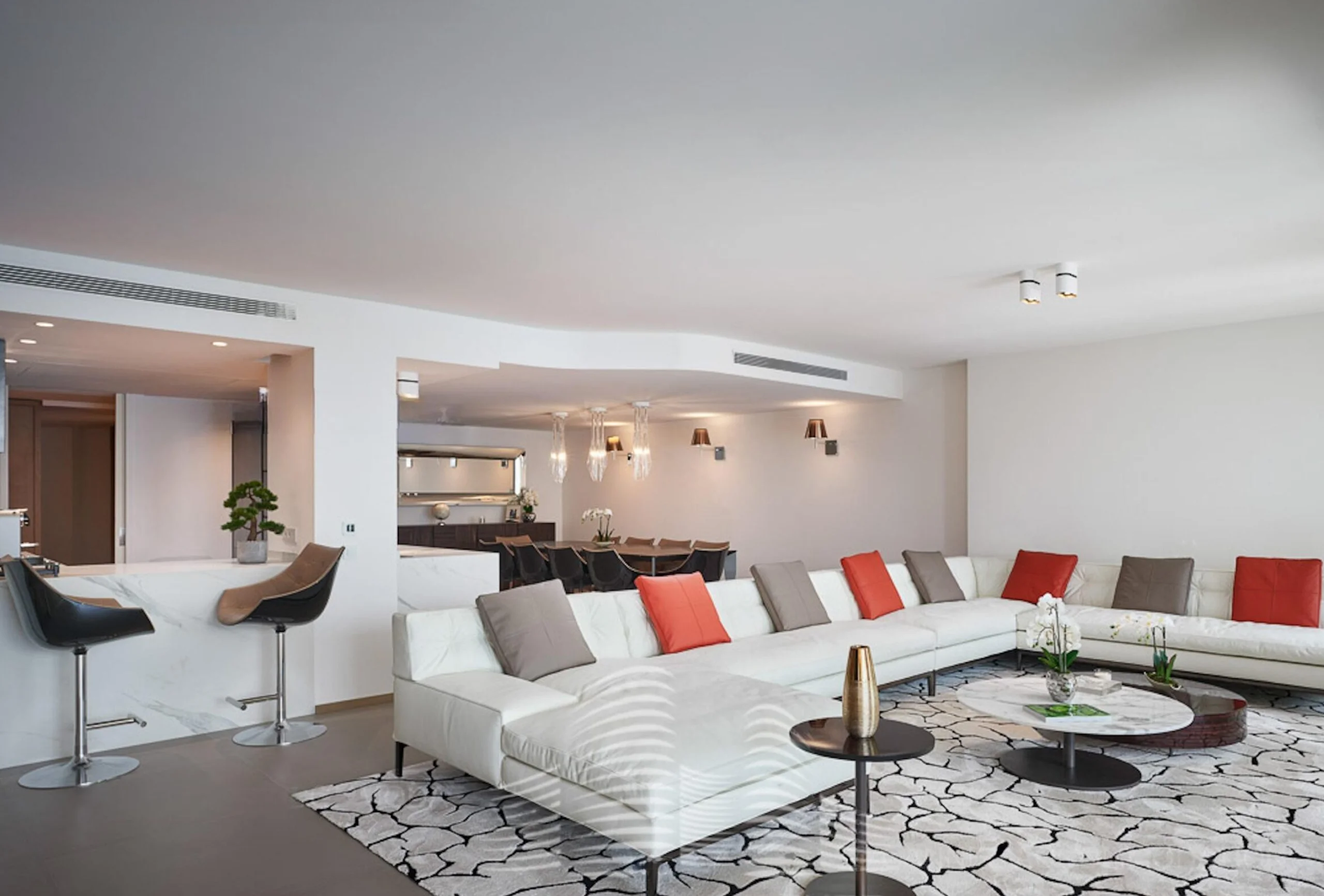 This 174m2 apartment benefits from an exceptional location, facing the Palais des Festivals, on the 6th floor of the brand new First Croisette residence, with a pure and resolutely contemporary design, above the impressive Dolce Gabbana boutique. In addition, there are three rooms, respectively 18m2, 14m2 and 27m2, quiet and brand new. Three bathrooms, one with shower and toilet and two with bath, shower and toilet complete the set. A separate toilet is also available. You will find a large reception room of nearly 80m2, very bright thanks to the bay windows that let in all the light and open onto a 23m terrace with a direct view of the Croisette and the Palais des Festivals.