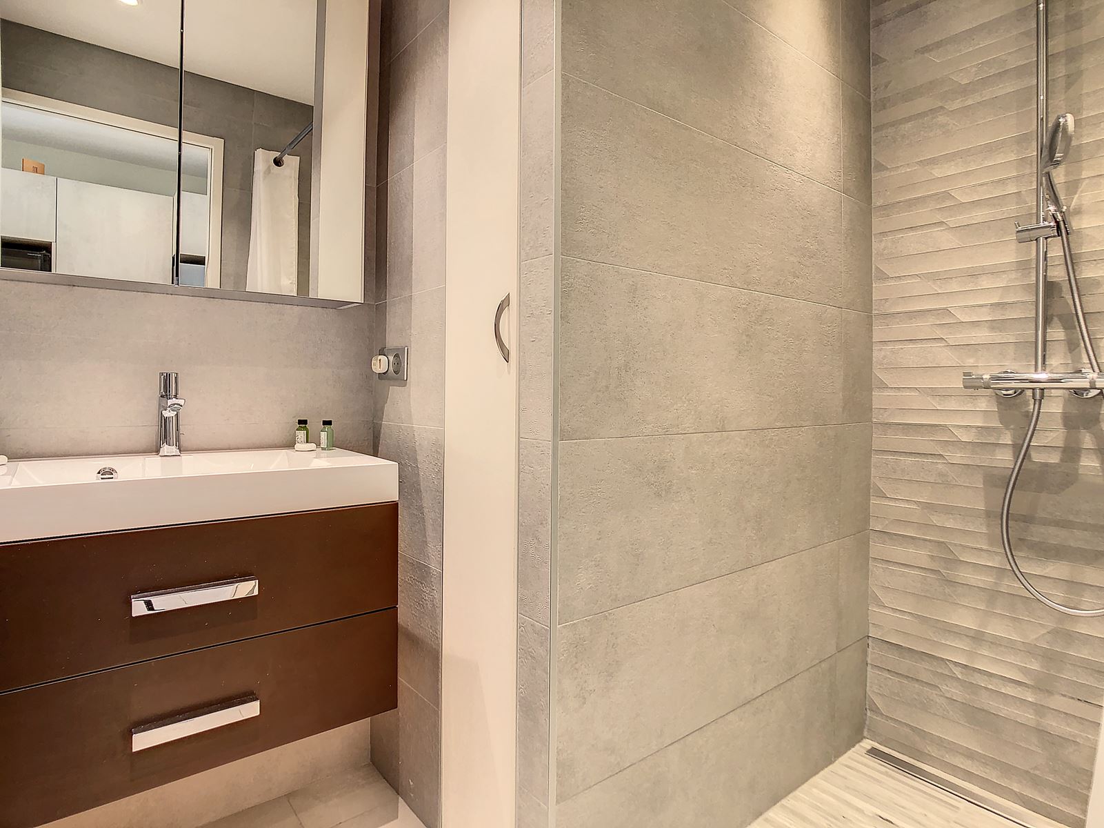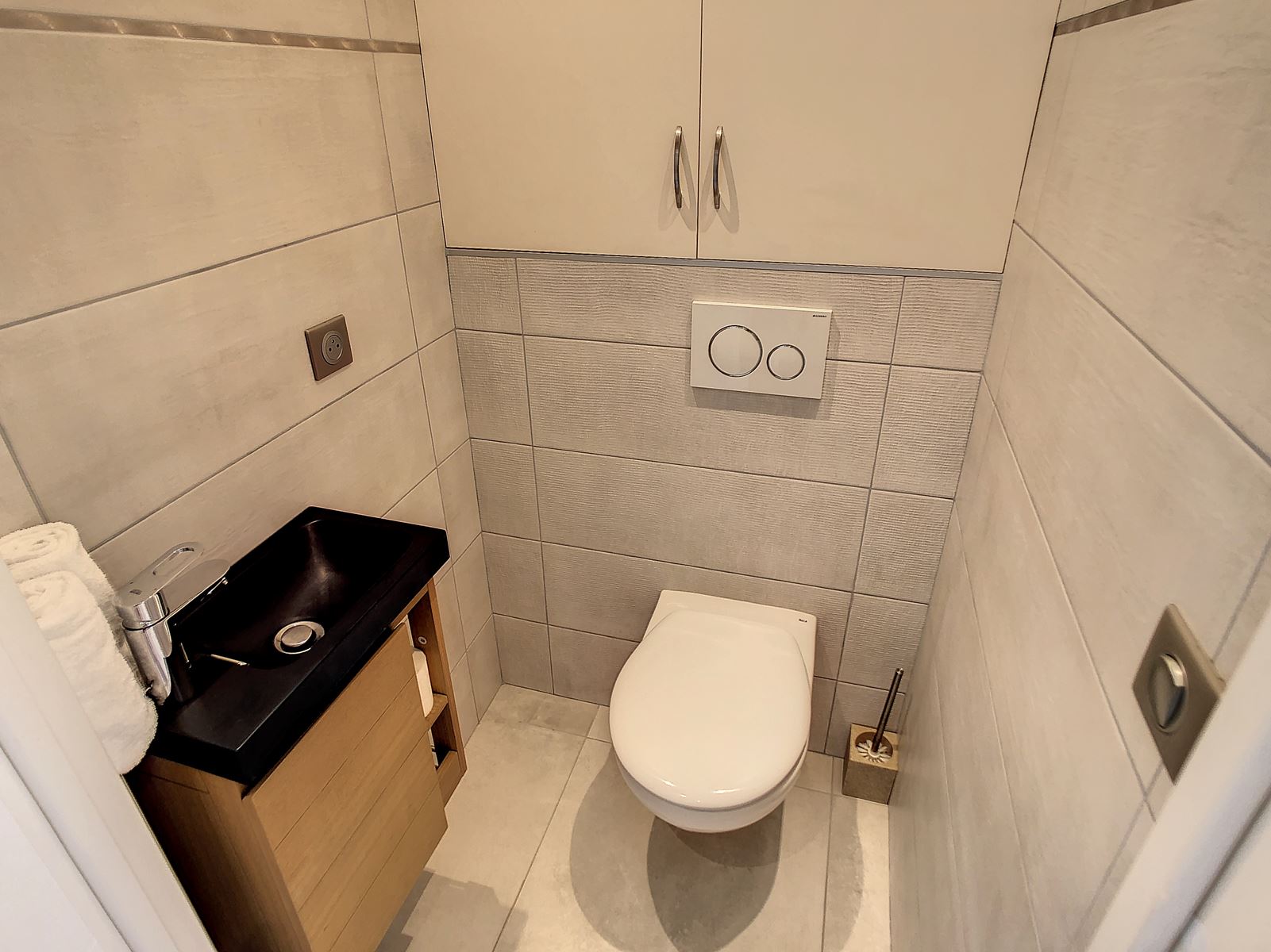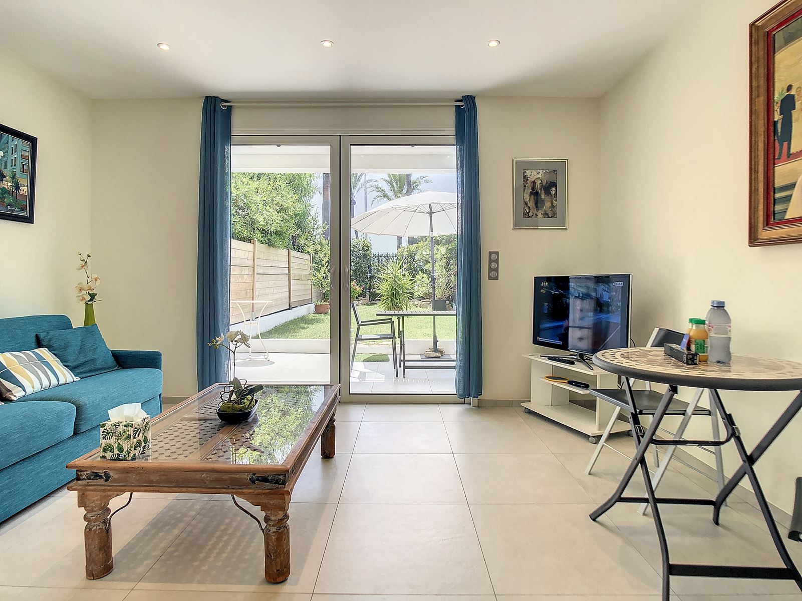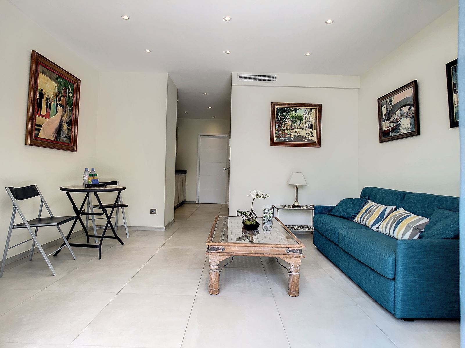 The serene bedroom includes twin beds, and the stylish bathroom features a walk-in shower. A separate guest toilet, air conditioning throughout, and a safe add extra comfort and peace of mind. Perfectly situated for both relaxation and exploration, this apartment offers an exceptional stay in the heart of Cannes.