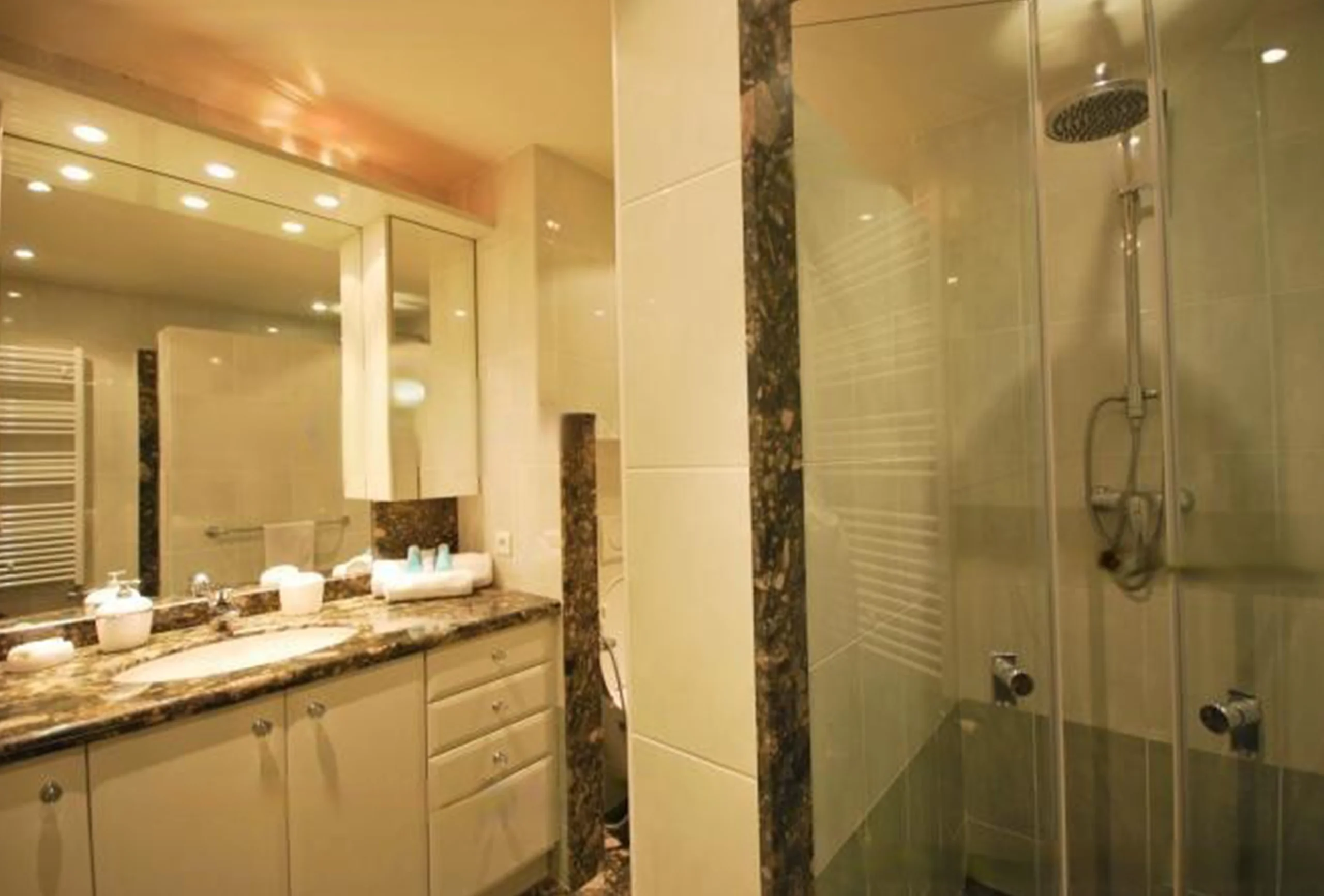 Few steps away from the Croisette, nested on the 6th floor of a high-end residence, this one bedroom apartment welcomes you in a classic elegant decor. The living-room is roomy & features a sofa bed. The bedroom has a double bed. The bathroom provides a shower and toilets. The open kitchen is quite well equipped. This accommodation will guaranty you a serene stay in Cannes.