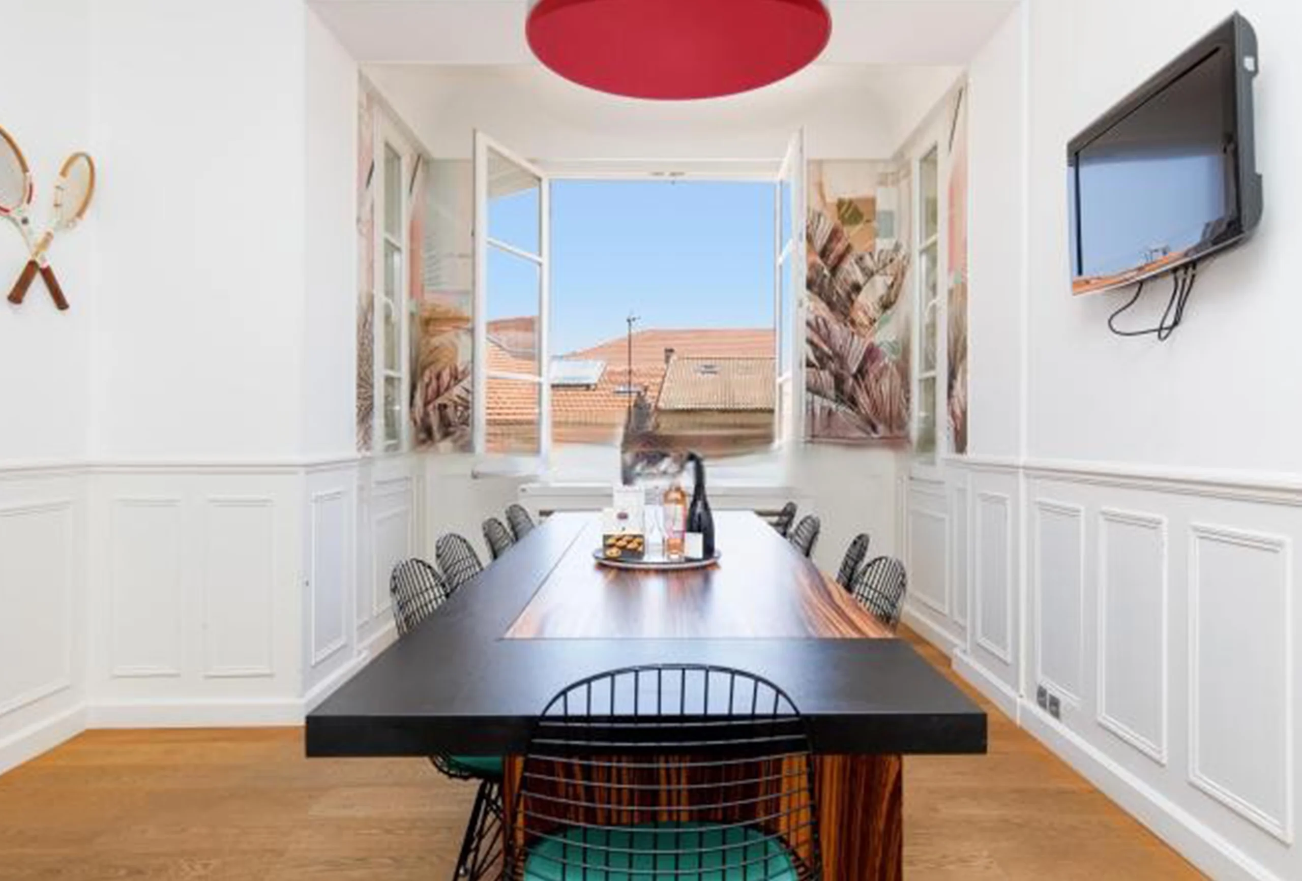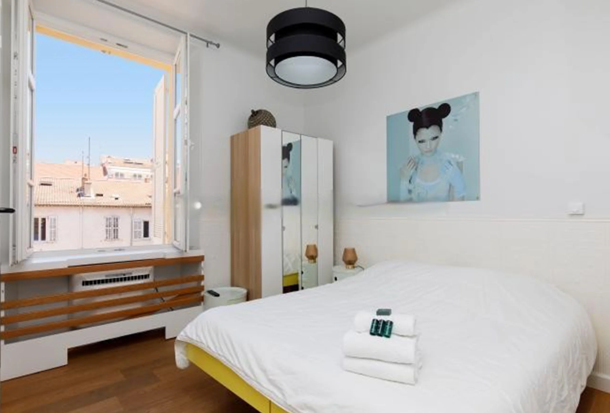 This spacious home benefits from an excellent location a couple of steps away only from the convention center. Nested on the third floor with lift of bourgeois style building, the apartment offers 130m² of art and design. The vast main room is organized in two areas: a very POP living area with TV on one side and a dining area for 8 on the other. The four bedrooms have each two single beds that we can combine into a double if you wish. All the bedrooms offers en suite shower room with toilets. The sophisticated kitchen, all in white, is fully equipped. You will be seduced by this unique and roomy apartment. It is the place to be for all the art and design lovers !