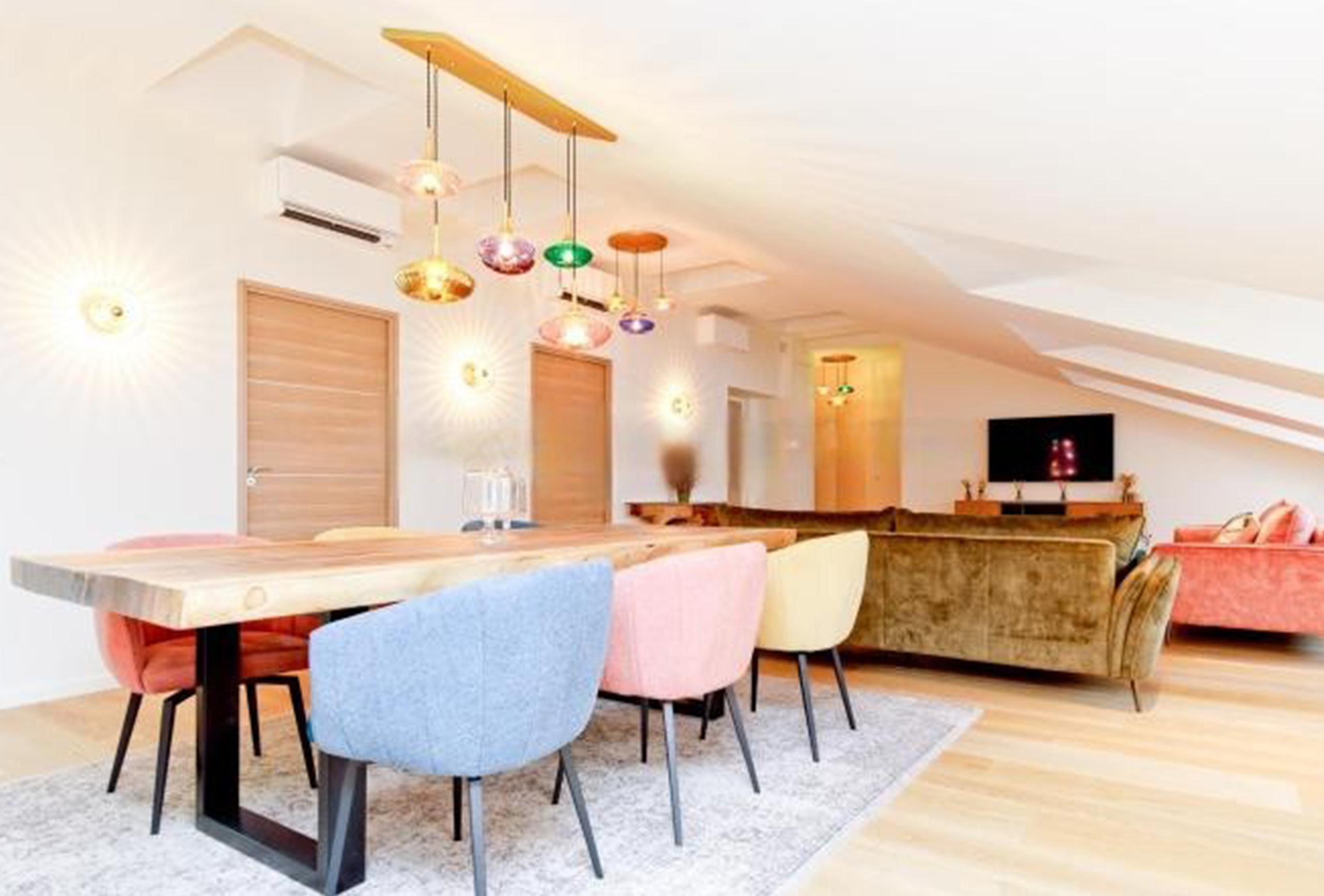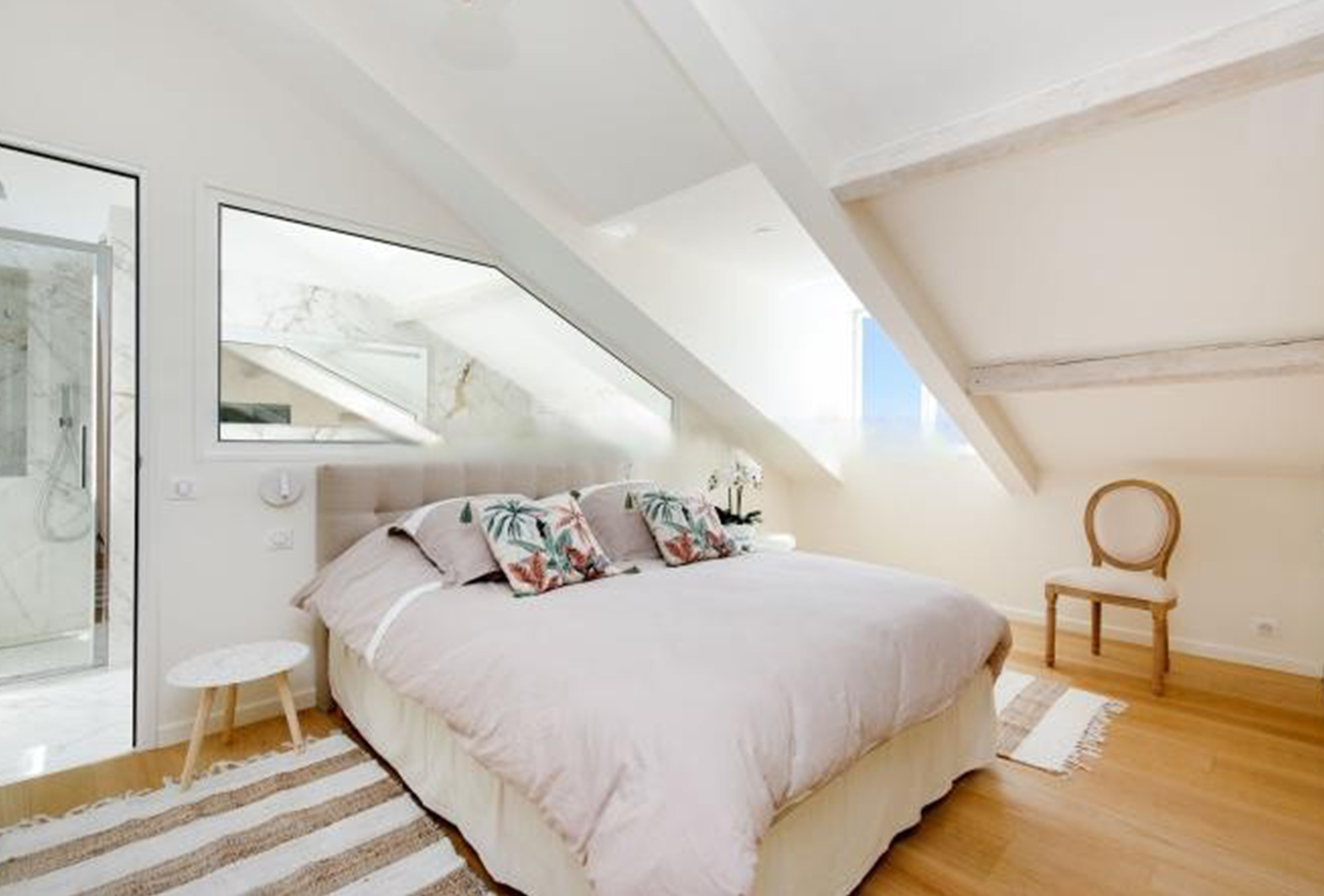 You are located on Rue d’Antibes, by the Rond-Point Duboys d’Angers, just a twelve-minute walk away to the Palais des Festivals. This stunning three-bedroom apartment is nestled on the fourth and last floor of a bourgeois building with elevator. It provides you with high-end facilities as well as a refined contemporary decor and furnishing. The huge main room is renovated with neutral colors and decorated with colourful touches that boosts the whole atmosphere and make this this space both warm and welcoming.The large table can comfortably welcome up to eight guests. You will as well be able to fully enjoy the lounge area and chill out. The kitchen is extremely well-equipped. For your utmost comfort, each bedroom has its own adjoining bathroom. Each bedroom offers a comfortable double bed. Guest restrooms are also available.