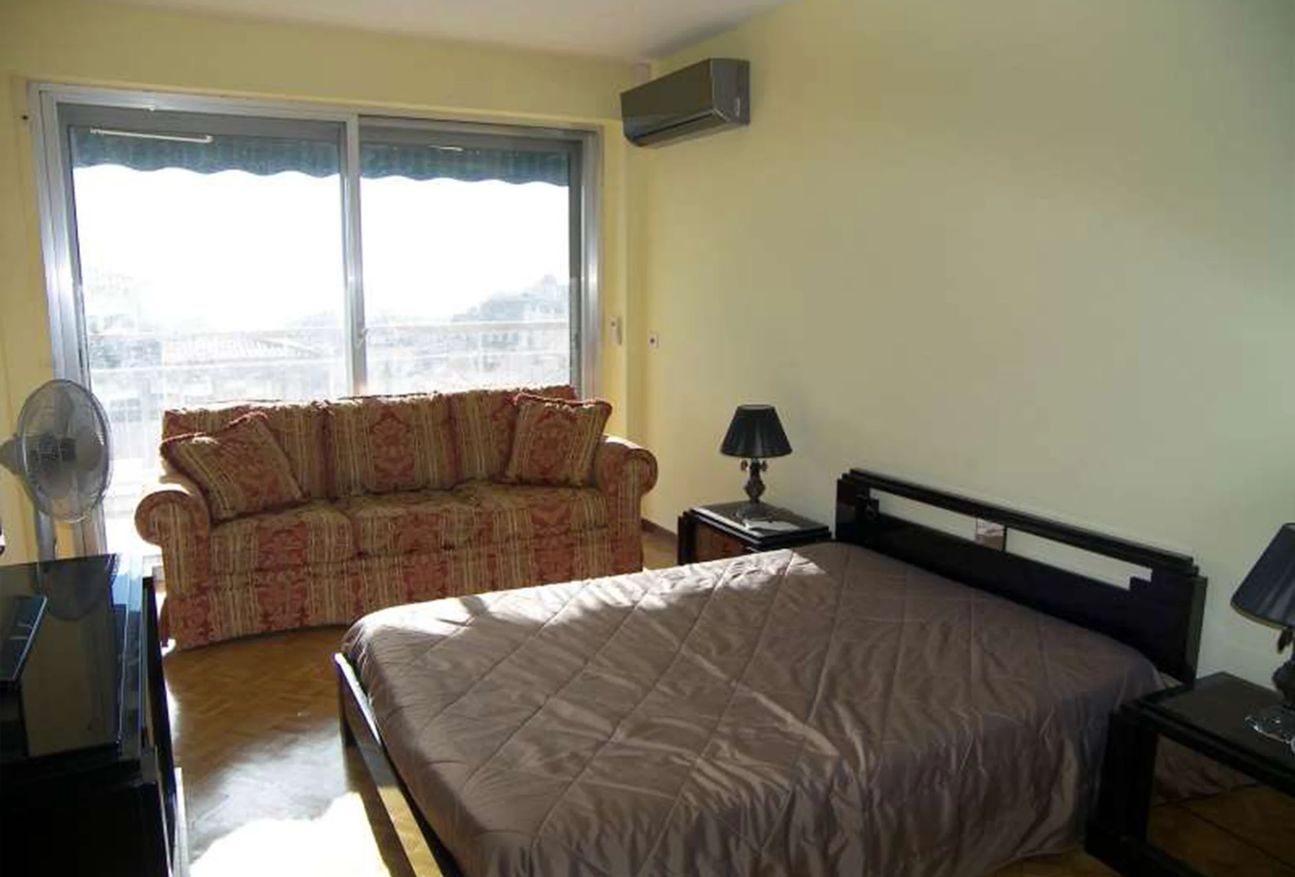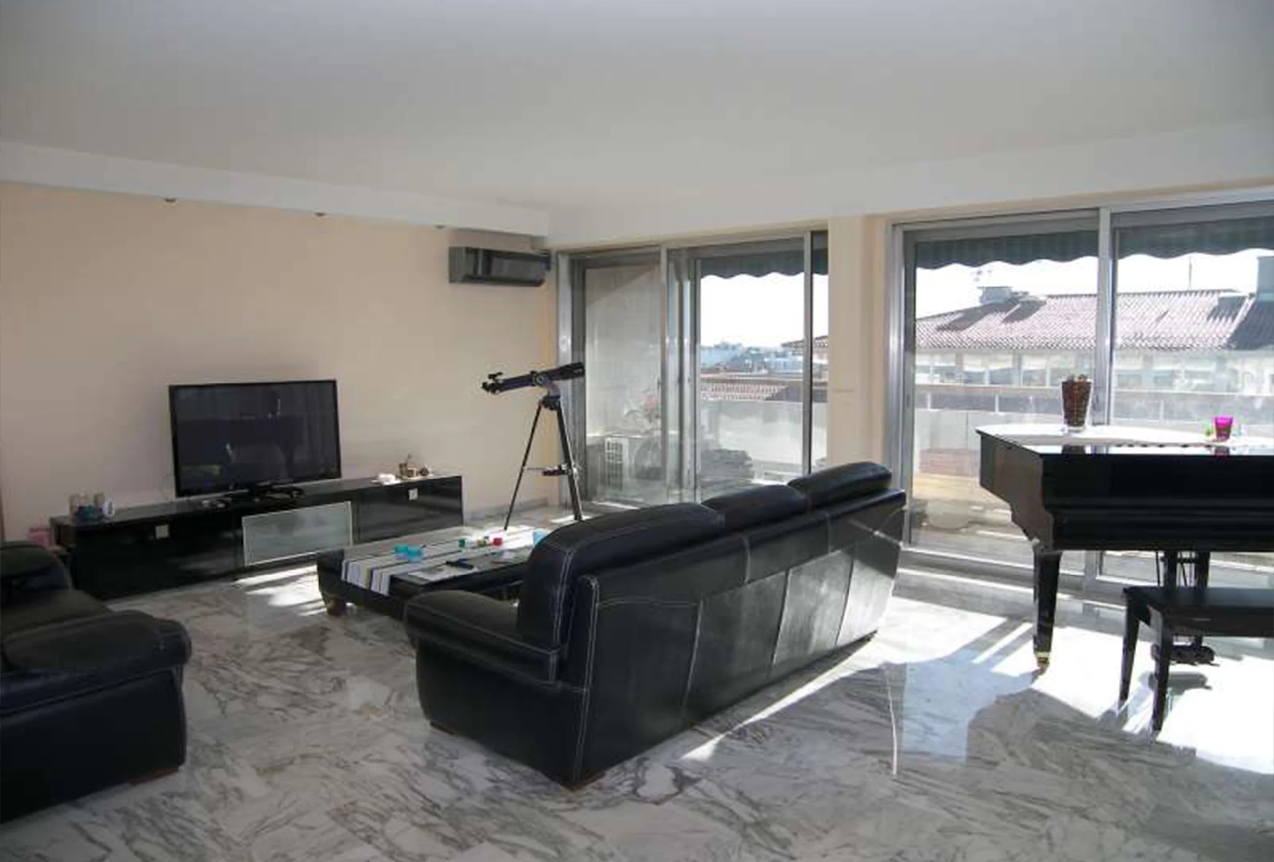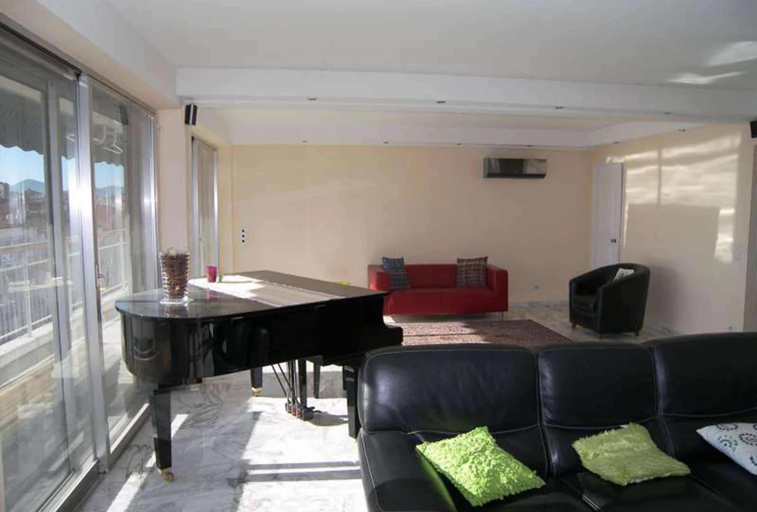Very nice 160 m² three-bedroom apartment. Located on high floor, residence with lift.. Each bedroom has a double bed + one single bed. There is one bathroom. Very spacious living room (60m²) opening onto a large terrace (18m²) facing south. Superb seaviews.