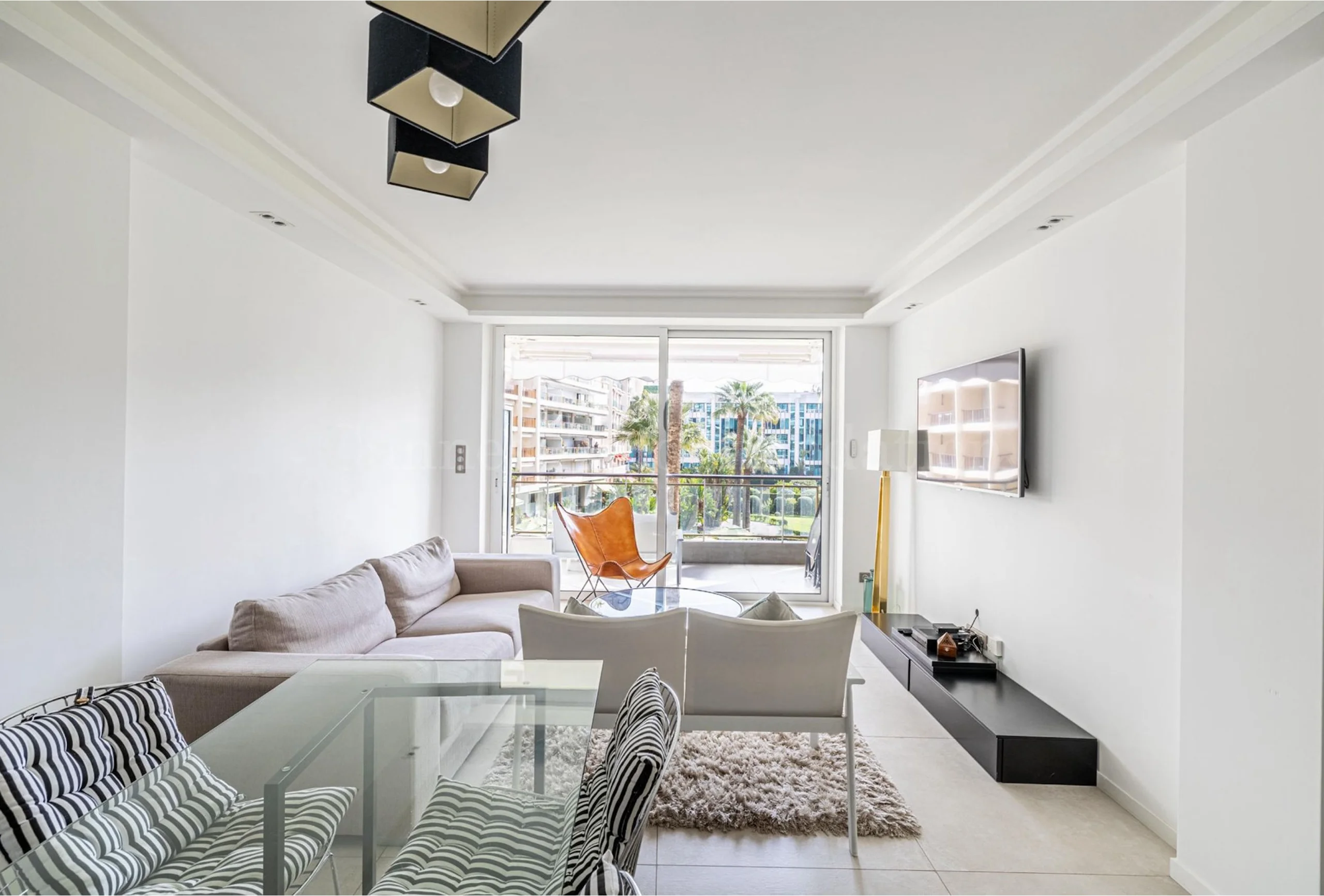 The fully equipped open kitchen allows you to prepare… delicious meal with fresh local produce, which you can enjoy around the elegant dining table, with the backdrop of the gentle Mediterranean breezes filtering through the open windows. But the real gem of this apartment is its private terrace. Nestled in lush greenery, it offers an exclusive outdoor space where you can relax in complete tranquility, far from the hustle and bustle of the city. In addition, its privileged location just 6 minutes walk from the Palais des Festivals makes it the ideal base for those attending renowned events or festivals. After a busy day, come home to this haven of peace and let yourself be lulled by the calm of the night. Whether you are in Cannes for business or pleasure, this luxury apartment offers the perfect setting for an unforgettable getaway on the French Riviera.