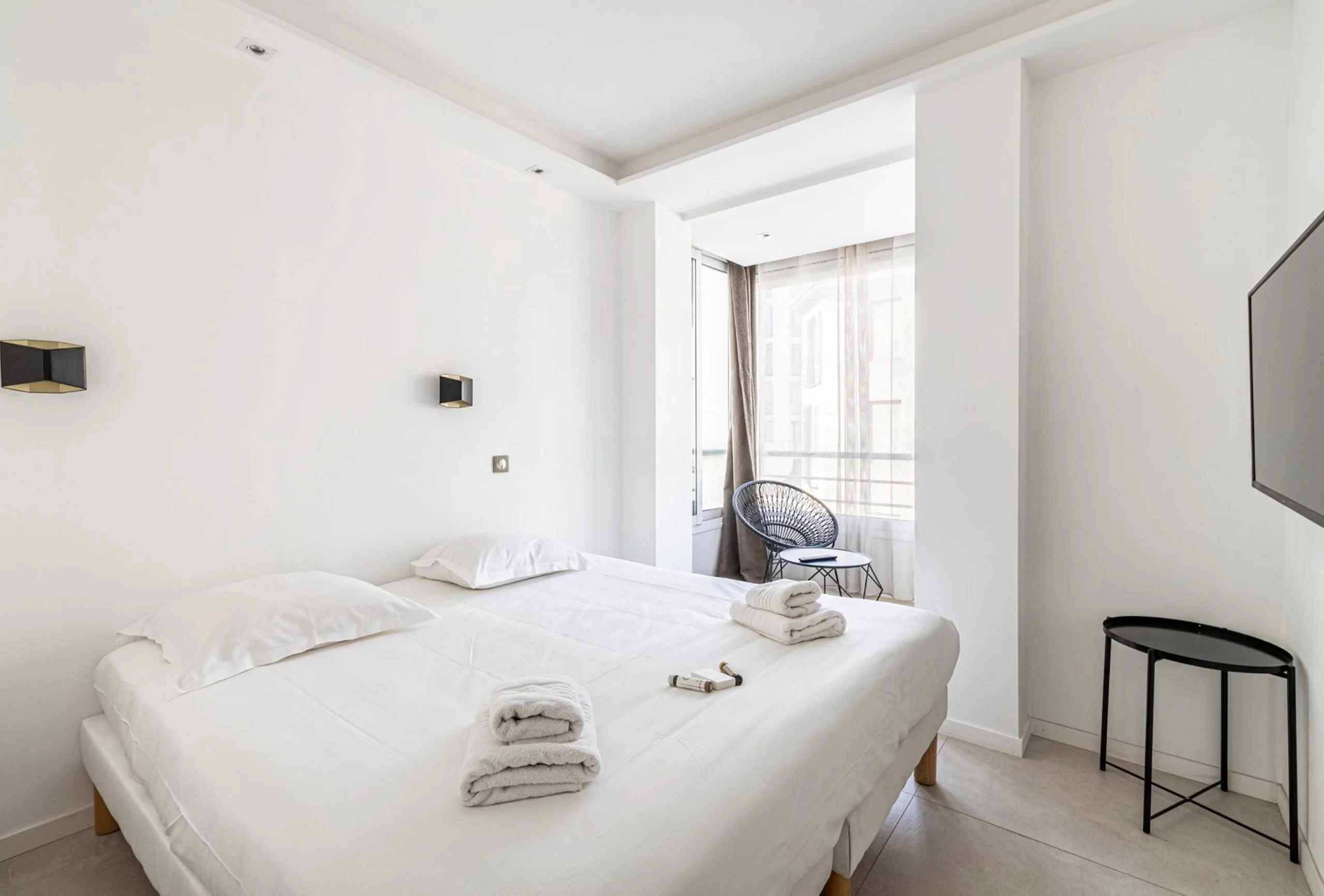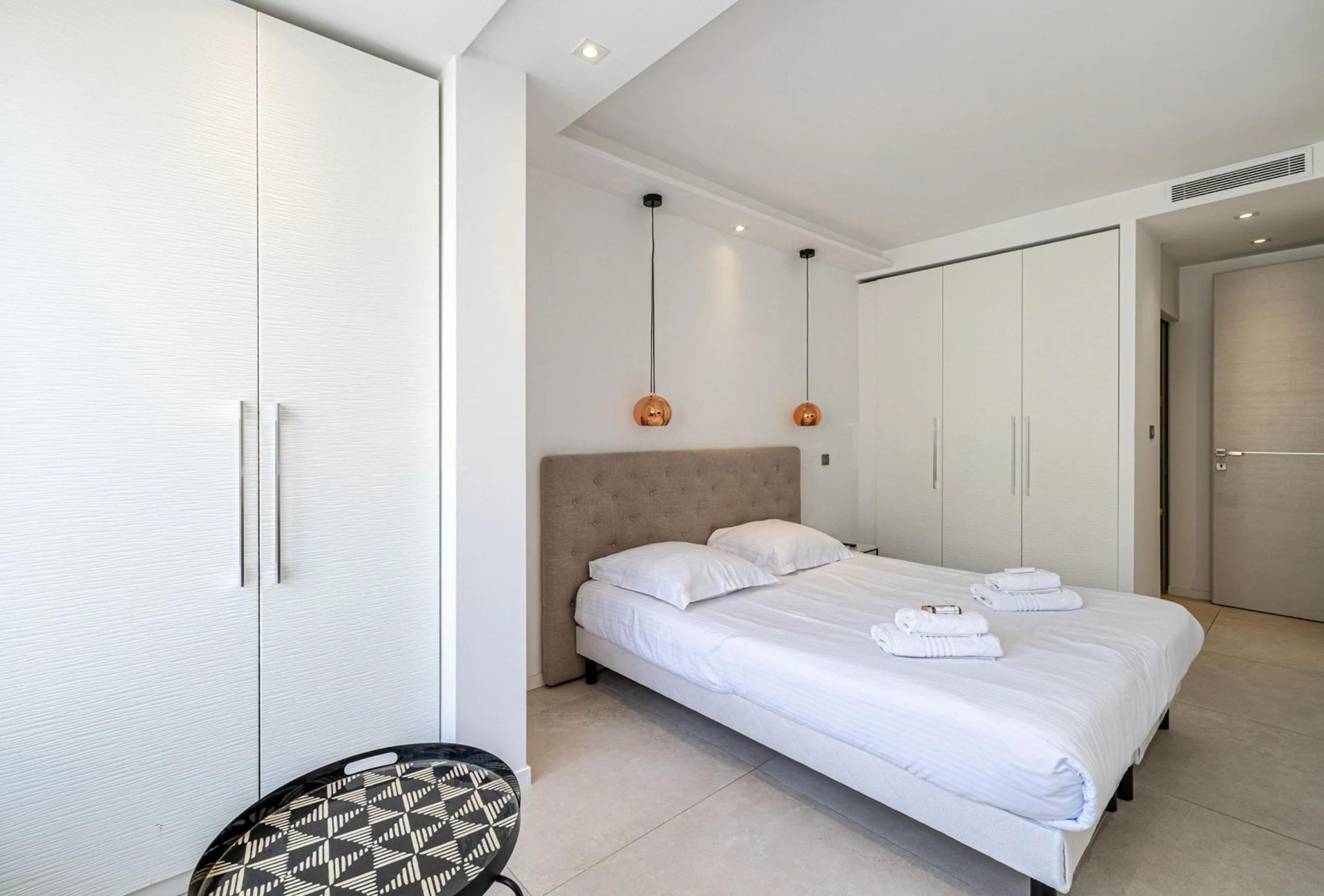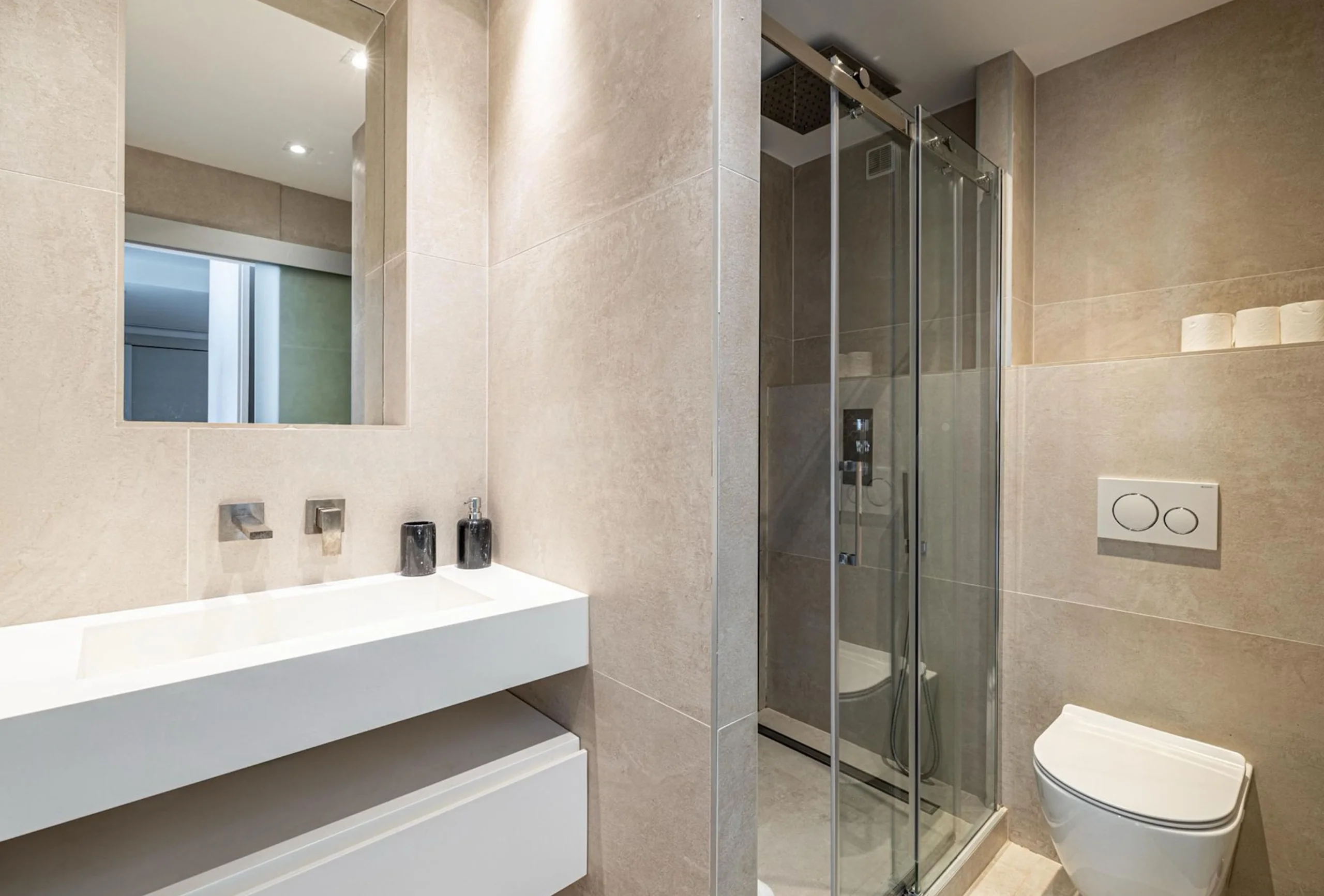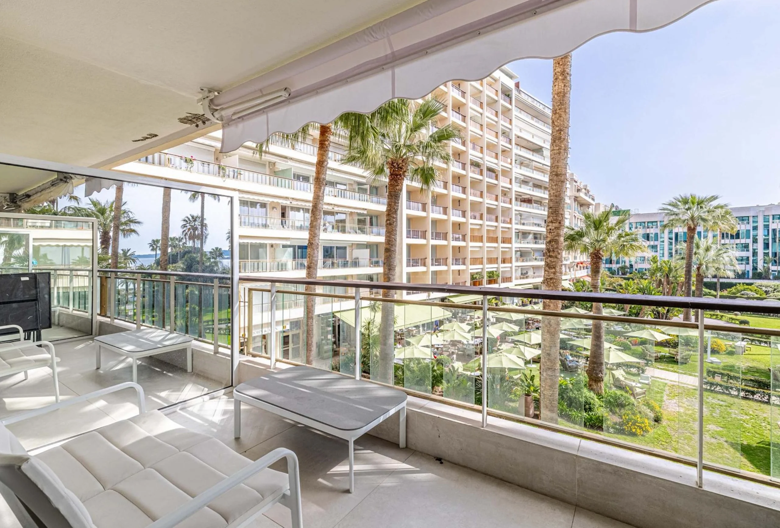 This sumptuous high standard apartment, nestled in the heart of the city of Cannes, on the prestigious Côte d’Azur. From the moment you walk through the door, you are greeted by a luxurious and elegant space, where every detail has been carefully considered to create an atmosphere of comfort and refinement. The two bedrooms, each with their own en-suite bathroom, offer an intimate and tranquil resting space. The premium soft beds ensure a restful nights sleep, while the luxurious bathrooms feature rain showers for the ultimate relaxation experience. The spacious and bright living room is the ideal place to gather with family or friends. The large comfortable sofas invite you to relax, while the large bay windows offer a breathtaking view of the greenery of the gardens of the neighboring Grand Hôtel.