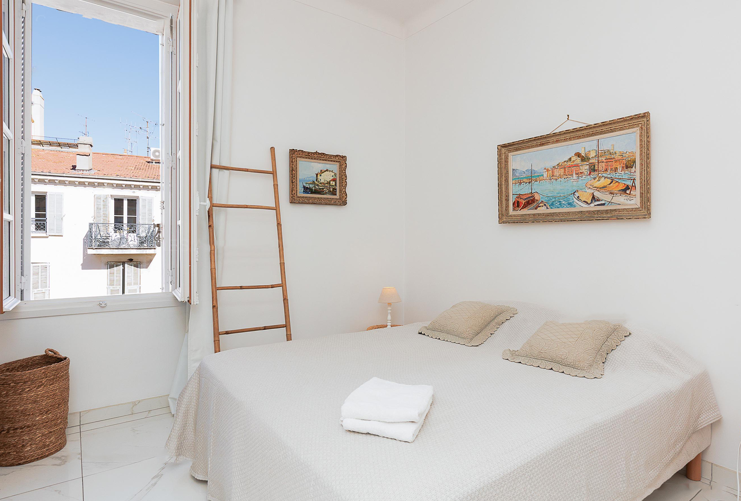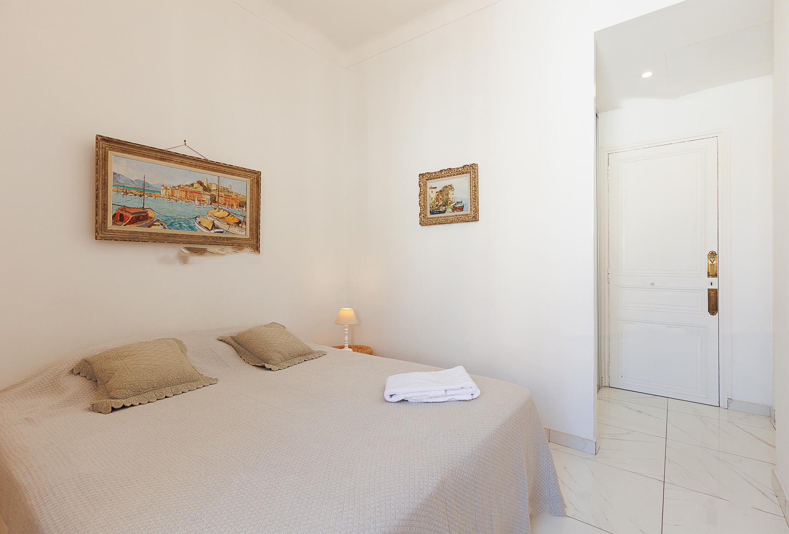 Nestled in the heart of Cannes, just steps from the iconic Croisette and a short 14-minute walk to the Palais des Festivals, this elegant two-bedroom apartment offers an ideal blend of comfort and convenience. Situated on the 5th floor of a secure building with an elevator, the residence provides a serene retreat amidst the city’s vibrant energy. The apartment boasts two well-appointed bedrooms, each furnished with a double bed. One bedroom is notably larger, providing additional space for relaxation. The modern bathroom includes a sleek shower, and there is a separate toilet for added convenience.