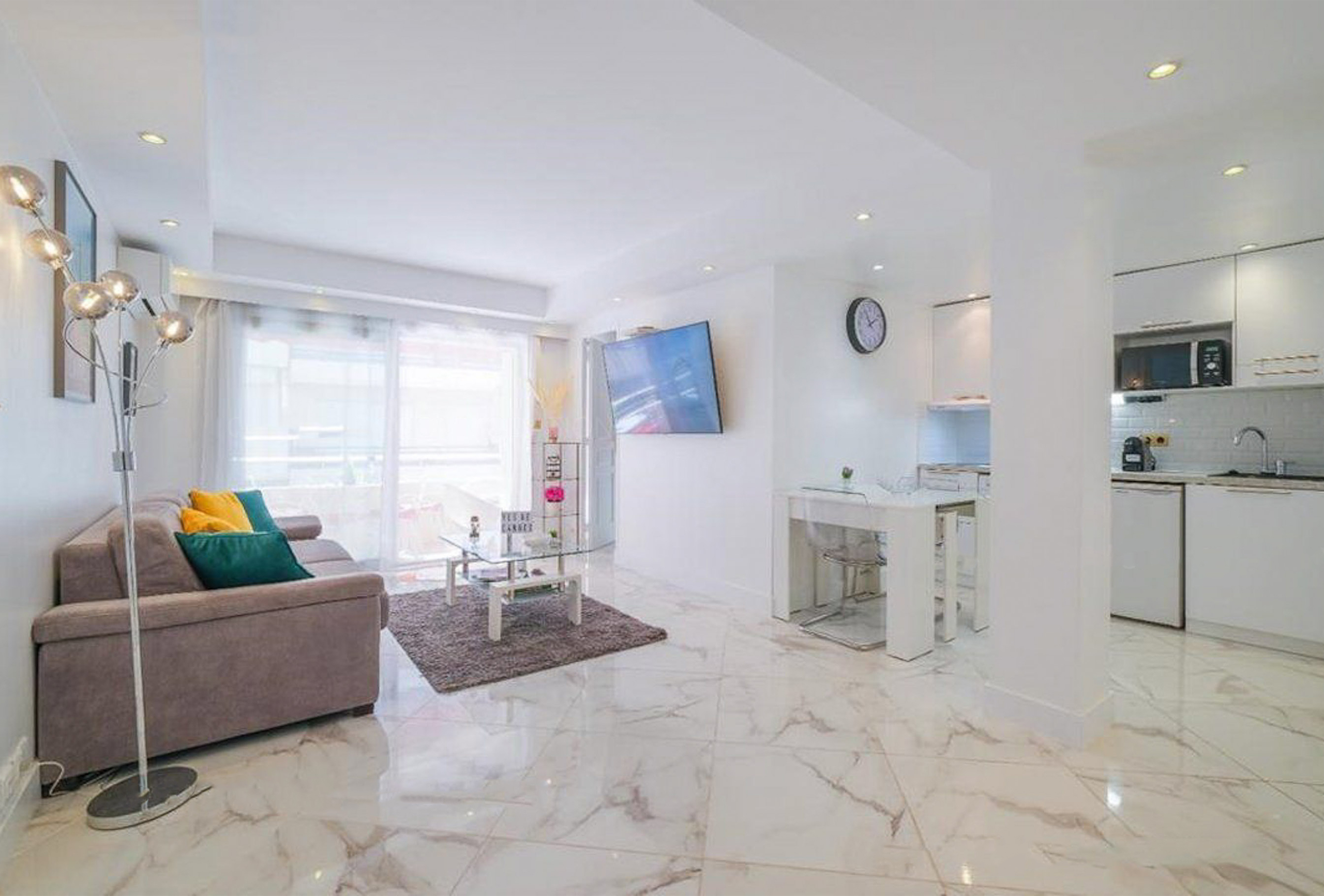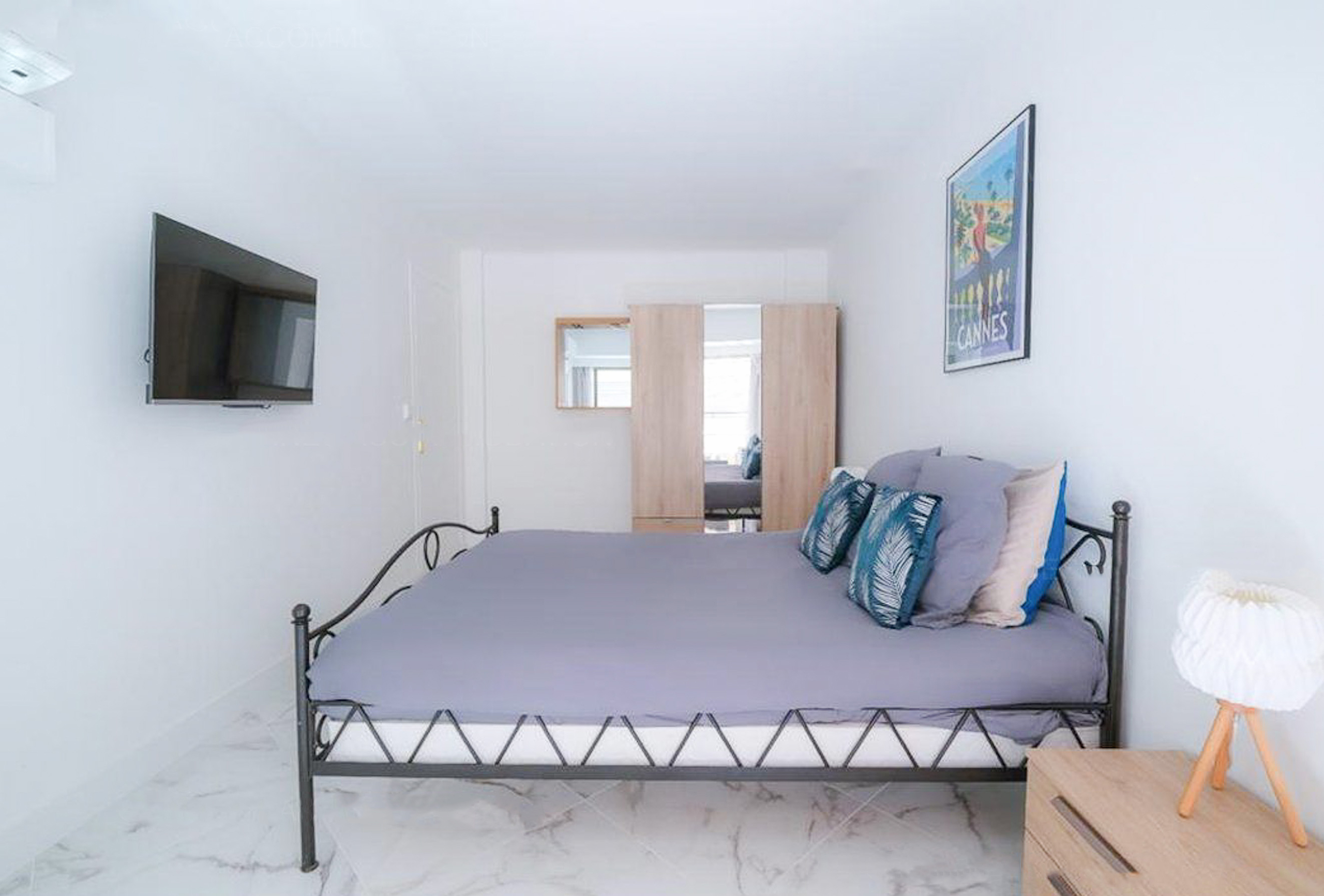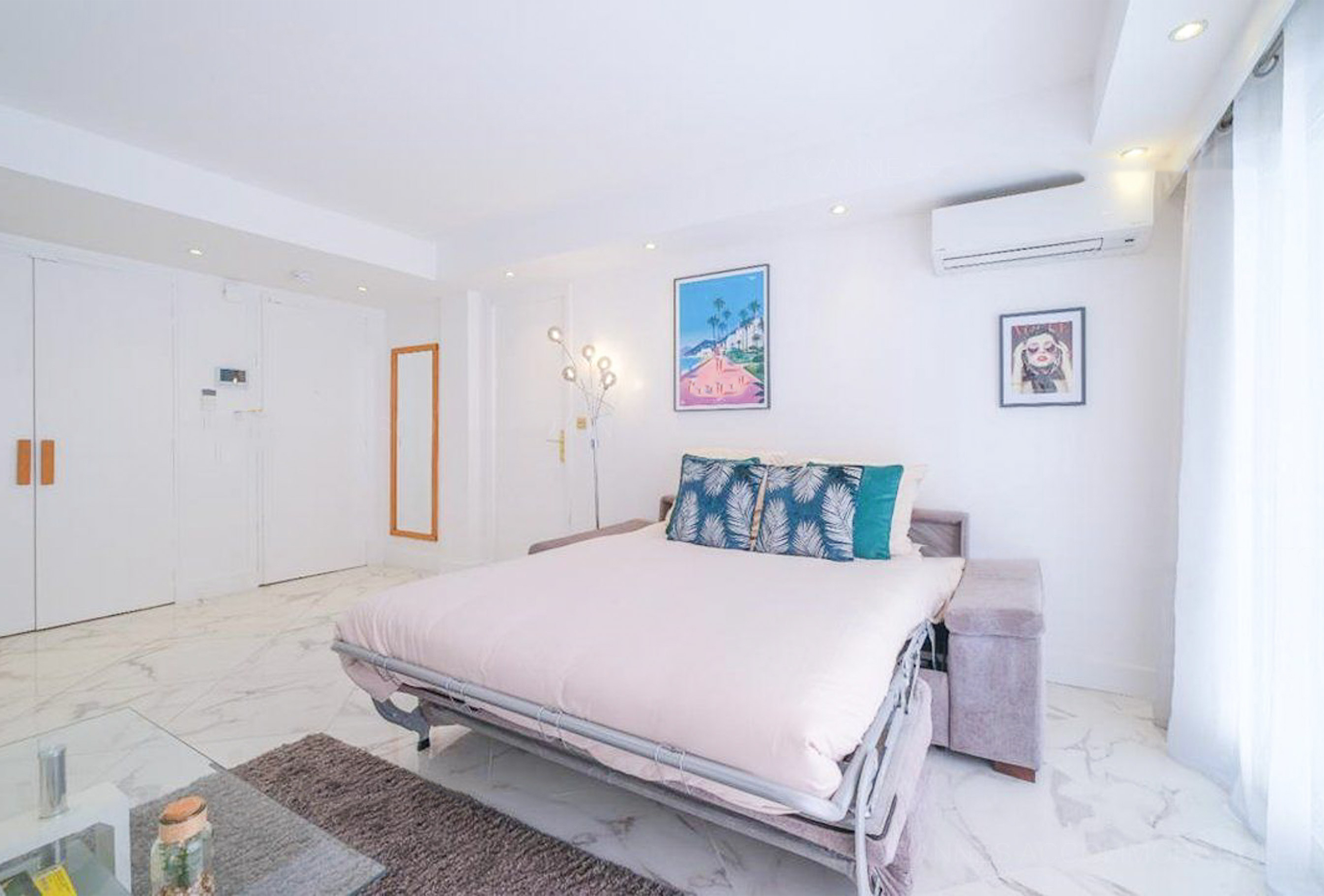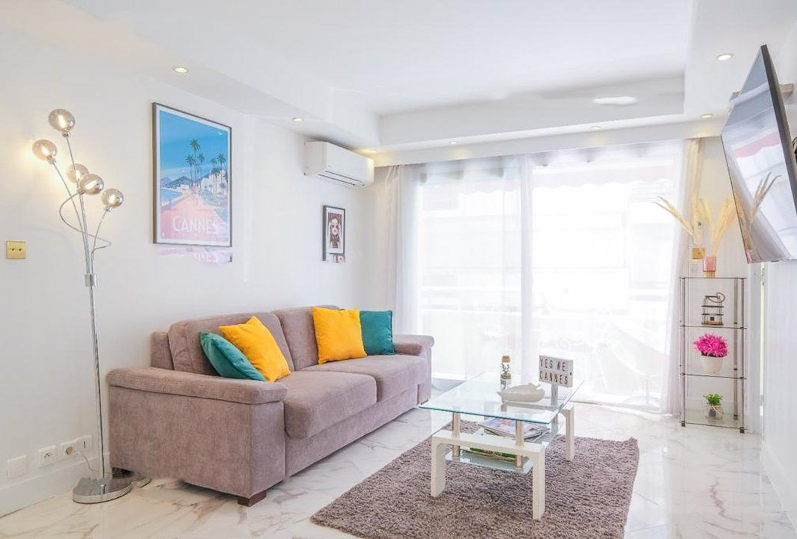 This charming 2-bedroom apartment welcomes you in the heart of Cannes, just a few minutes’ walk from the Palais des Festivals an ideal location for business travelers. You’ll enjoy the spacious and bright living room, perfect for relaxing after a busy day or sharing a pleasant moment with colleagues. Large windows let in plenty of natural light and create an inviting atmosphere. The open-plan kitchen is modern and fully equipped, offering everything you need to prepare meals in a comfortable and stylish setting. The two bedrooms each feature two single beds, making this apartment especially well-suited for professional stays or congress participants. The sleek and functional bathroom includes a walk-in shower and toilet. With its central location and generous living spaces, this apartment offers the perfect balance between work and comfort during your stay in Cannes.