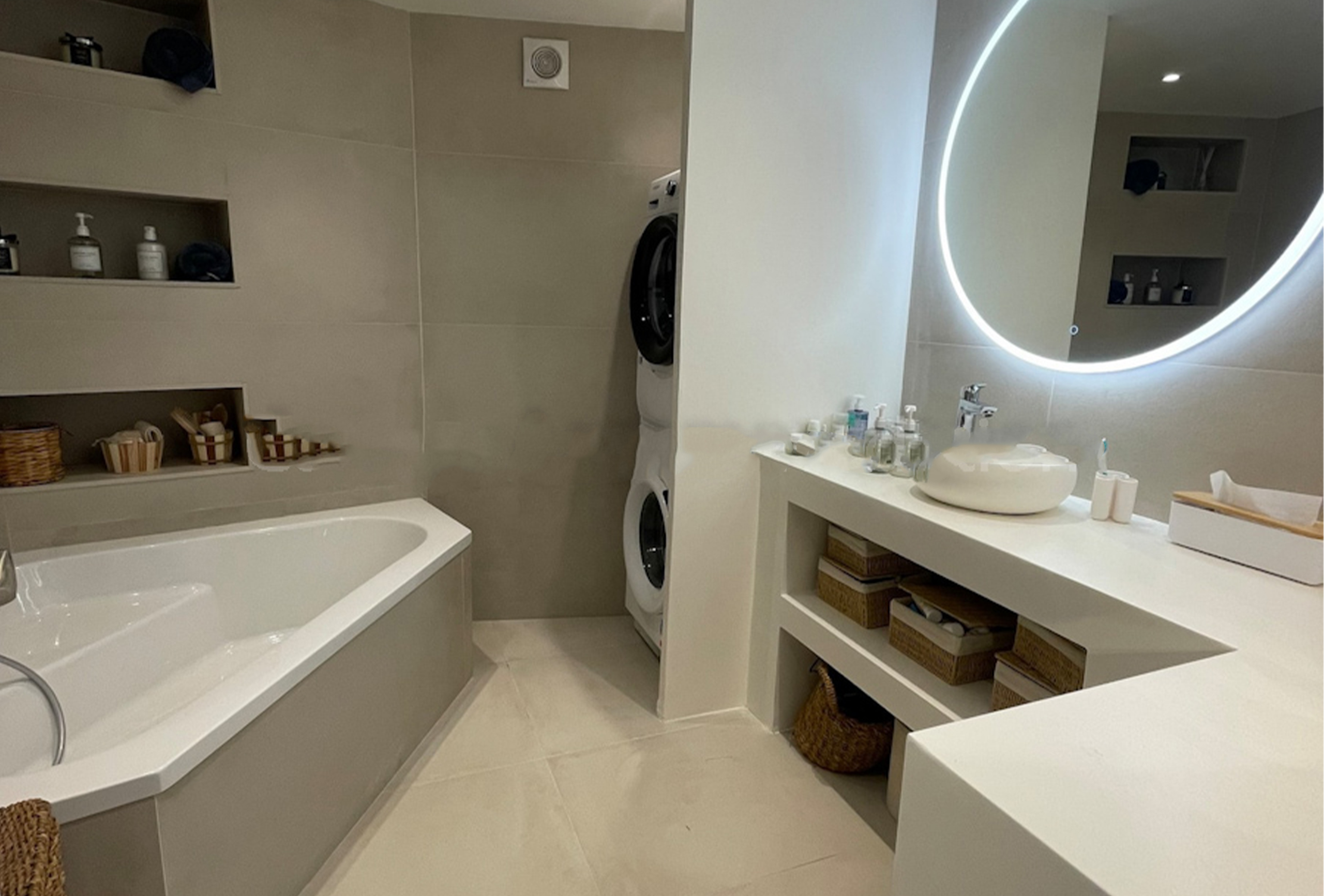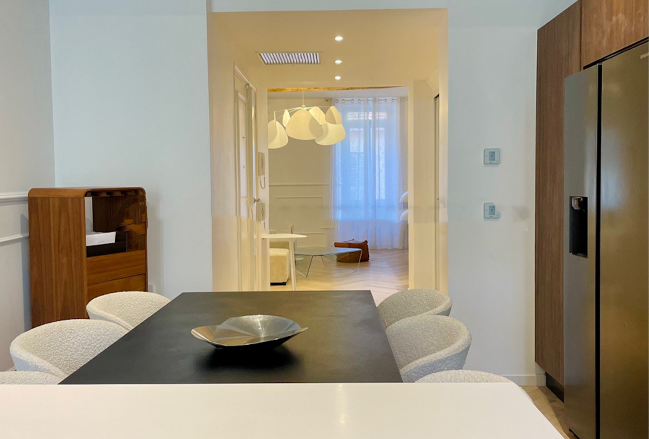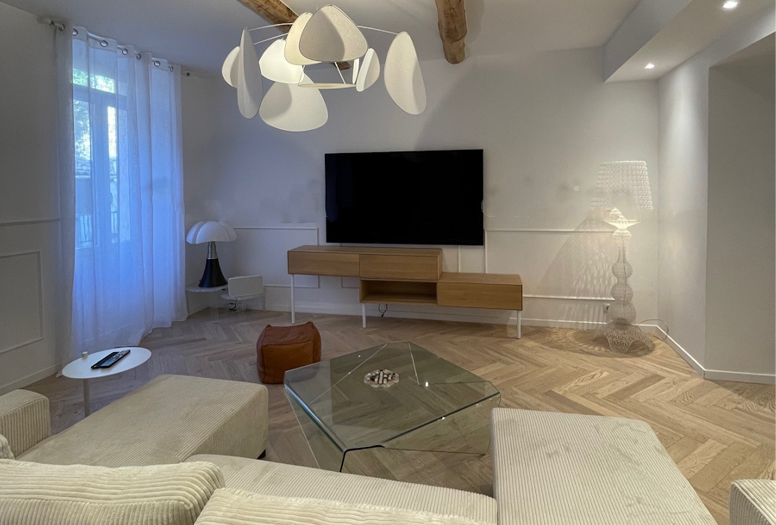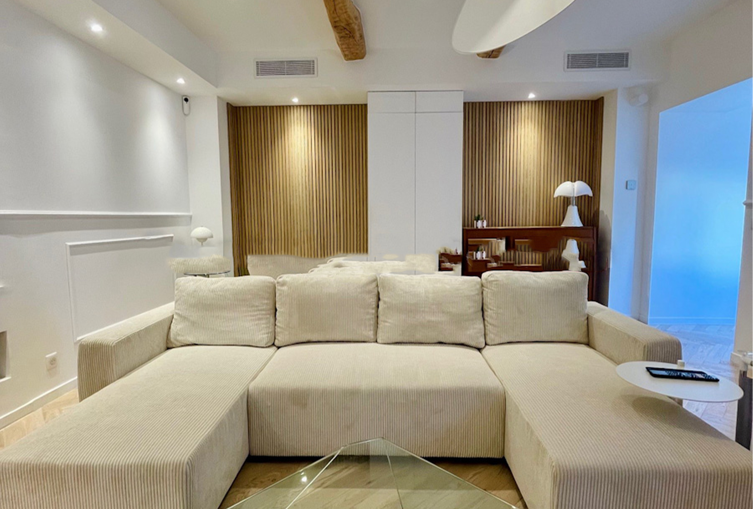 You will find this magnificent 3 bedroom property with terrace just a few steps away from the convention centre, the « plages du midi » and the old town. Nestled on the 2nd floor without lift, this huge 130sqm apartment has been beautifully renovated by an architect. The large living-room offers a modern decor, sober but warm. The enjoyable living-room is equipped with a television and a comfortable sofs. You will be able to friendly welcome your team or guests for a nice meal in the dining area / kitchen. The kitchen is fully equipped. The apartment features three bedroom with 1 king size bed and 4 singles beds (that can turned into double) You will also find two en suite shower and one independant bathroom. You will access the terrace through the staircase. The terrace is the place to be for chilling out after a busy day. This is a unique property. You will appreciate the multiple advantages of such generous volumes, modern decoration and full equipment… A perfect location in the heart of the city. You will definitely be fond of this place!