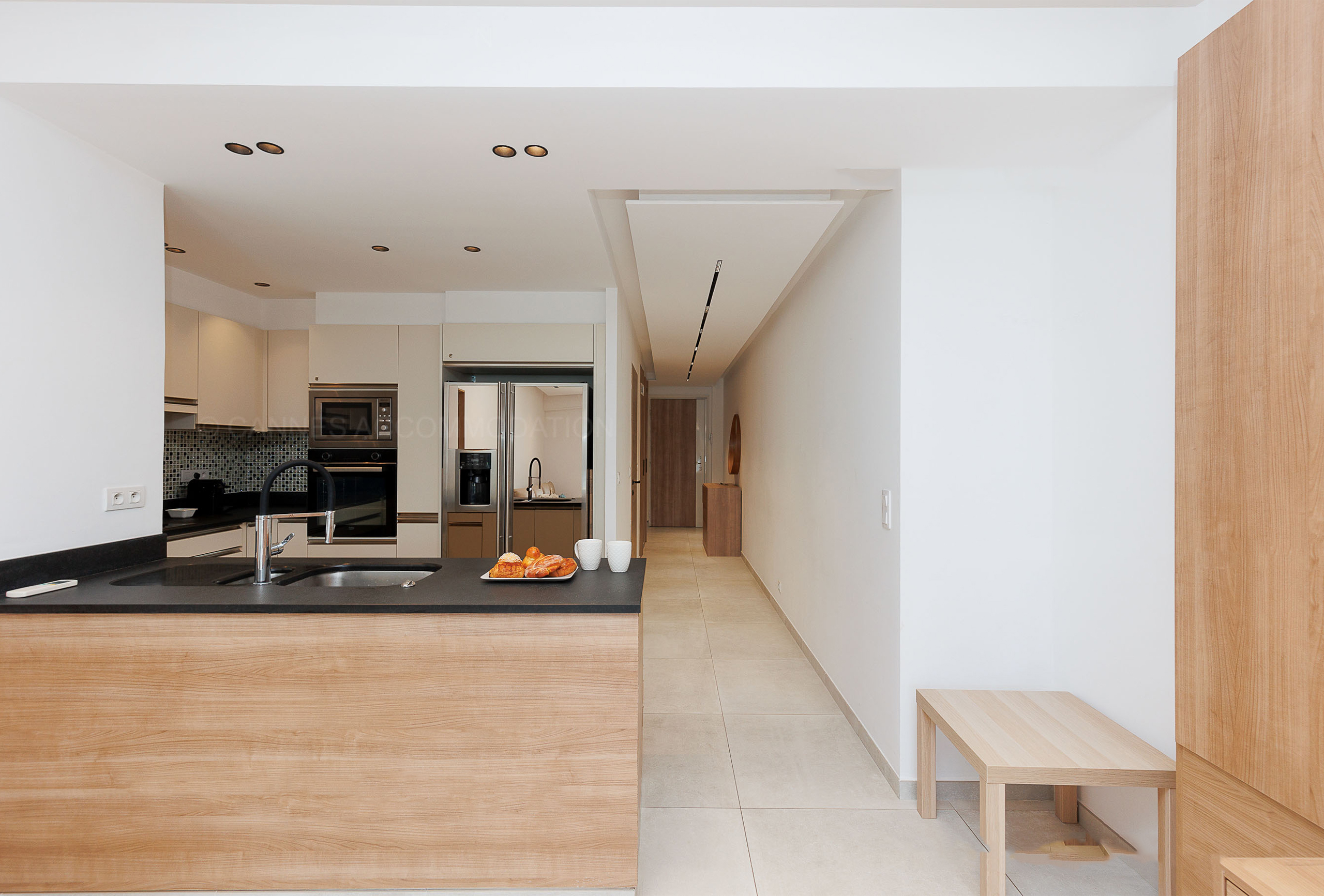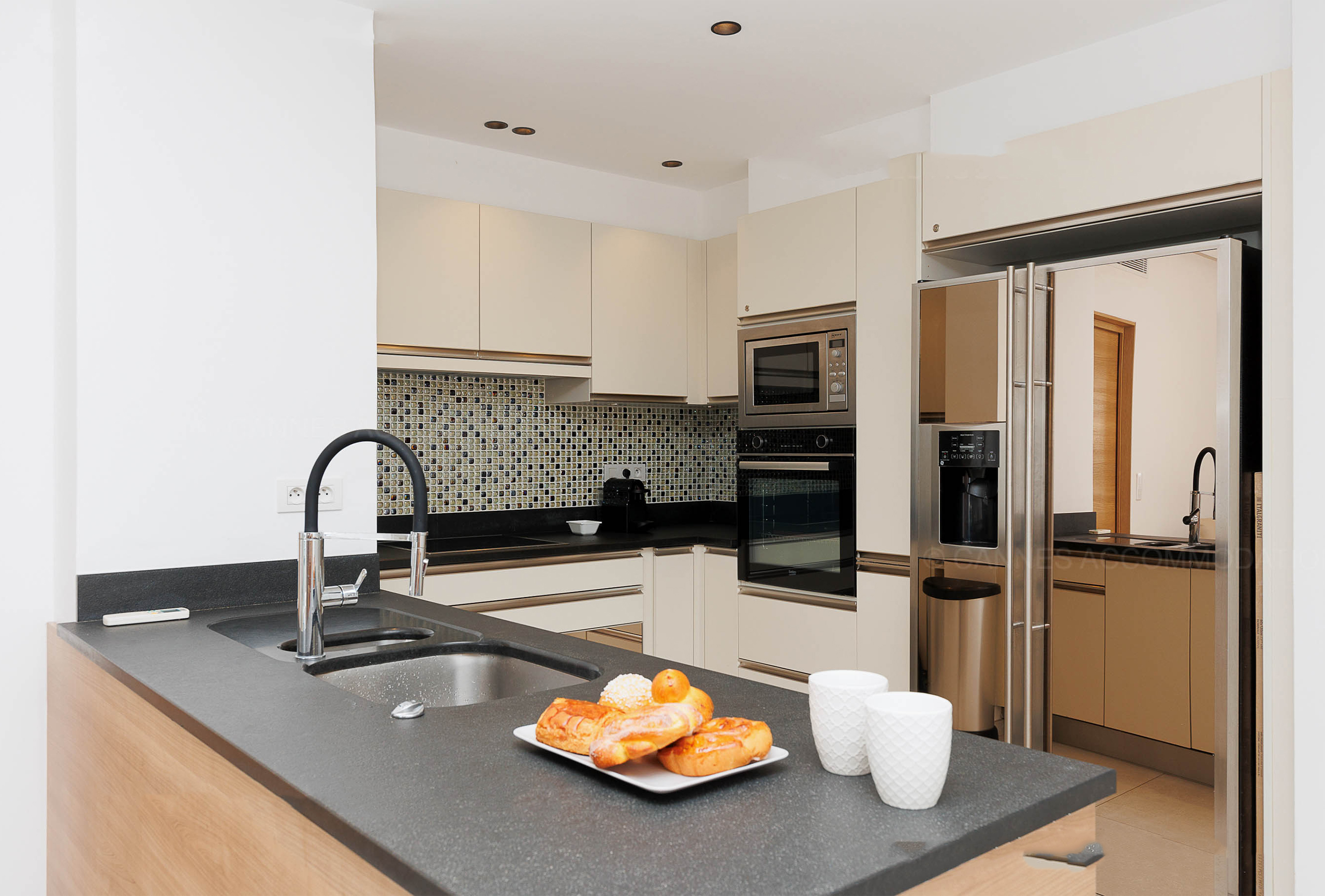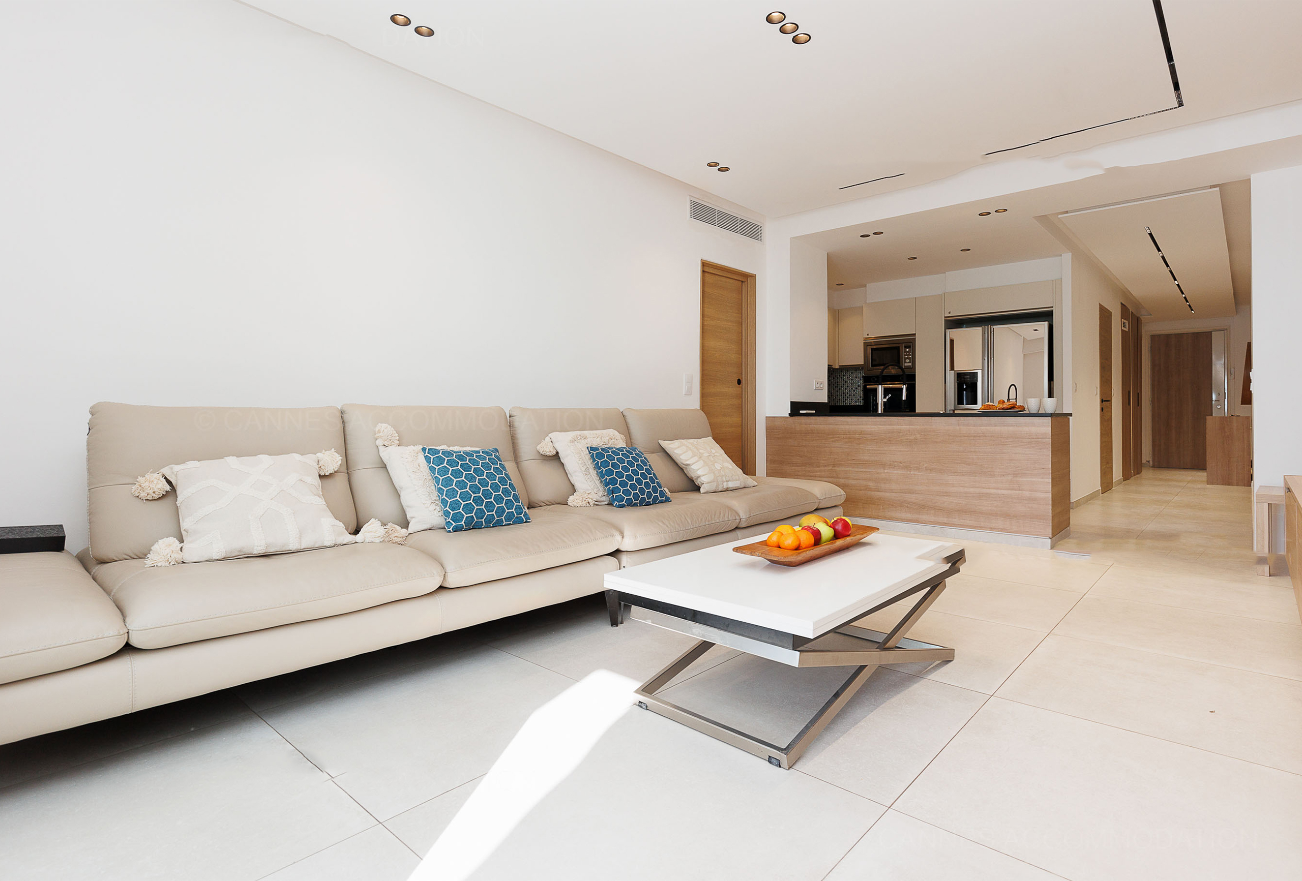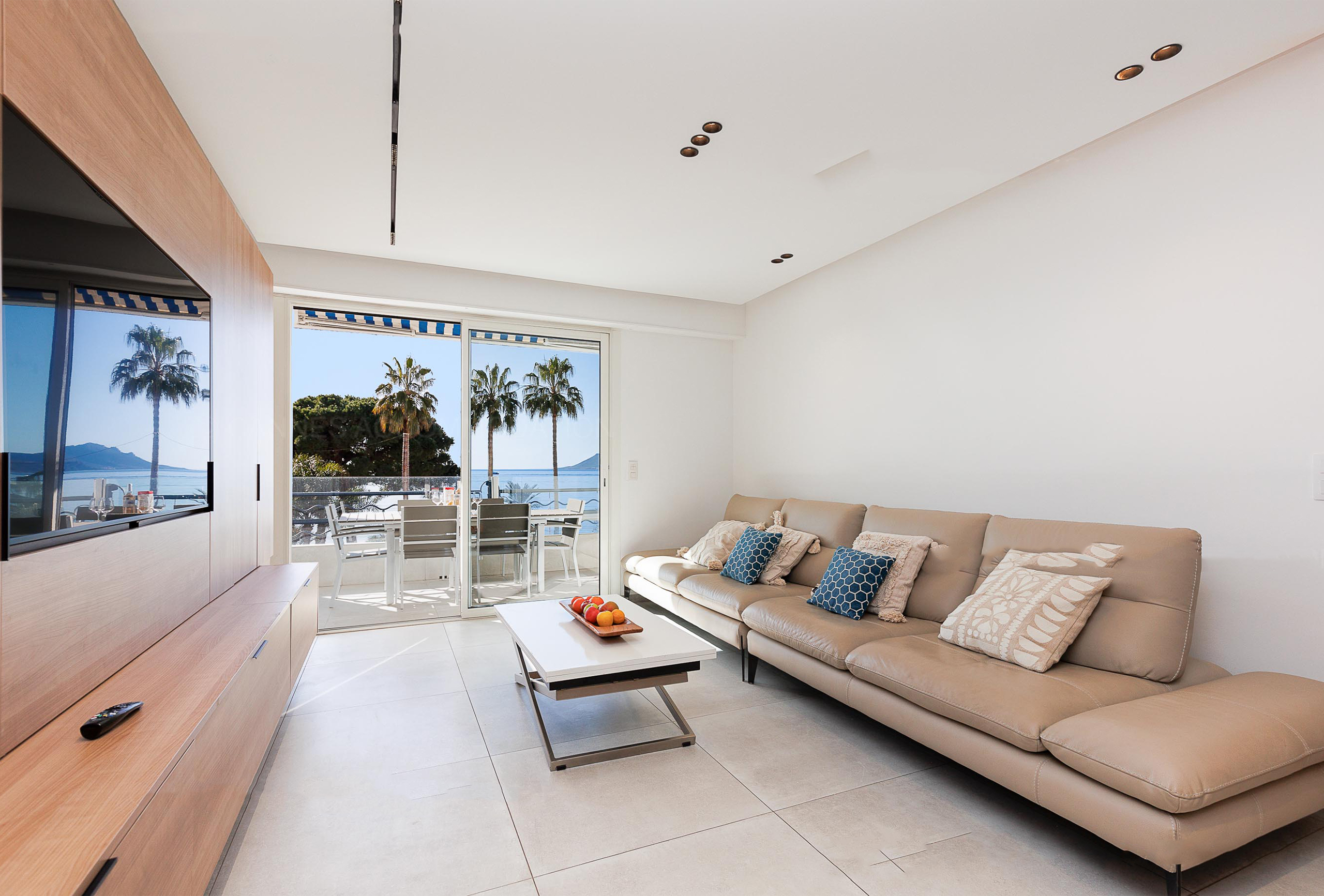 Come and enjoy an unforgettable stay in this fully renovated 3 bedroom apartment, located in the heart of Cannes, just across from the famous Croisette beaches. Spacious, bright, and beautifully decorated, it offers a modern and welcoming atmosphere, ideal for a seaside getaway or a business trip during a conference or festival. As soon as you step inside, you’ll be captivated by a large, light-filled living room, flooded with natural light from large bay windows offering stunning views of the Mediterranean. Its sleek, refined design creates a calm and relaxing ambiance, perfect for unwinding. The open kitchen, fully equipped, creates a convivial space for family or friends to gather, with its central island ideal for a chat over a drink while enjoying the sea view.