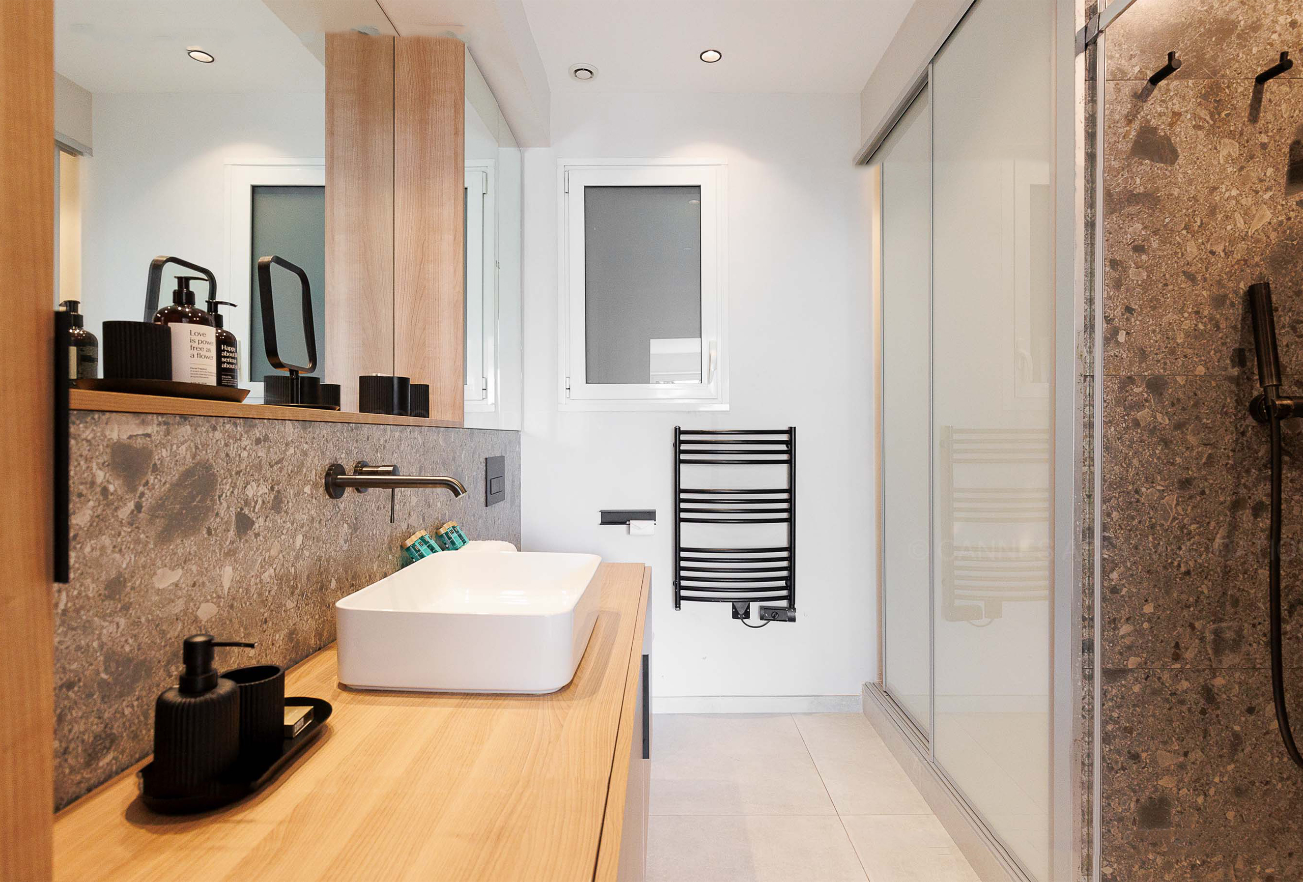 A second modern bathroom with a shower and toilet completes the apartment, providing convenience and comfort throughout your stay. Ideally located just a few minutes’ walk from the Palais des Congrès, this apartment is perfect for professionals attending international trade shows and events. Nearby, you’ll find numerous luxury boutiques, fine dining restaurants, and lively cafés, allowing you to make the most of your time in the city. Whether you’re here on a business trip, for a romantic getaway, or with your family for a vacation, this apartment promises an unforgettable experience in one of the most sought-after neighborhoods in Cannes.
