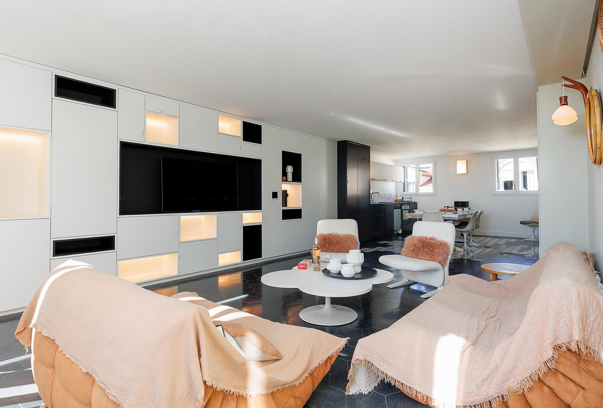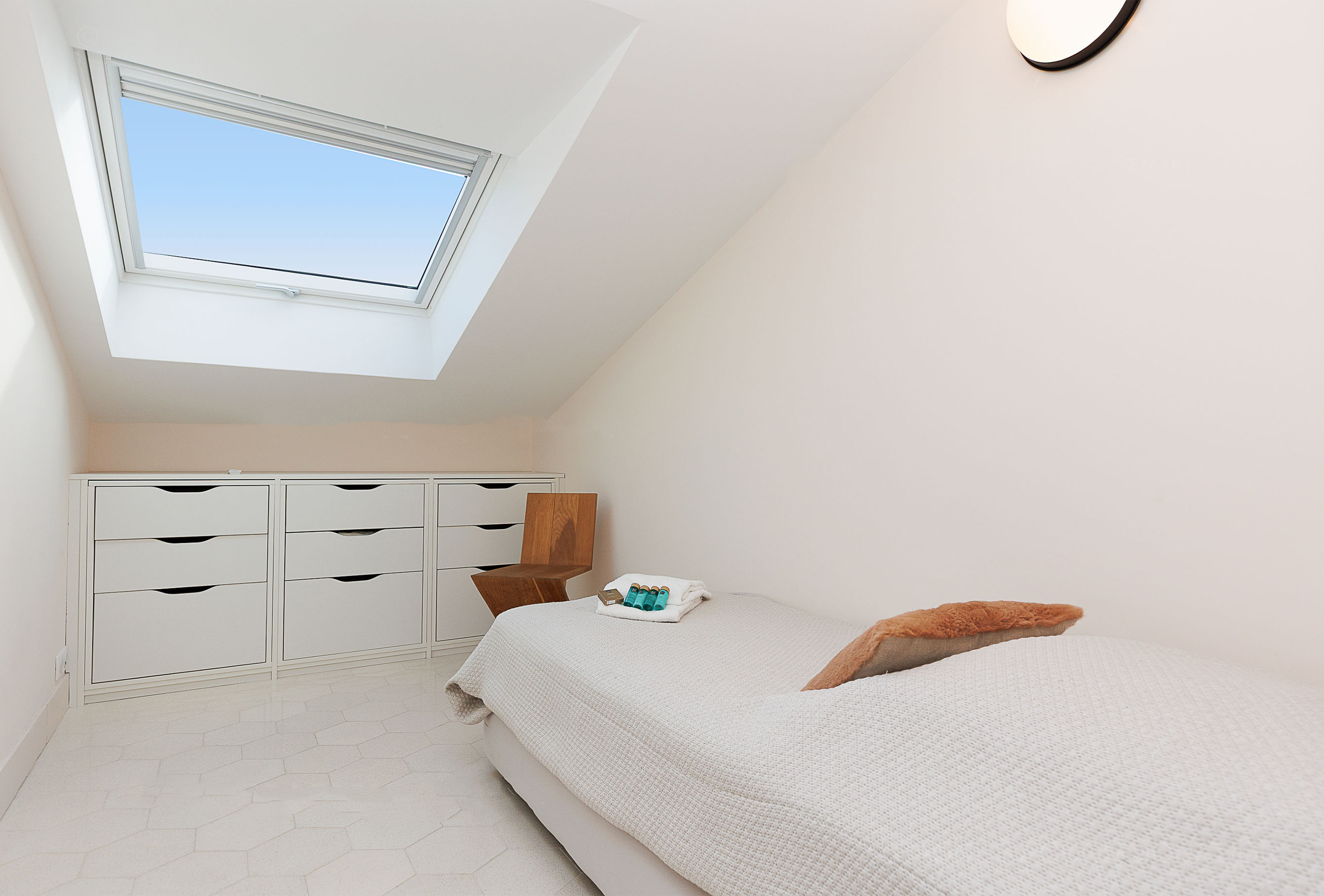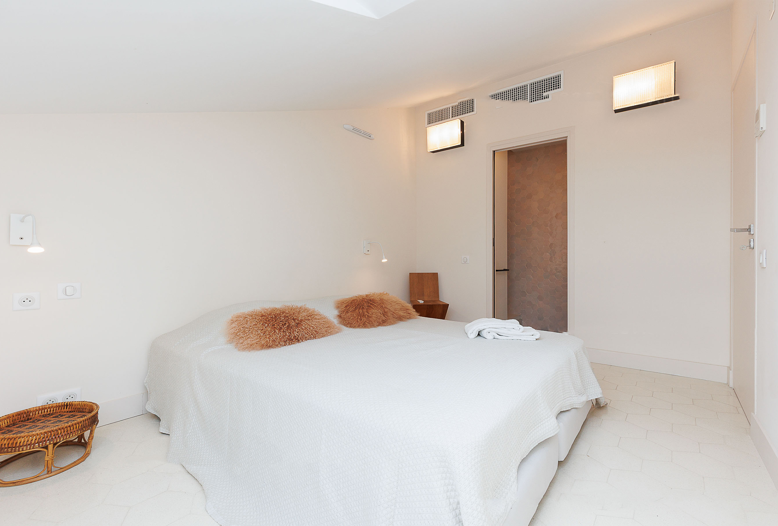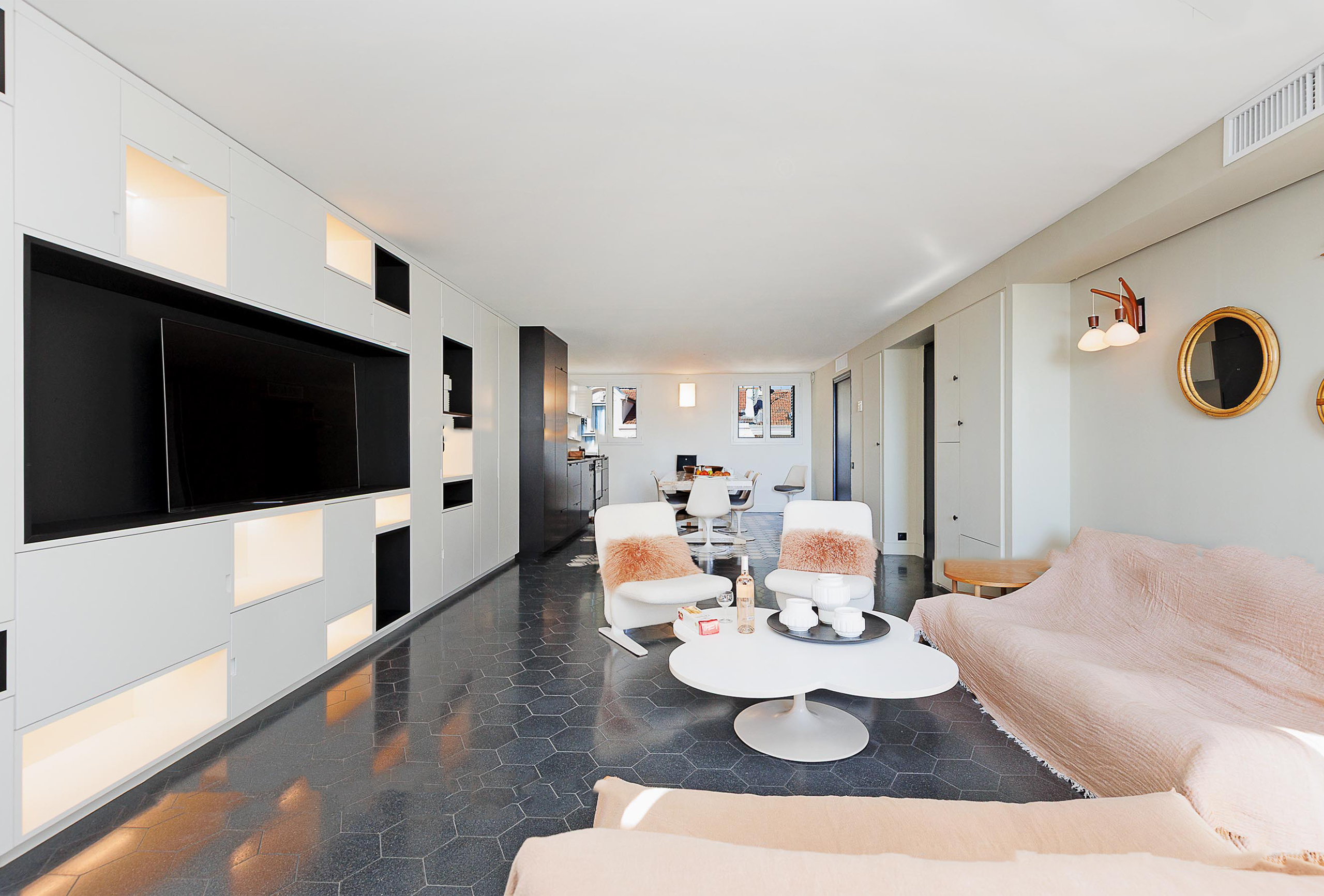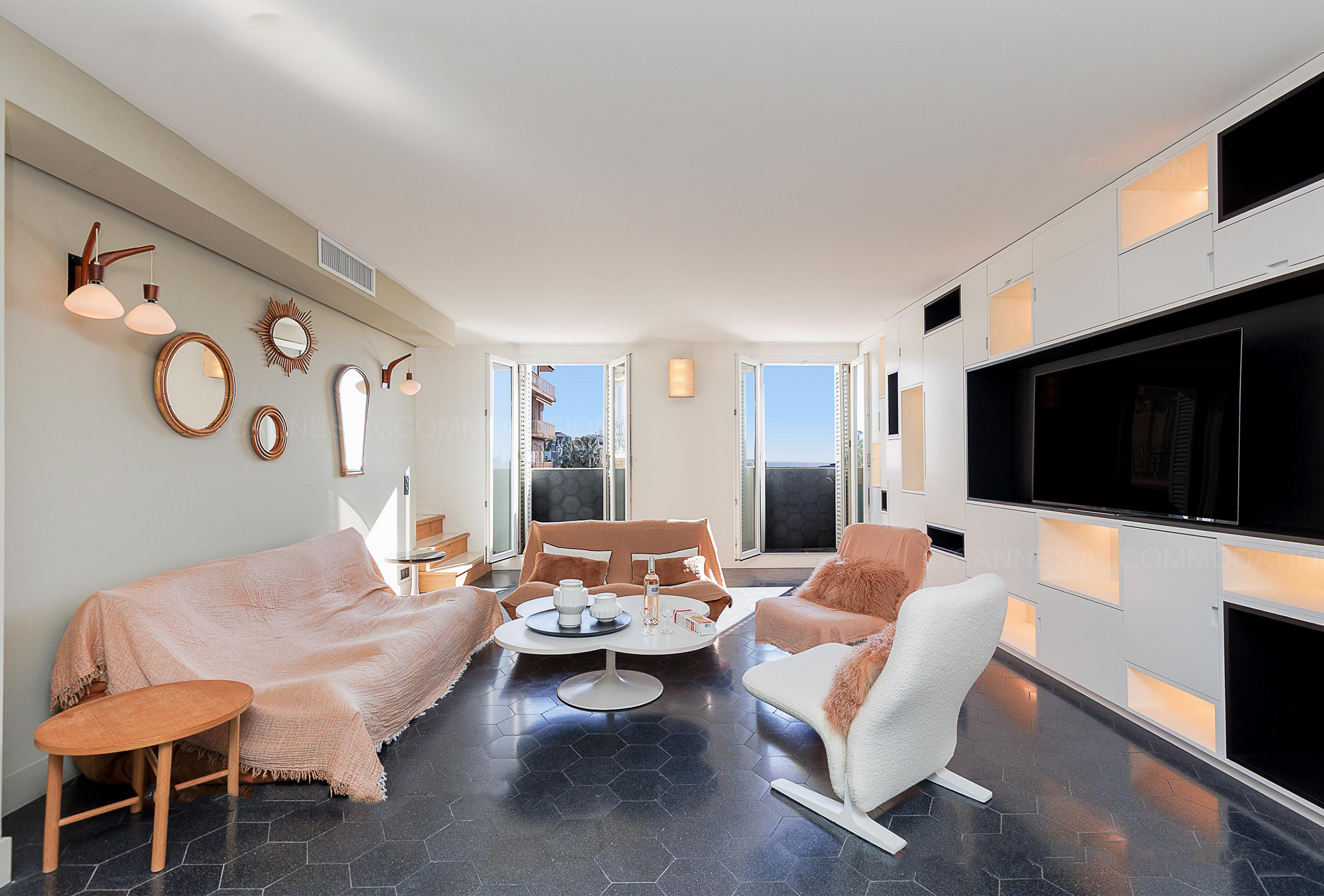 A third, smaller bedroom with an 80 cm bed provides an ideal solution for a child or an additional sleeping arrangement. An independent toilet serves all three bedrooms, ensuring added convenience for guests. With its simple yet elegant decor, this apartment combines comfort and modernity in a refined setting. Its prime location, less than two minutes from the Palais des Congrès, offers easy access to Cannes’ renowned beaches, restaurants, and shops. A perfect address to combine work and relaxation on the French Riviera, ideal for congress attendees and visitors looking for a pleasant and convenient stay.