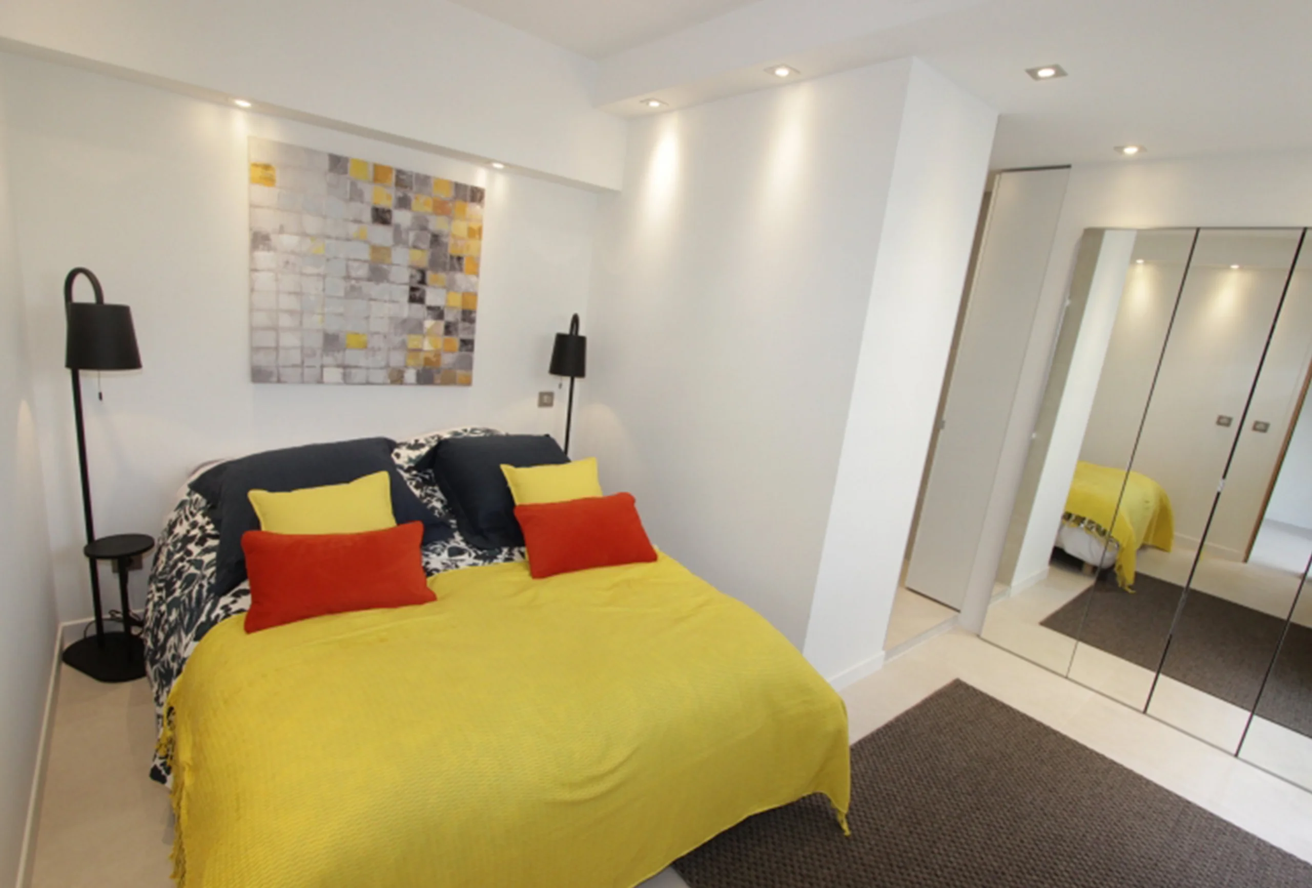 The Palais Lumière Residence is located 100 meters from the Croisette between the Marriott and Carlton hotels, 8 minutes walk from the Palais des Festivals. Luxurious and completely renovated 2 rooms of 45 m2 on the 2nd floor crossing south / north including a living room with convertible and fitted kitchen (plates, oven, microwave, dishwasher, washing machine, fridge, freezer …), a bedroom with a double bed and en-suite shower room, a separate toilet, two south and north terraces, air conditioning and internet.