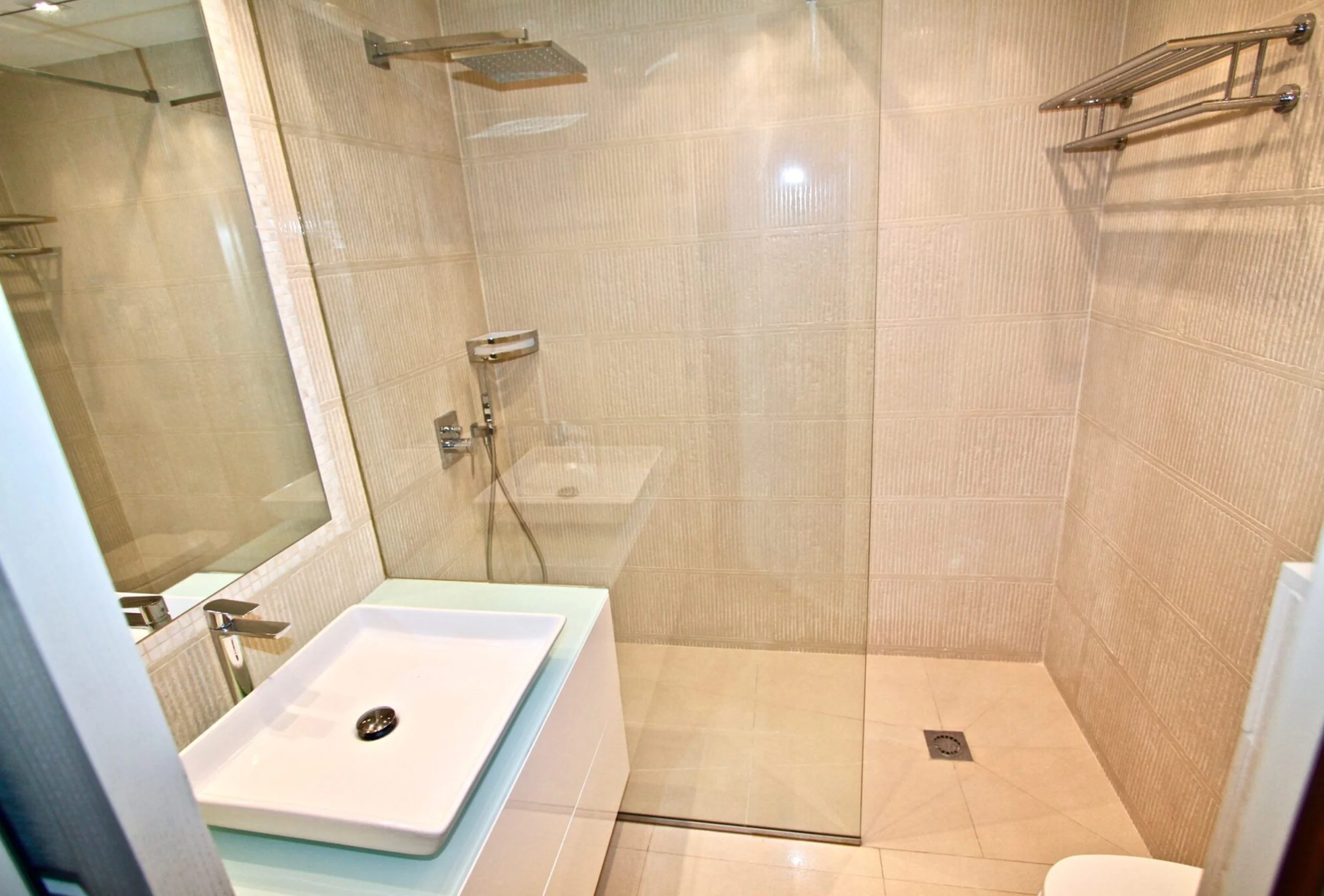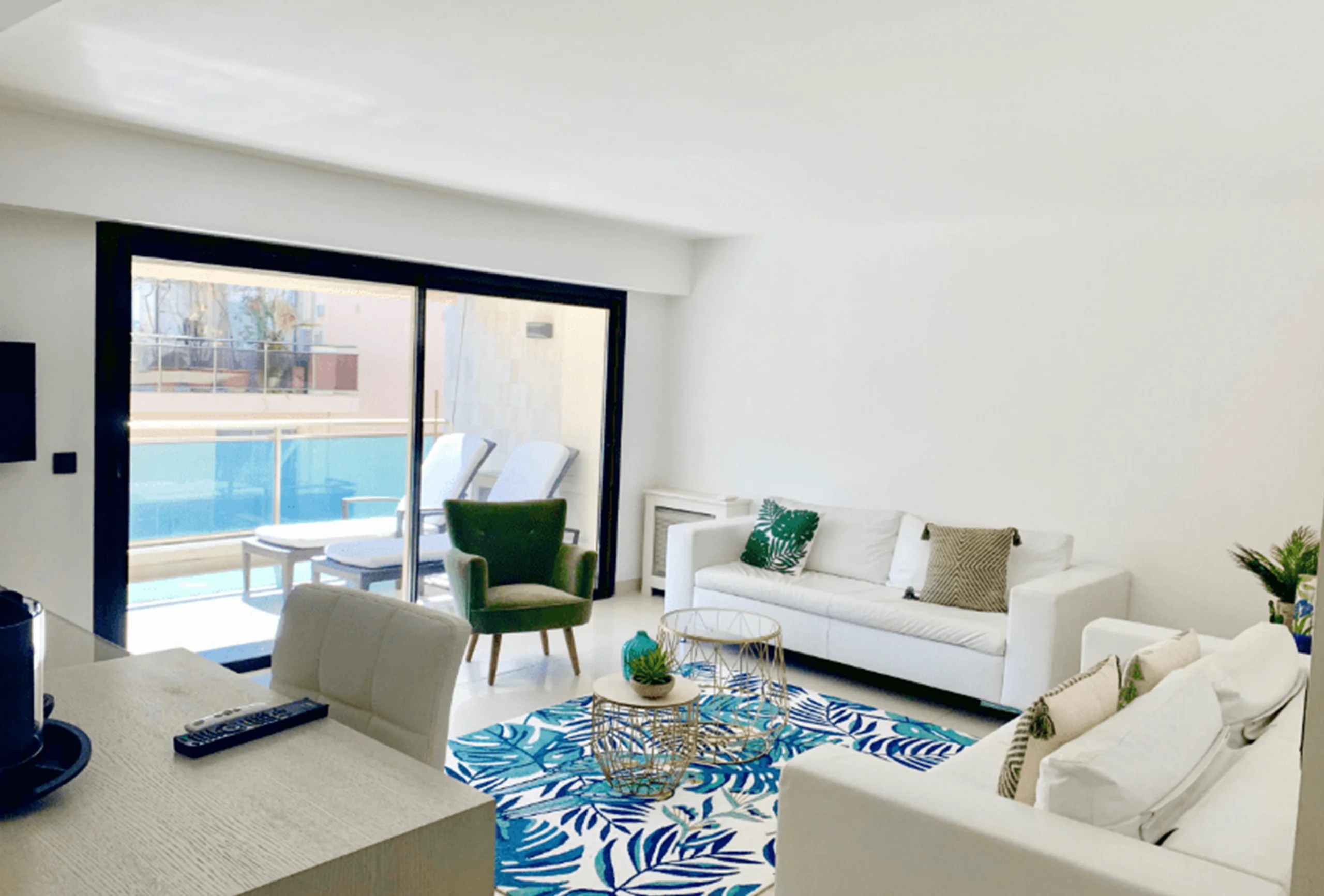 Luxurious 1 bedroom apartment fully renovated in a luxury residence 100 meters from the Croisette next to the Carlton Hotel and 8 minutes walk from the Palais des Festivals. It is located on the 5th floor crossing south / north and includes a living room with fitted kitchen overlooking a south terrace quiet, a bedroom with double bed, 2 shower rooms, one with toilet, air conditioning and internet.