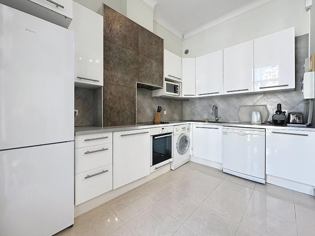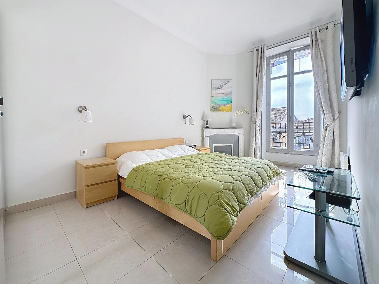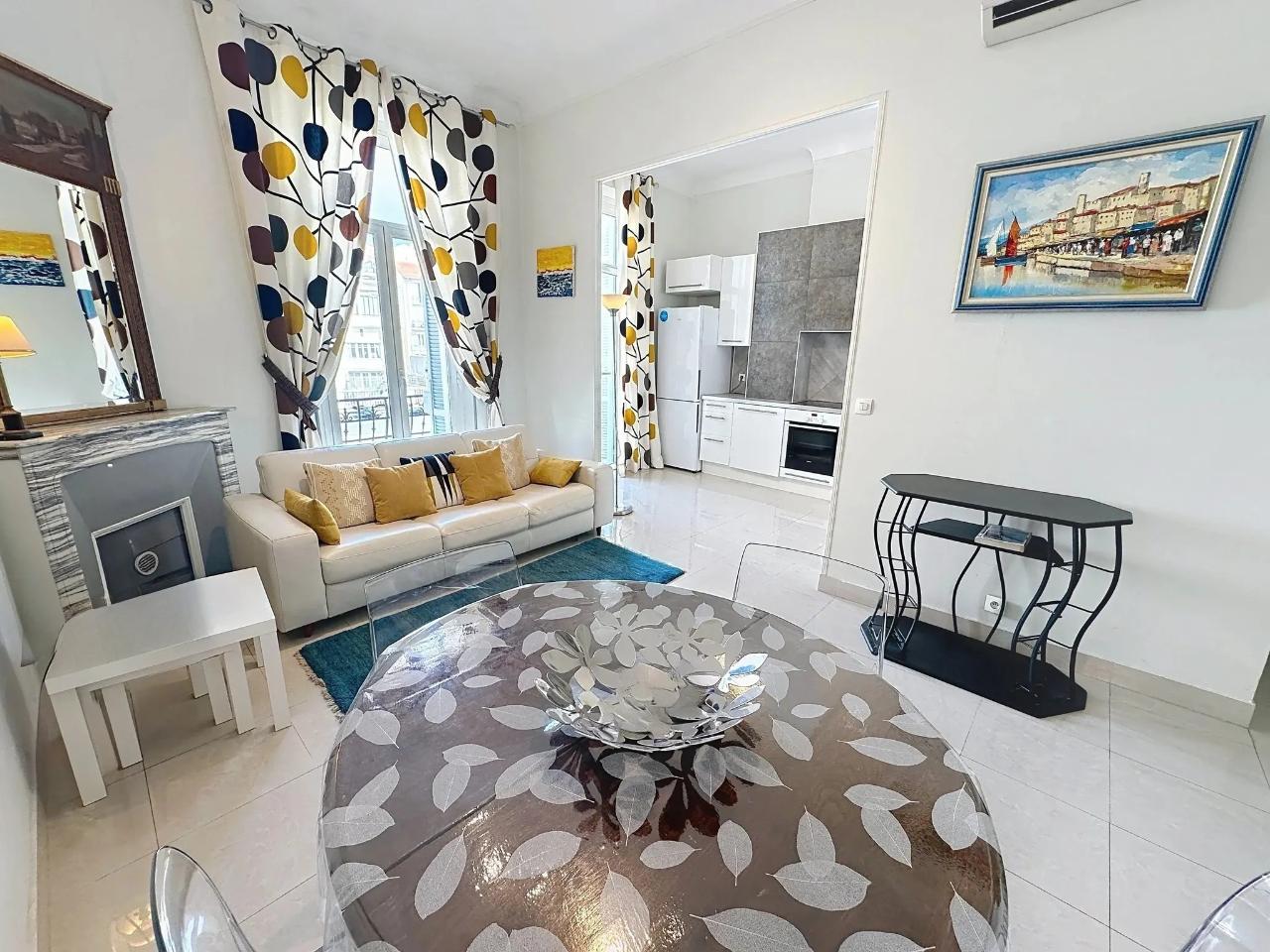 This spacious and fully refurbished two-bedroom apartment is located in the charming old town, just a 10-minute walk from the Palais des Festivals. Featuring a stylish, modern decor, the living room offers a comfortable sofa bed and access to a cozy balcony. The open kitchen is very well equipped, ideal for home cooking. The main bedroom includes a double bed, while the second bedroom has twin beds, perfect for flexibility. The large bathroom features both a bathtub and a shower, and there is a separate toilet for added convenience. Additional amenities include air conditioning and Wi-Fi, ensuring a comfortable stay.