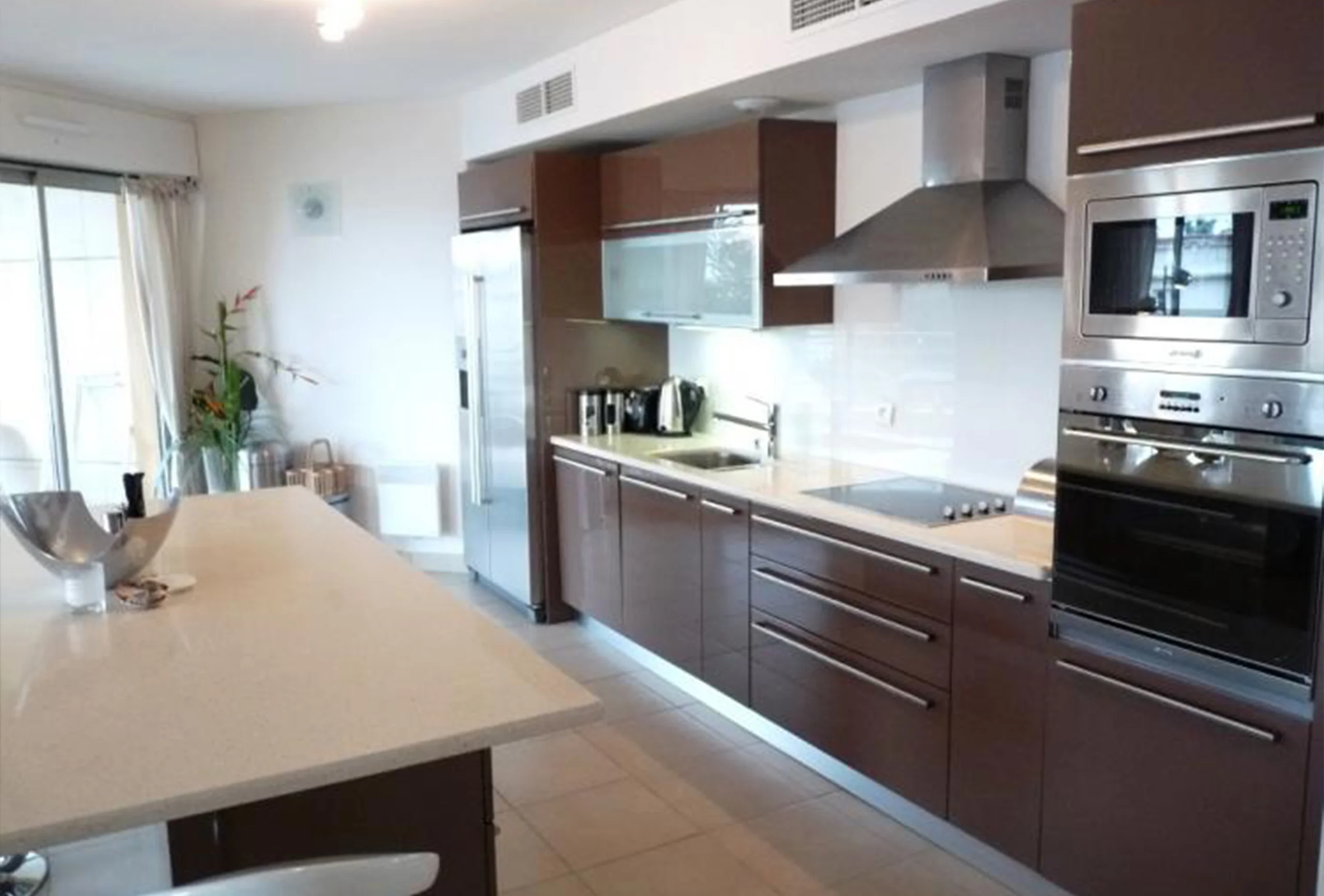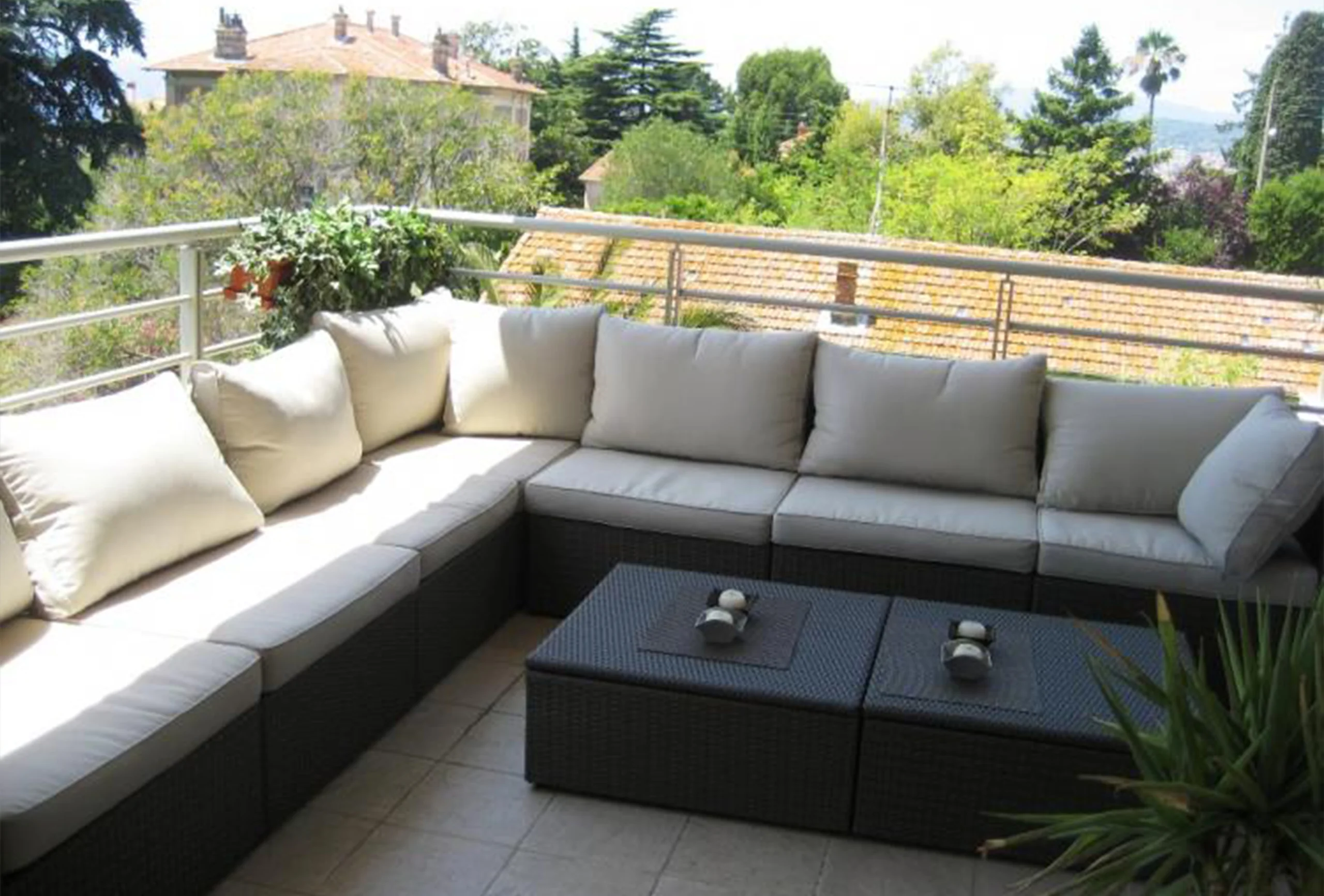 This luxurious three bedroom, two bathroom is situated on the second floor of a three storey building, facing south to the sea, and west to the Esterel mountains. Excellently located – Palm Beach, the Croisette and the sea front are just a short walk away. This spacious apartment sleeps seven people comfortably with the option of accommodating a further two if the living room sofa bed is used. The accommodation can be tailored in advance allowing the bedrooms to be either double or twin rooms. Thus the property is flexible to your requirements. The apartment has two balconies, one facing south for sunlight during the day and the other facing west to watch the sun setting. Nestled within the landscaped gardens there is a luxurious swimming pool surrounded with stylish teak decking and a large pool house for the private use of residents.