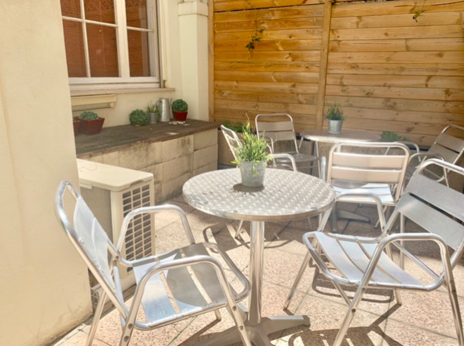 Situated on the first floor of a charming building (no lift), the apartment features a bright and airy living room with a comfortable sofa, fireplace, and two French windows offering stunning views of the port. The living area also includes a dining table, perfect for meals and gatherings.