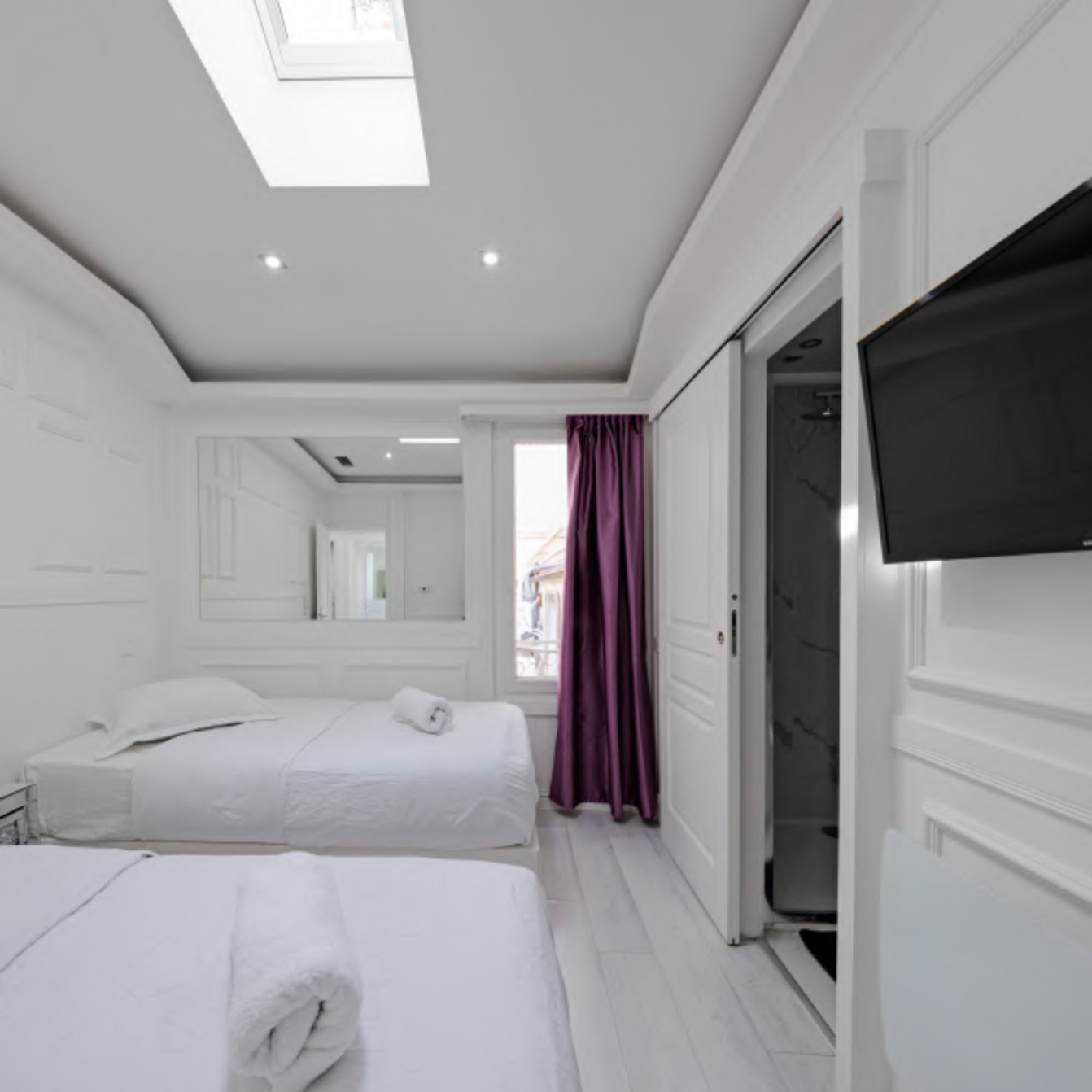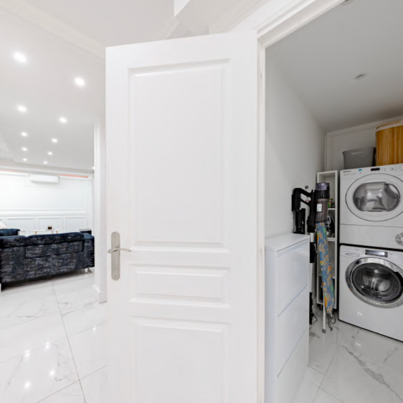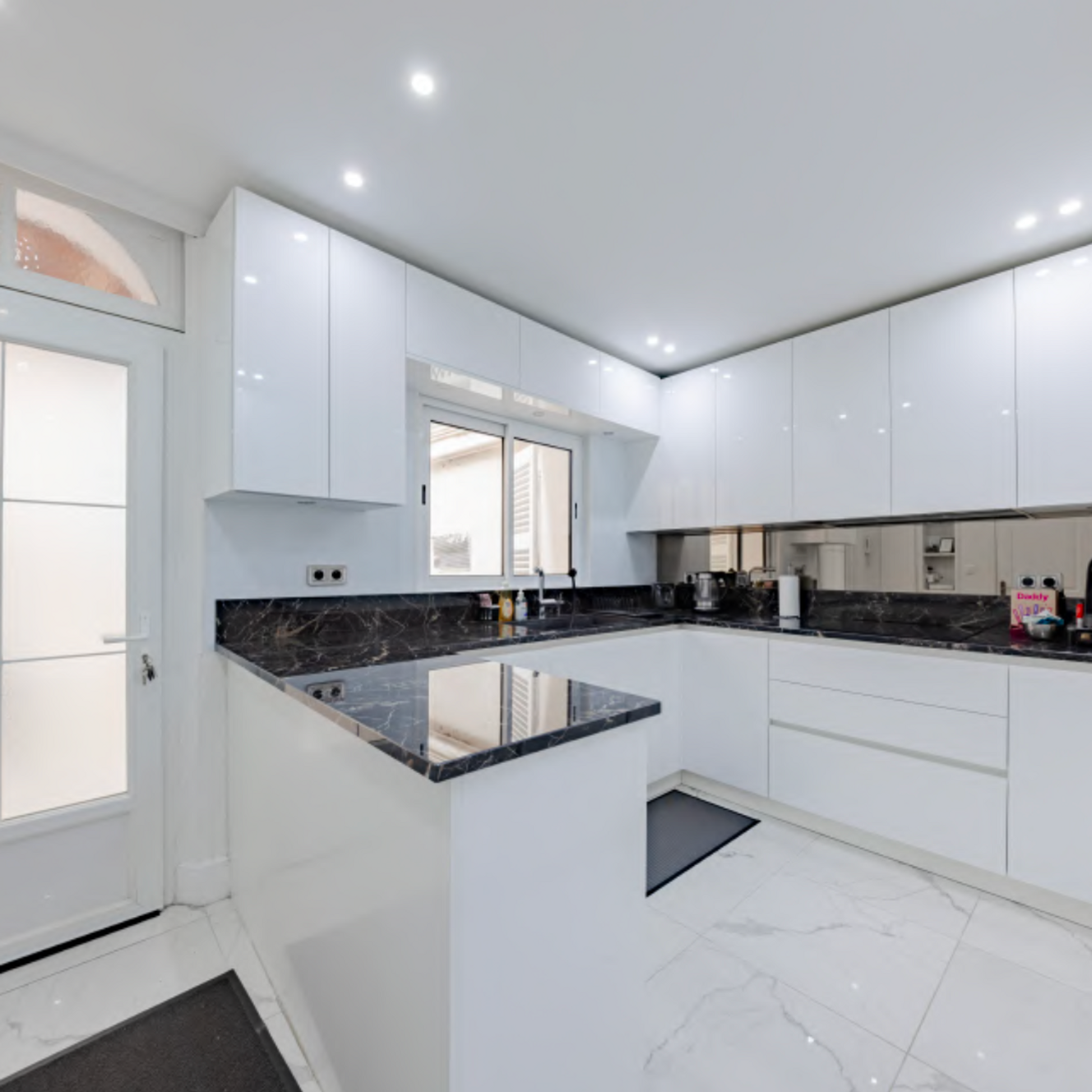Beautiful 101 sqm duplex apartment (villa) ideally located, fully equipped and air- conditioned, it consists of three bedrooms and three bathrooms (en-suite), one living room with a kitchen, and a terrace of 7 sqm. On the ground floor. Wifi and air conditioning. 7 min from the Palais des Festivals and the beaches of Cannes.