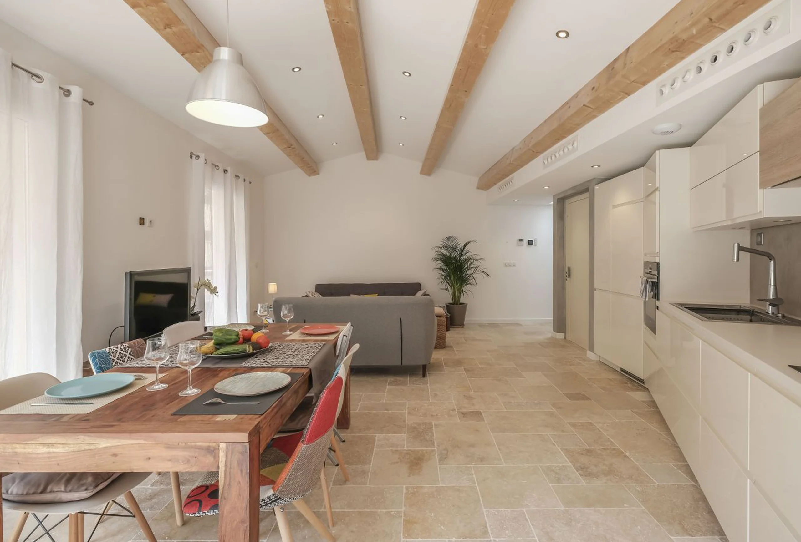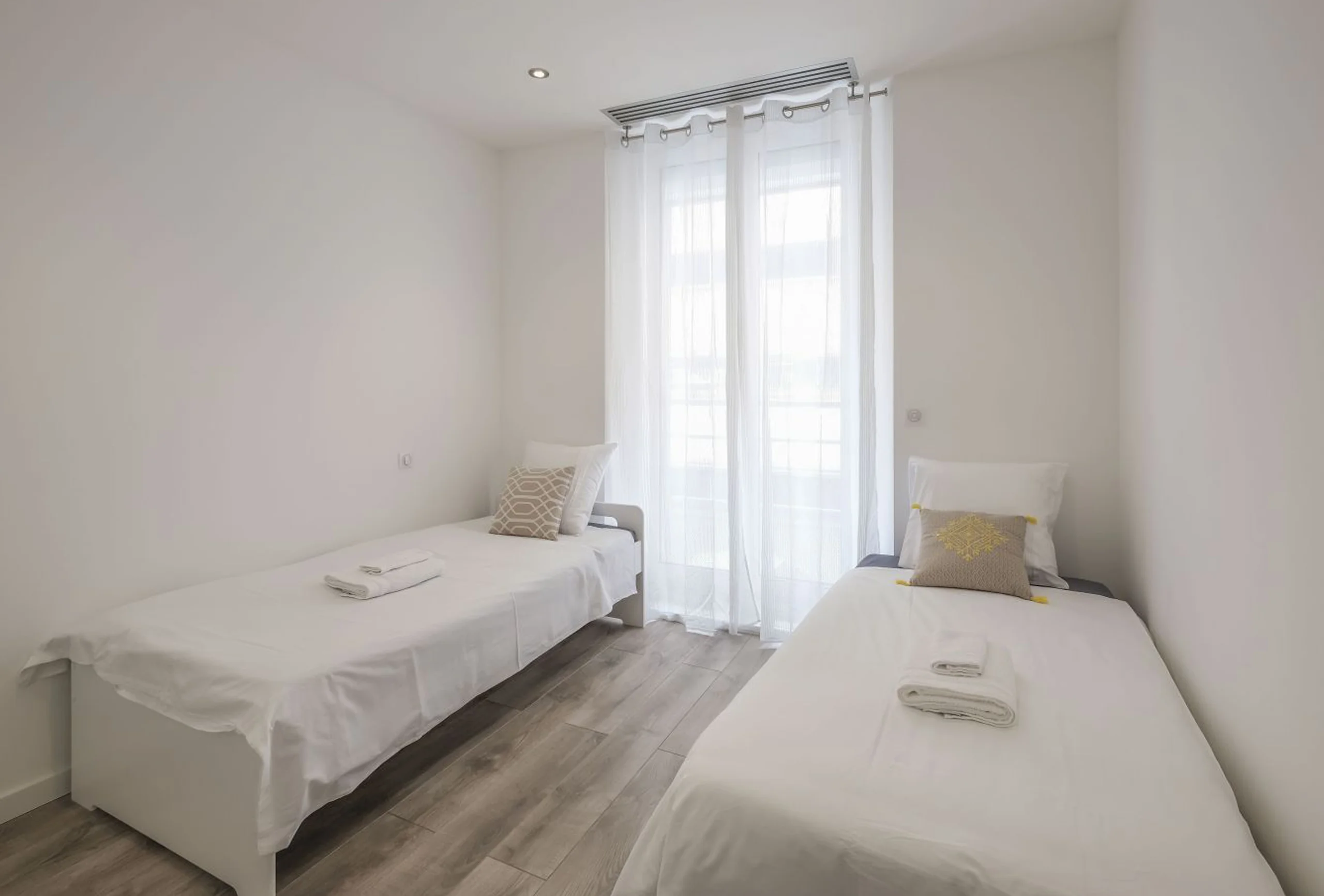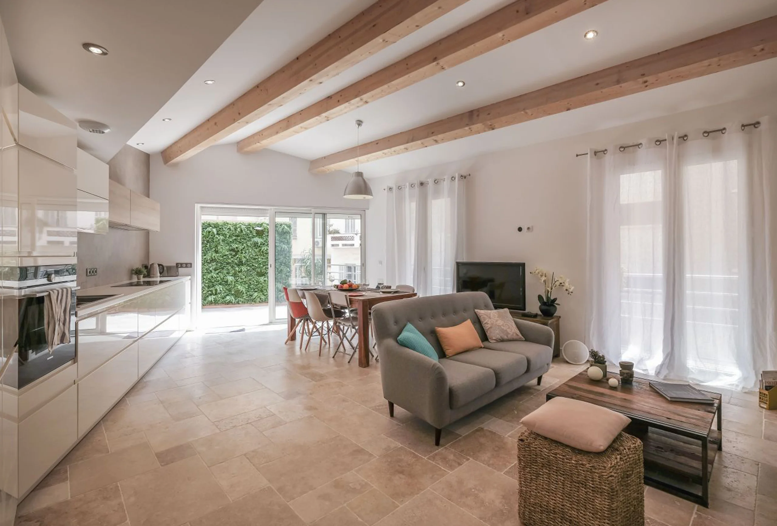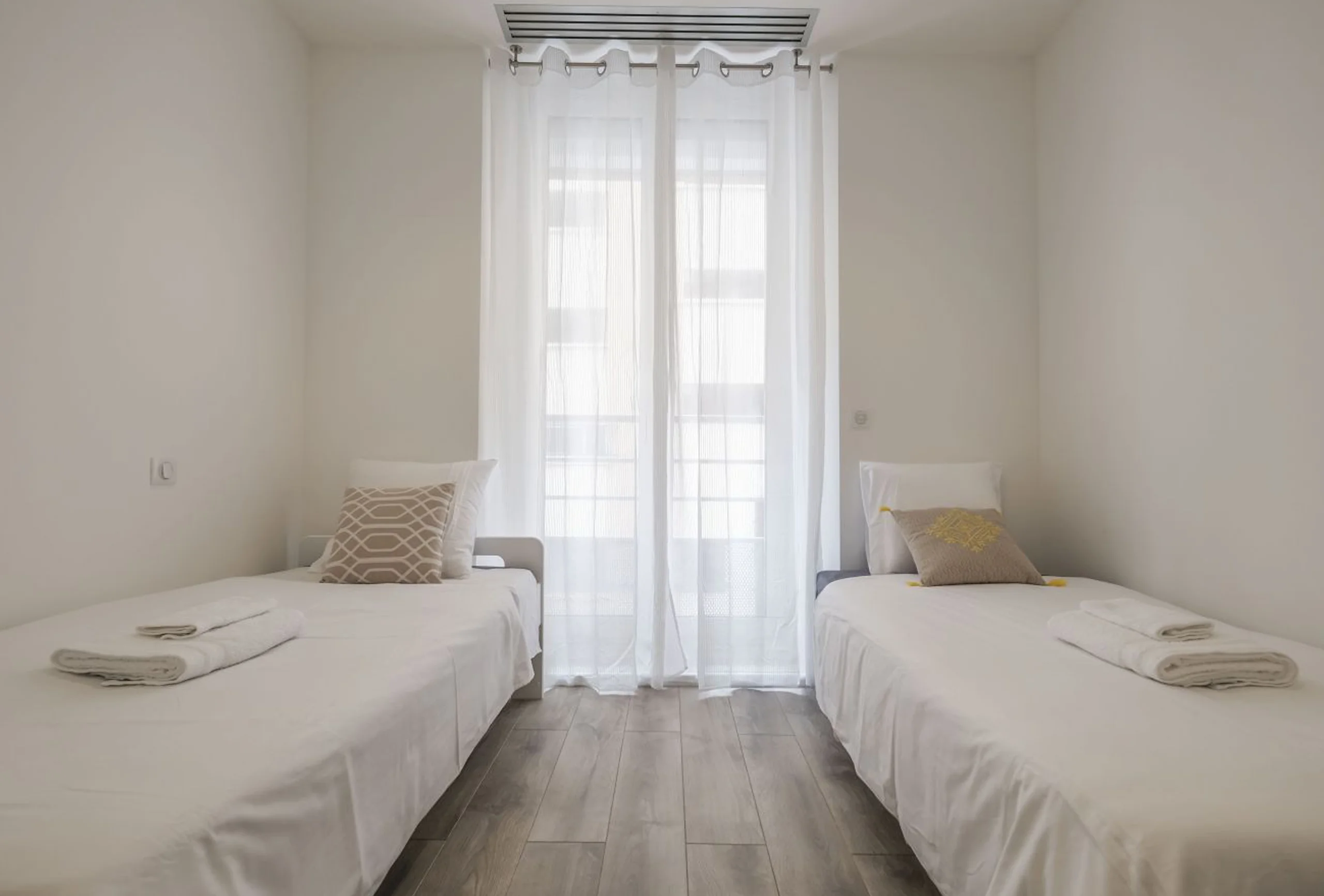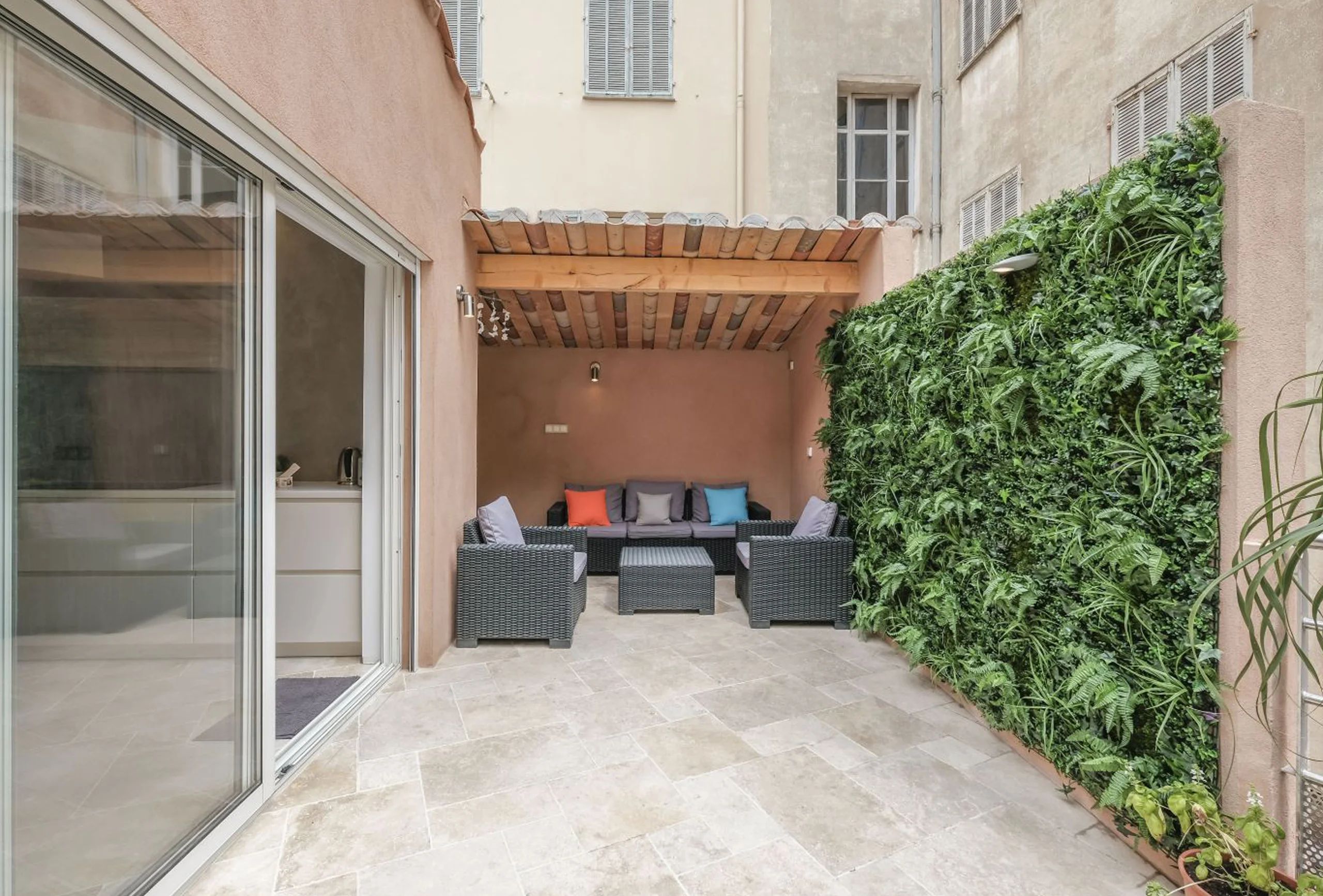 Pleasant town house completely renovated and decorated with care, ideally located in the center of Cannes. This property is distributed over two floors. On the first floor you will find three bedrooms, including a double bedroom with shower room and two other bedrooms with two single beds each. Another shower room makes up the first floor. On the second floor you will find the living space composed of a fully equipped American kitchen, a lounge area and a dining area all opening onto a terrace equipped with a lounge area. Ideally located in a quiet street and close to the Palais des Festivals and all amenities.