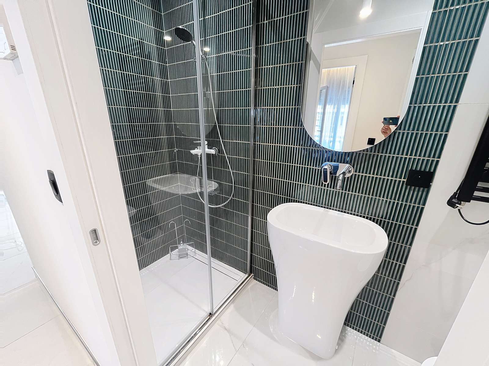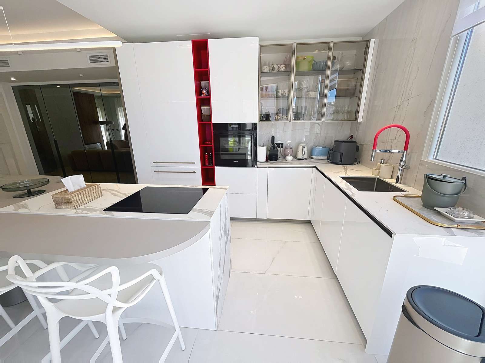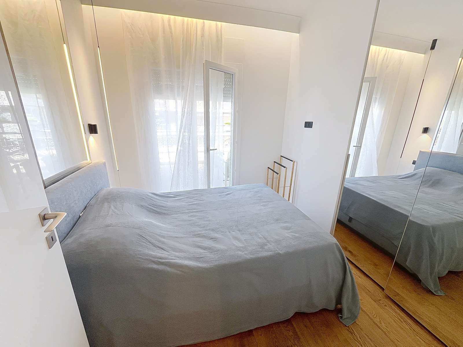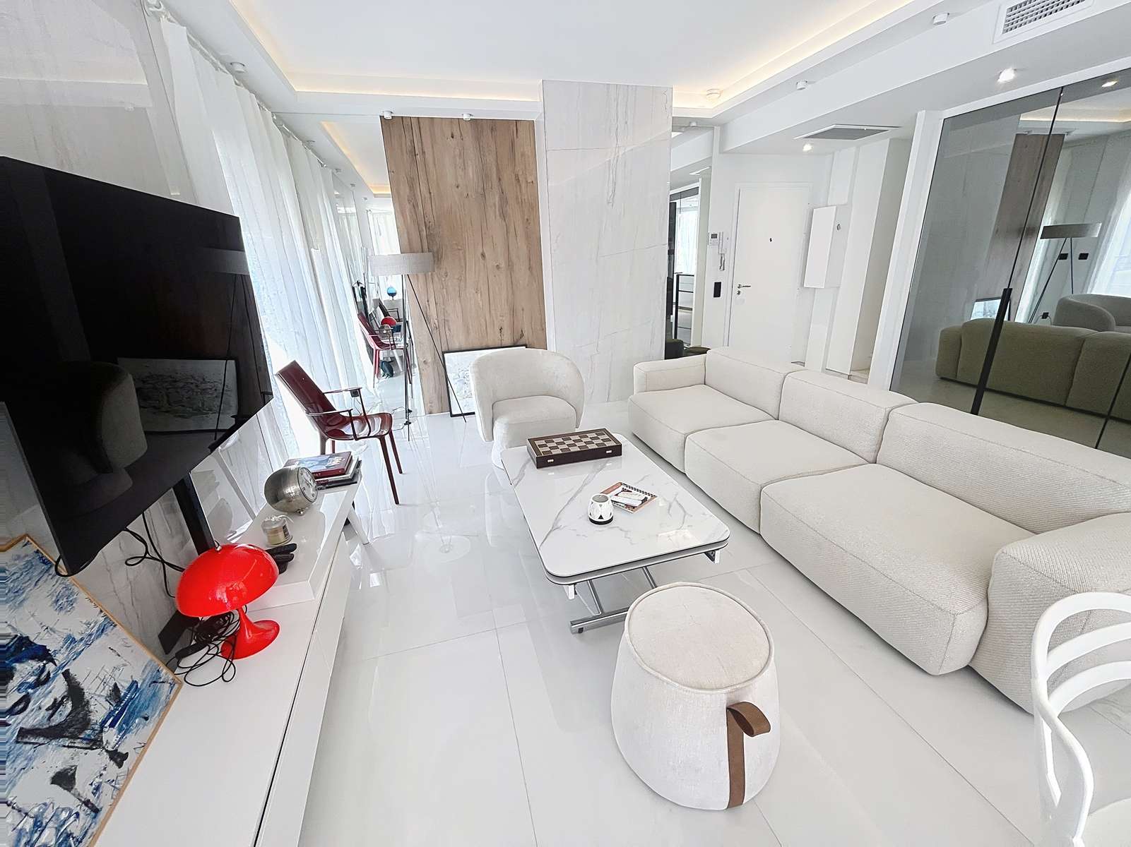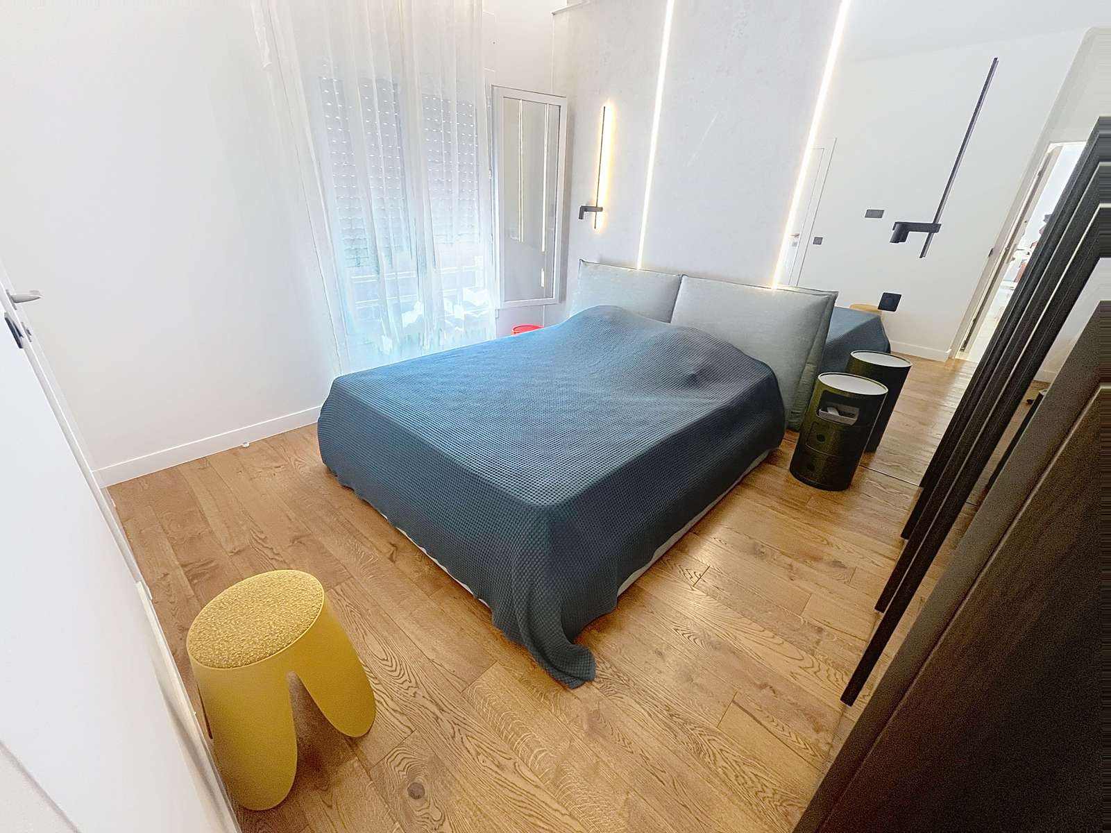 Recently refurbished with modern décor and high-quality finishes, the spacious living room opens to a balcony and includes an open-plan kitchen fully equipped with premium appliances. Every room has direct access to the balcony, enhancing the sense of light and space.