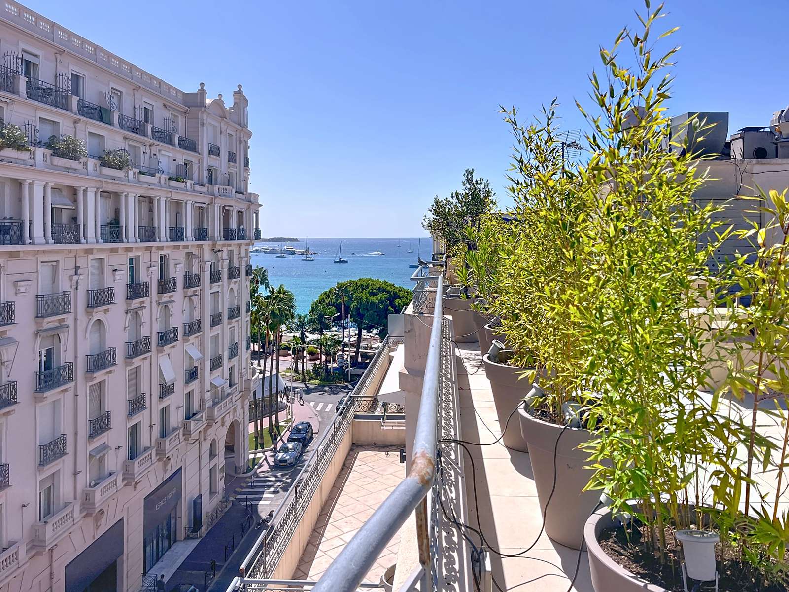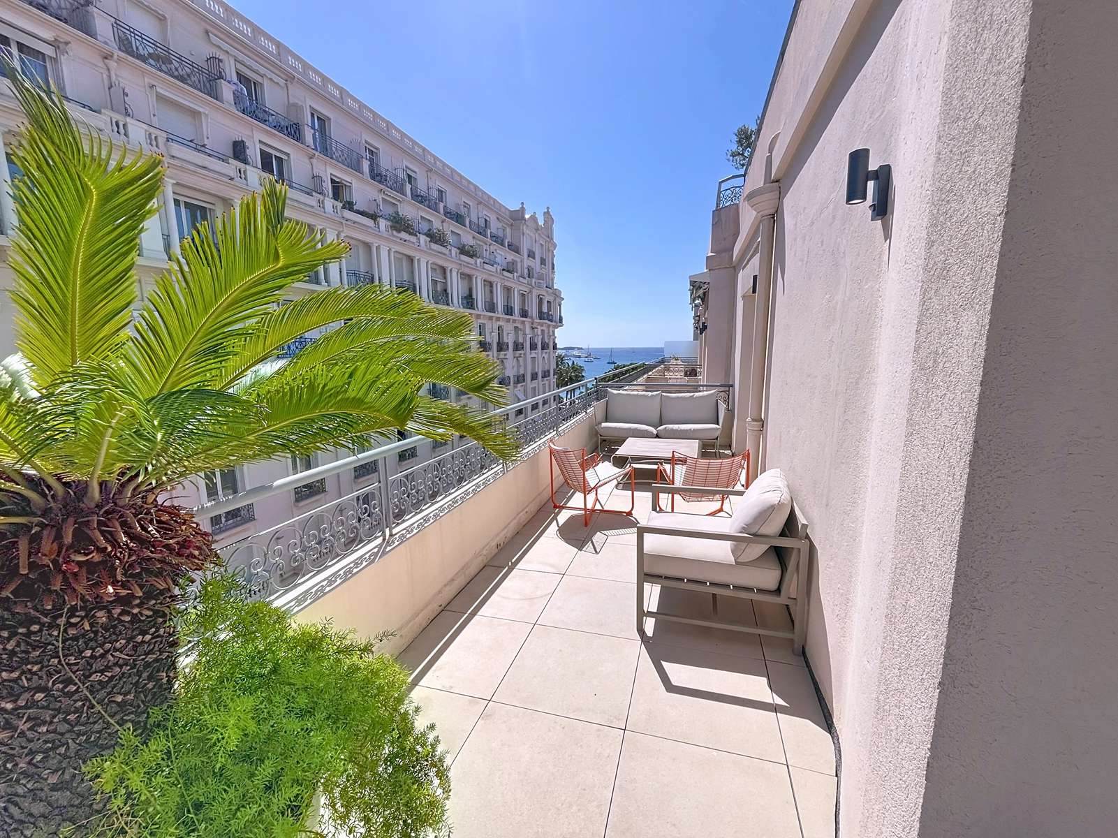Experience upscale living in this stunning 3-bedroom penthouse, ideally located just 50 meters from La Croisette, directly opposite the Miramar building. Situated on the 5th floor with lift access, this exceptional residence features a magnificent 100 m² rooftop terrace—perfect for soaking up the Cannes sunshine and enjoying outdoor dining or relaxation.