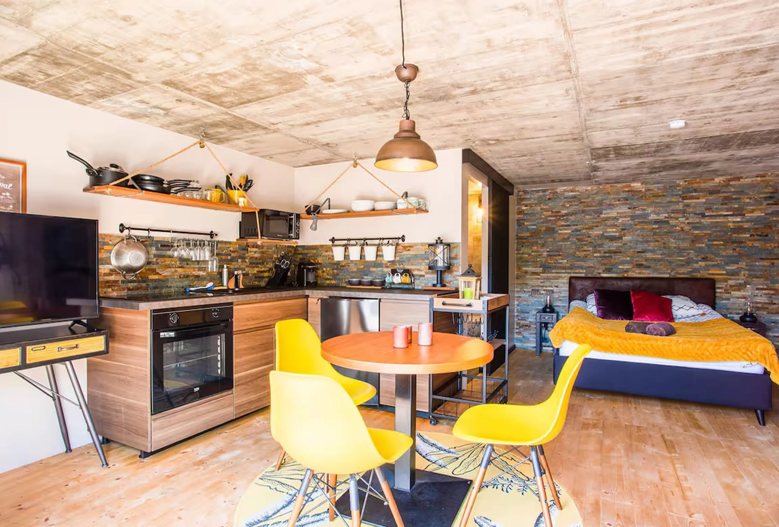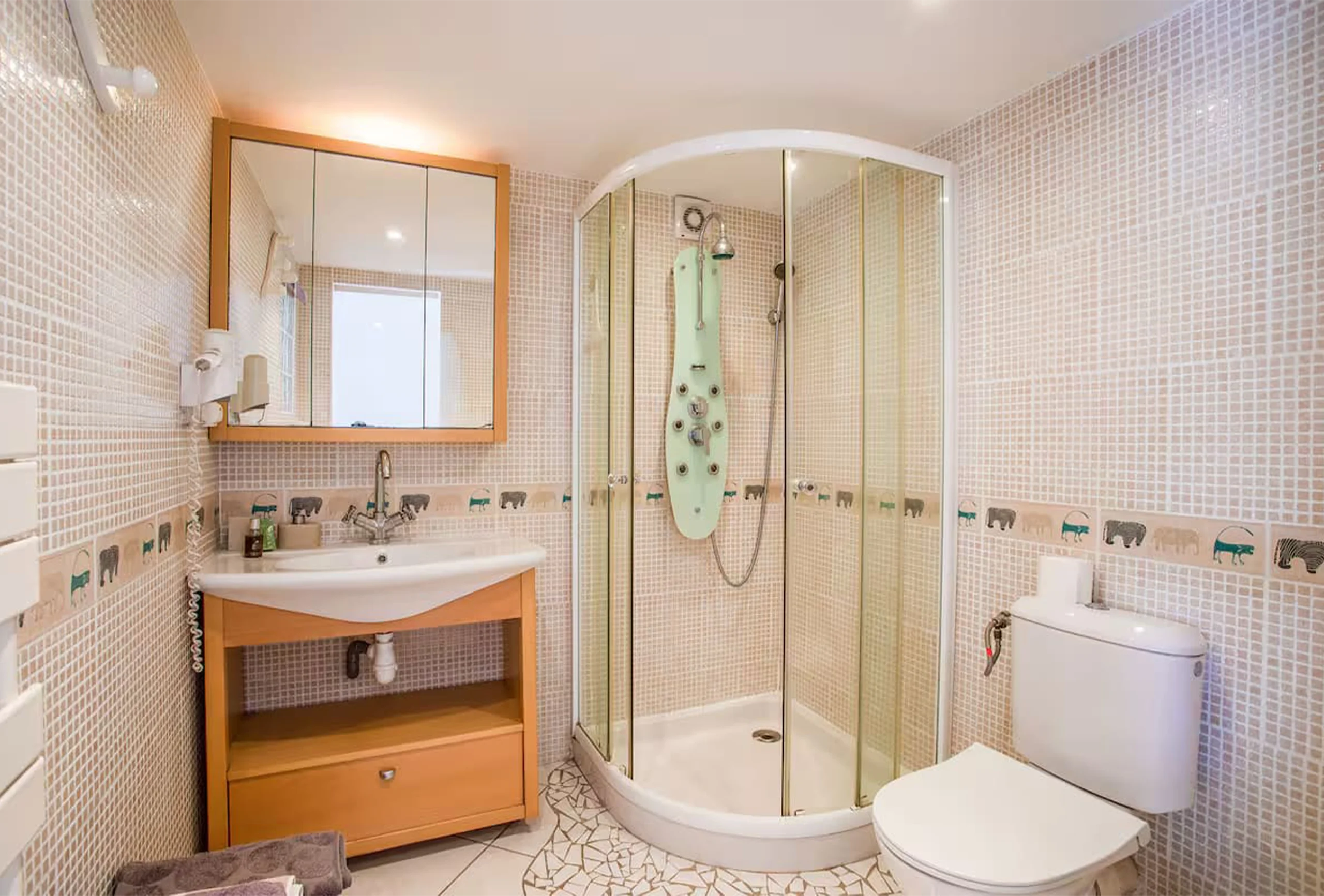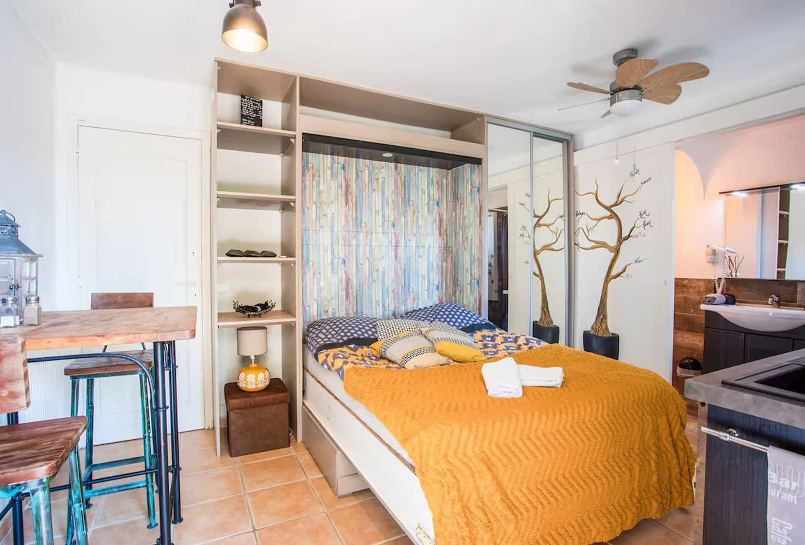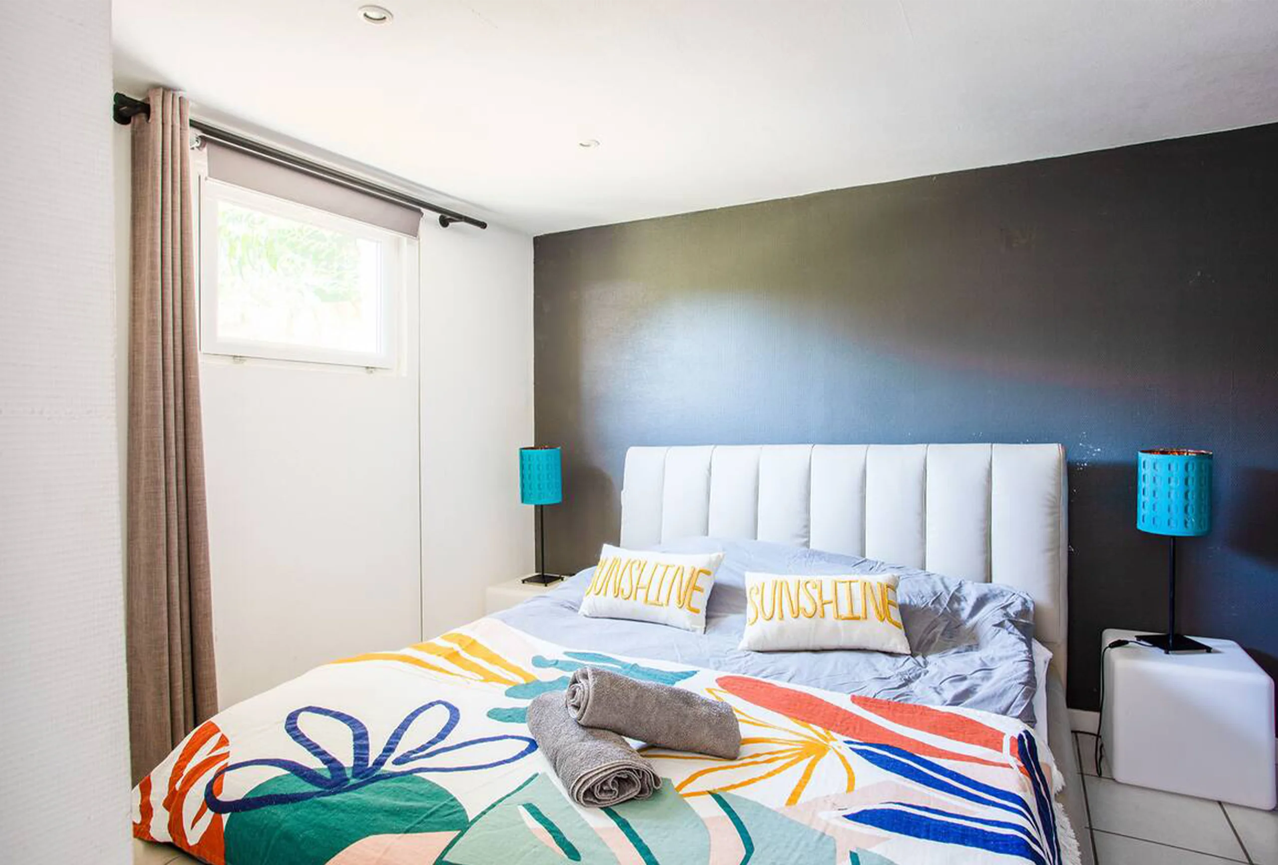 – On the garden level, 5 apartments equipped either in studio or in 2 rooms each sleeping 2 people and a bathroom with wc in each, a large terrace along the property. A beautiful swimming pool, a landscaped garden with barbecue area, sun loungers and patio furniture in front of each apartment.